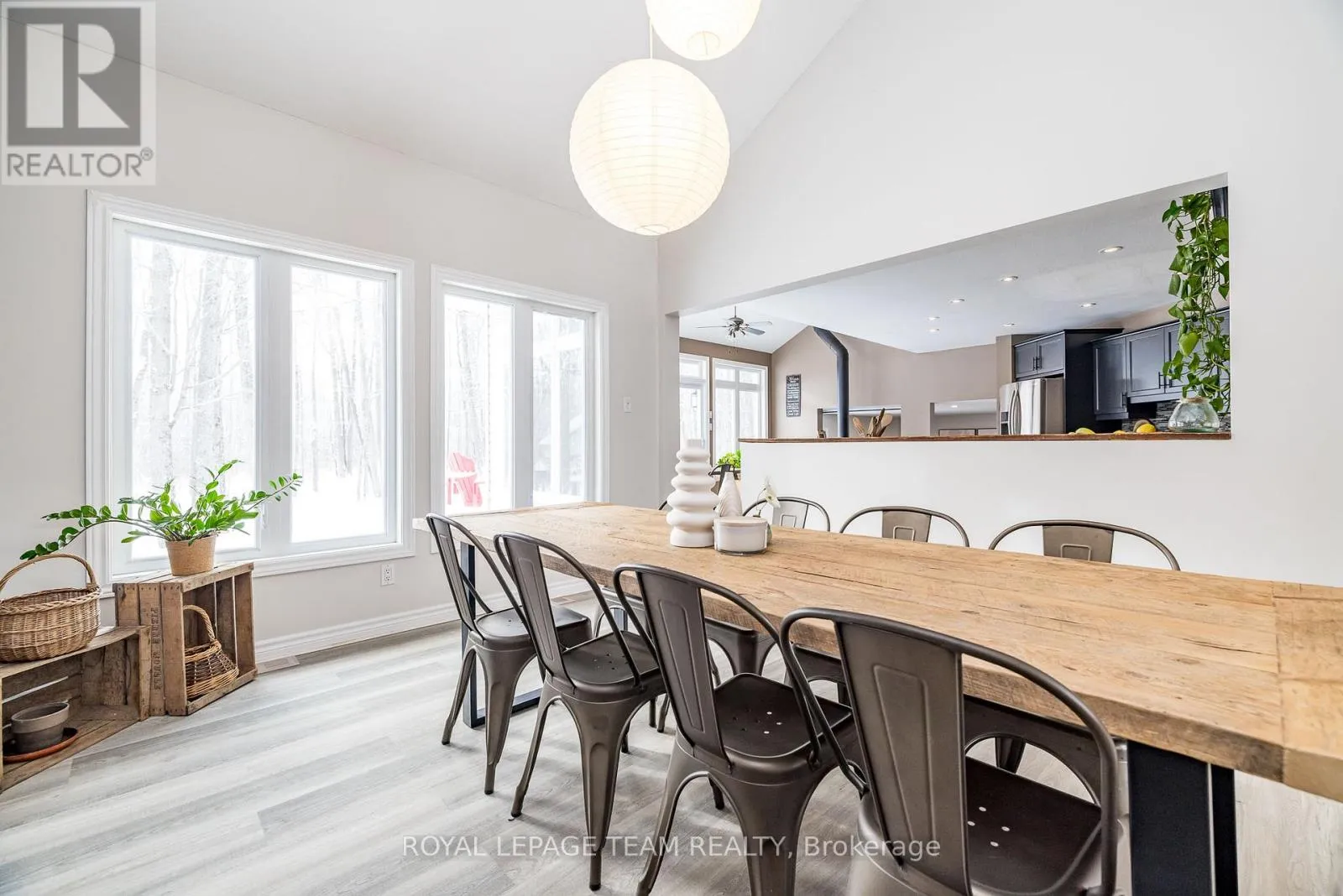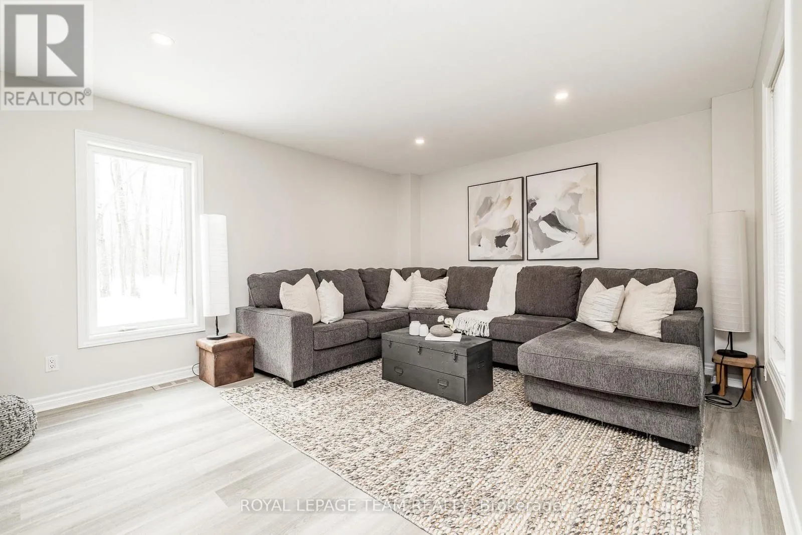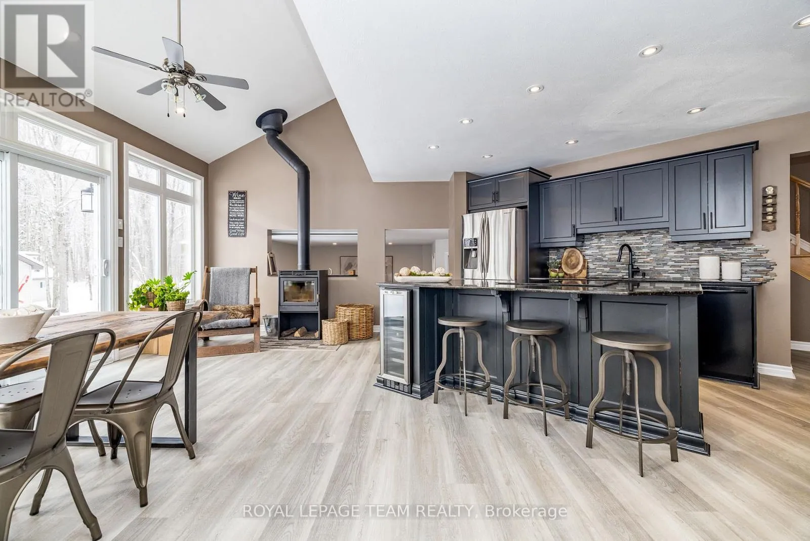 Cross Streets: Wood Duck Drive and Doyle Road. ** Directions: 416 to Rogers Stevens Drive to Snake Island Road, Left onto River Rd, Right onto Doyle Road, Left onto Wood Duck Dr. Nestled on nearly 2 acres of a private, beautifully treed lot, this custom-built 4+1 bedroom home offers the perfect balance of space, serenity, and everyday convenience. The open-concept kitchen is the heart of the home, featuring rich cabinetry, stainless steel appliances, and a granite island ideal for gathering. Expansive windows fill the space with natural light and frame peaceful wooded views, while the cozy wood stove adds country charm. The dining area, highlighted by a wood feature wall and vaulted ceiling, flows effortlessly into the living room, creating a bright, airy atmosphere for easy entertaining. The stone-faced fireplace serves as a focal point, while the sunken family area off the kitchen provides a cozy yet open space to relax and connect. Thoughtfully designed, the main floor includes a versatile bedroom or den and a full bath-perfect for guests or multi-generational living-along with a convenient mudroom and laundry with direct garage access. Multiple walkouts lead to an expansive deck and screened-in pergola, an idyllic setting for summer gatherings or quiet mornings immersed in nature. Upstairs, the inviting primary suite offers a spa-inspired 5-piece ensuite, complemented by two additional bedrooms and a full bath.The fully finished lower level adds exceptional flexibility, ideal for a recreation room, guest suite, home gym, or teen retreat, with generous storage to keep everything organized. The heated detached garage/workshop, complete with its own separate driveway, ensures you'll never run out of space and offers endless possibilities. Ideally located close to the Rideau River, local marinas, Manotick, and several golf courses, this home delivers the best of rural living with convenient access to amenities and charming village life. If you've been searching for a private country retreat with room to grow-without sacrificing proximity to the city-this property offers the best of both worlds. (id:27476)
