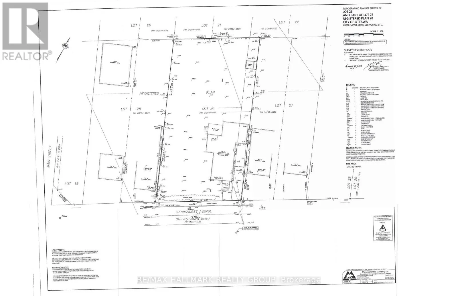 Cross Streets: Springhurst and Rosemere. ** Directions: Main Street to Springhurst (one way going East). Exceptional Development Site in Prime Ottawa East Location - Builder Alert Unparalleled development opportunity on an oversized 14,124+ sq. ft. parcel with 85' frontage x 165' depth, positioned steps from the Rideau River, Rideau Canal and the highly anticipated Main Street Promenade. This strategically located property is surrounded by a vibrant mix of retail, dining, schools, parks and multi-use pathways - an ideal urban growth centre for in-fill development. The site's current zoning supports a wide spectrum of residential product types including: Single-family bungalows Townhomes and stacked front-to-back townhomes Duplexes and triplexes Semi-detached dwellings Flexible multi-family configurations responsive to market demand Subject to a minor variance, the parcel has strong potential for higher-density development including condominium-style apartments, subject to municipal approvals. All services (natural gas, hydro, water and sewer) are available at the street. The property fronts onto a paved one-way street, providing excellent site access and efficient logistics for construction staging. The existing two-storey brick residence has been disconnected from municipal services and can be removed to facilitate redevelopment. Seller is open to partnering on financing and development applications with acceptable offers supported by a robust development concept and comprehensive credit documentation. Proof of financial capability required with offer. Includes conceptual design ideas and aerial drone views. Approved severance available - see complementary listings for severed lot opportunities. A rare offering for builders, developers, and visionary investors seeking a premier Ottawa East . development site. PROPERTY AVAILABLE AS A WHOLE OR 50' FRONTAGE (MLS#: X12752860) 35' FRONTAGE (MLS#: X12716626) (id:27476)