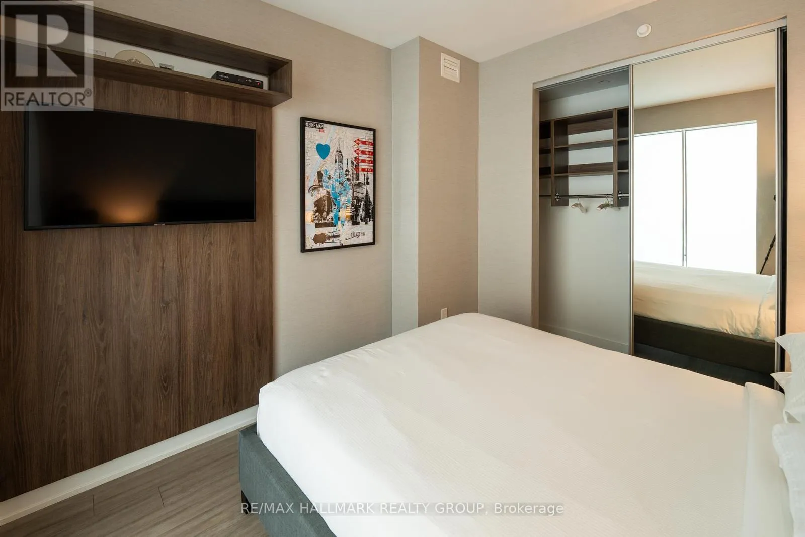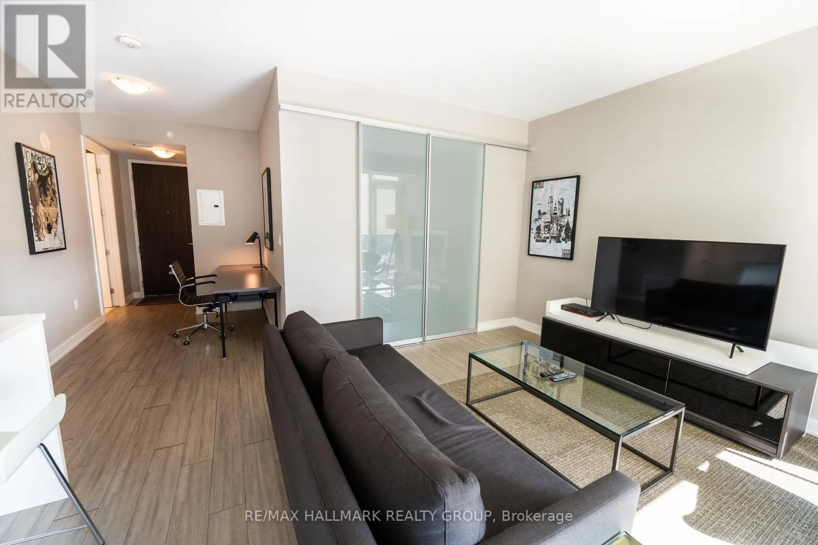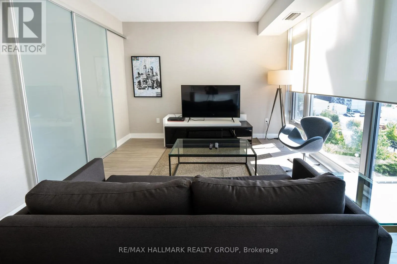 Cross Streets: Carling Ave and Champagne Ave. ** Directions: Carling Ave to Champagne Ave. NEW YEAR'S PROMOTION - GET 2 YEARS OF CONDO FEES PAID FOR YOU AND FURNITURE INCLUDED* Welcome to unit 611 in SoHo Champagne. This 1 bed/1 bath plus den unit has floor to ceiling windows with a stunning view of Dow's Lake, laminate floors throughout, and a gorgeous modern design. The open concept living area makes entertaining a breeze, with plenty of counter space and storage in the kitchen and accompanying island. The bedroom is connected by a sliding privacy door, allowing a fully open-concept living space or a private escape in the evenings. The spa-inspired bathroom features a rainfall shower with glass doors. The SoHo Champagne has amazing amenities like a terrace and patio with a hot tub and barbecue, outdoor pool, a movie theatre, party room with full kitchen and lounge area, meeting room, 3 elevators, underground parking, and a gym. This condominium is located in Little Italy (150m from Dows Lake LRT station), where residents can enjoy dining and fun on the busy streets, or escape to Dow's Lake for time on the water or walks in the gorgeous surrounding parks. (id:27476)