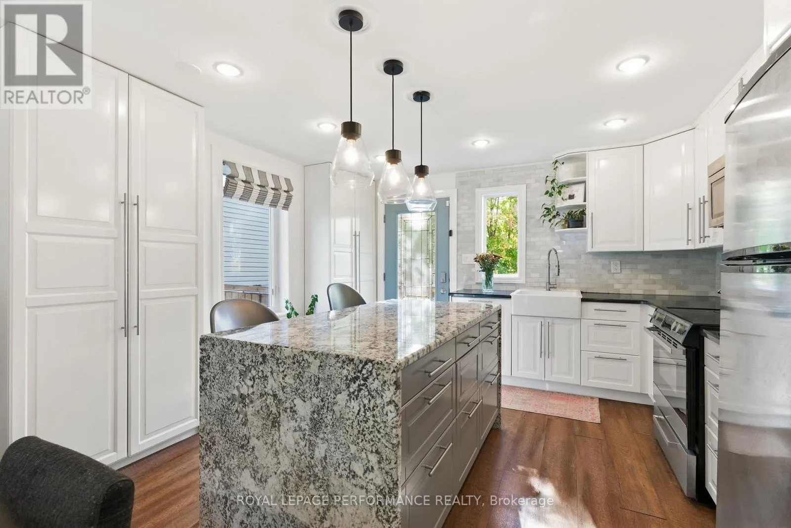 Cross Streets: Montfort Street & Bradley Avenue. ** Directions: From Montreal Road take Park Street North. Turn East on Montfort Street. South on Bradley Avenue. The vibe awaits you in this detached 3-bed, 2-bath home in a great pocket of Vanier, which has undergone upgrades galore and is completely move-in ready. Nestled on a quiet, no-through-traffic street with wonderful neighbours, this is a great house with good energy. Originally a duplex, it has been flawlessly converted into a spacious, light-filled single-family home boasting lovely finishes that demonstrate meticulous care. The beautiful kitchen/dining room offers easy access to the backyard, making outdoor entertaining effortless, while the other two rooms on the main floor offer a flex space to curl up and read a book, watch a movie with the family, or have an office set up. The upstairs has been transformed from 2 bedrooms to 3, so that everyone can have their space while still being close to each other. A short walk to all Vanier has to offer: grocery stores, restaurants, libraries, community centres, live music, farmers' markets, and great schools. This is more than just a home-it's a launchpad for community life! We kindly ask for 24 hours irrevocable on all offers. (id:27476)