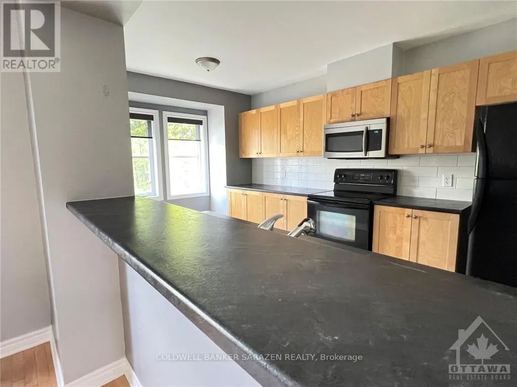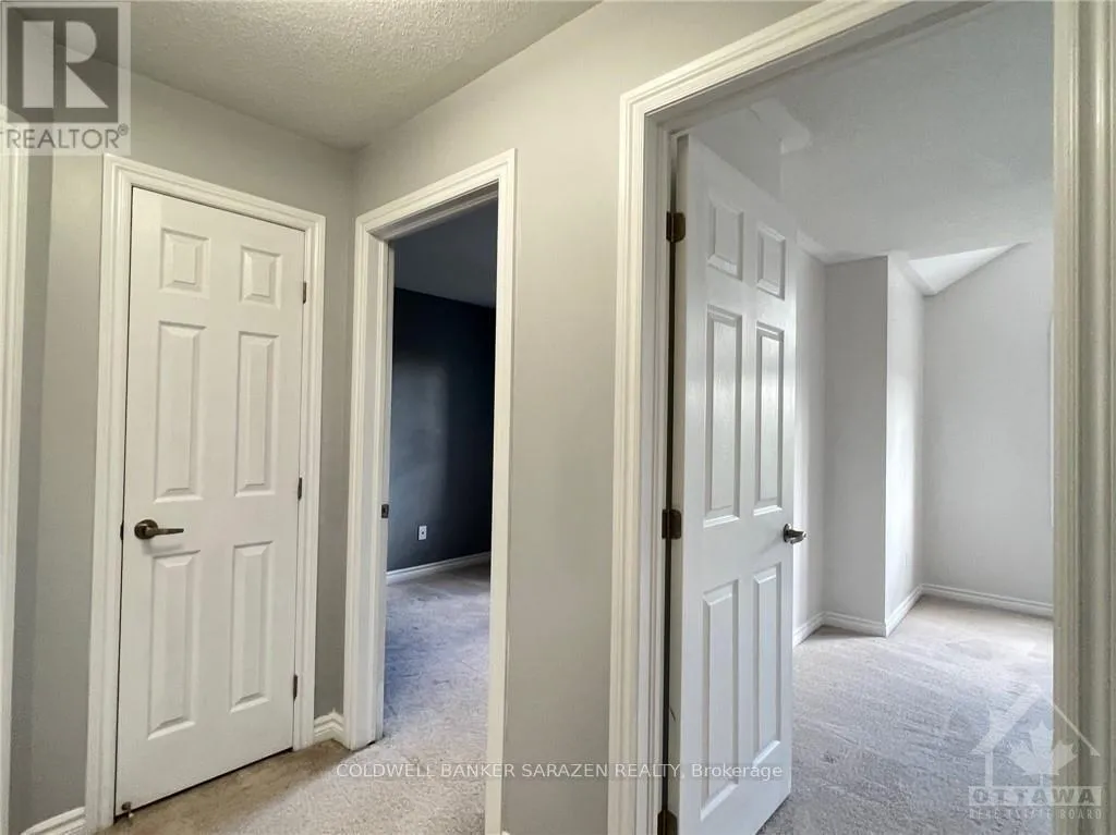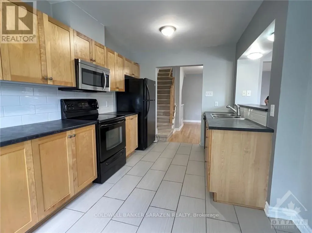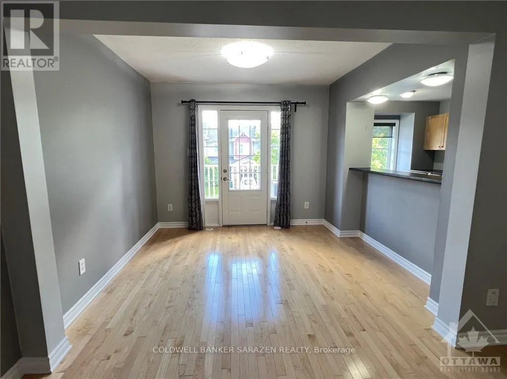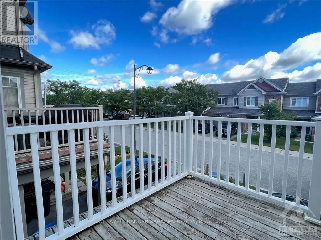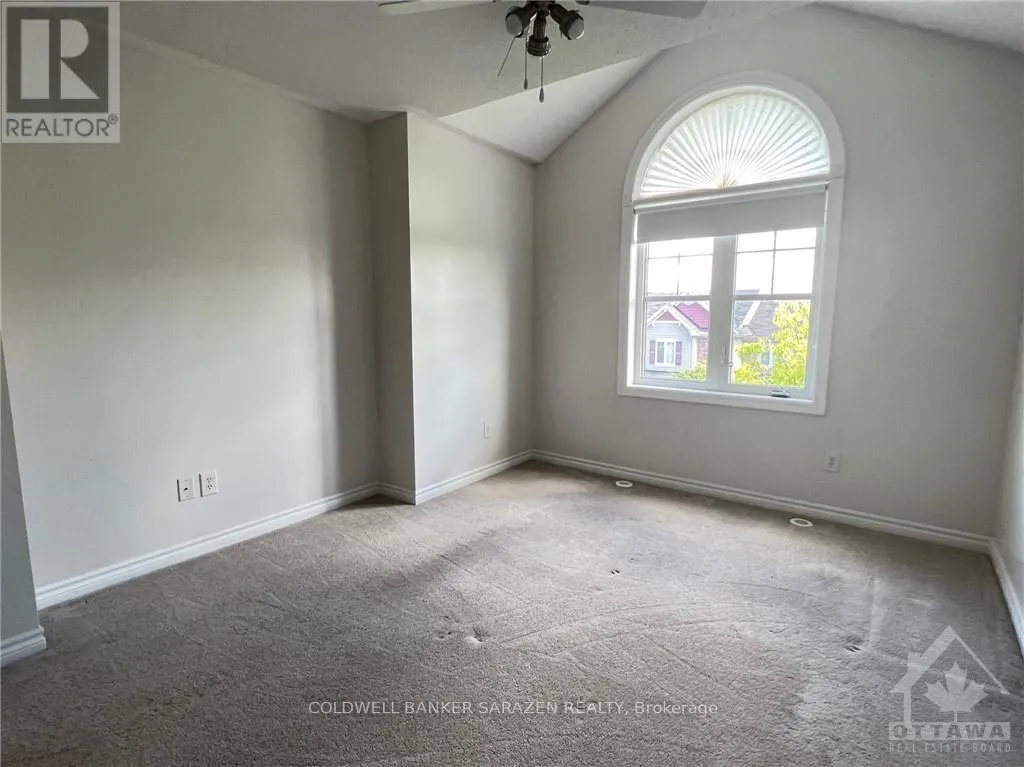 Cross Streets: Strandhrd Dr and Andora Ave. ** Directions: From Strandhrd Dr turn south onto Andora Ave, then east onto Madrid Ave then onto Haydon Cir. Exceptionally well-kept 3 bedroom end unit situated in Barrhaven Mews, just moments away from all essential amenities. This exquisite 3-storey Mattamy Honeygate model has been meticulously renovated. Upon entry, you are greeted by a spacious front foyer adorned with contemporary tiled flooring, leading to a powder room, laundry room, and garage access. The second level boasts an open concept layout highlighted by airy hardwood floors. The expansive kitchen features abundant cupboard and countertop space, along with a breakfast bar and dining area. Flooded with natural light, the living room and dining room open up to a remarkable second-level balcony, perfect for summer barbecues. On the third level, you'll find three generously sized bedrooms, including a master suite with vaulted ceilings. A beautifully updated main bath completes this level. Private driveway accommodates two cars, do not share with neighbors. (id:27476)