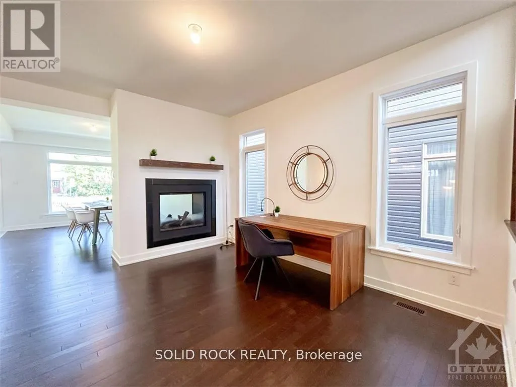 Heading South on Bank St., turn left onto Findlay Creek Dr., left onto Kugagami Road, left onto Ibanez Walk, left onto Odyssey Way then Ovation Grove. This well-maintained Claridge Homes Cumberland detached residence offers 2,590 sq. ft. above grade, plus a builder-finished basement, and is ideal for practical family living. Built in 2022, the home shows clear pride of ownership throughout.The main level features hardwood flooring in the principal rooms and ceramic tile in the kitchen and powder room. The open-concept layout is enhanced by large windows that bring in plenty of natural light. The kitchen is equipped with granite countertops, island, pantry, generous cabinetry, and a bright eating area, flowing into the main living spaces.A double-sided gas fireplace is positioned between the family room and living/dining area, adding functionality to both spaces. The second level includes four spacious bedrooms, a loft area, a full main bathroom, and a primary bedroom with walk-in closet and 4-piece ensuite.The finished basement adds approximately 765 sq. ft. of additional living space and includes a large recreation room, oversized windows, bathroom rough-in, utility room, and extra storage.Additional features include a double-car garage with inside entry and automatic opener, and a convenient location close to schools, parks, and shopping. Built by Claridge Homes in the Findlay Creek community. (id:27476)