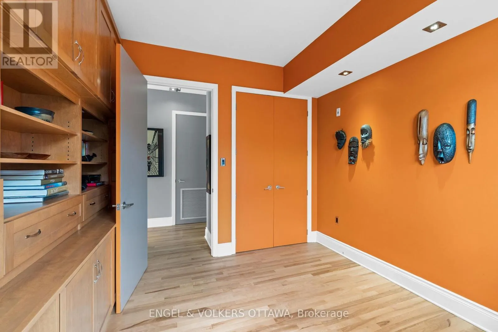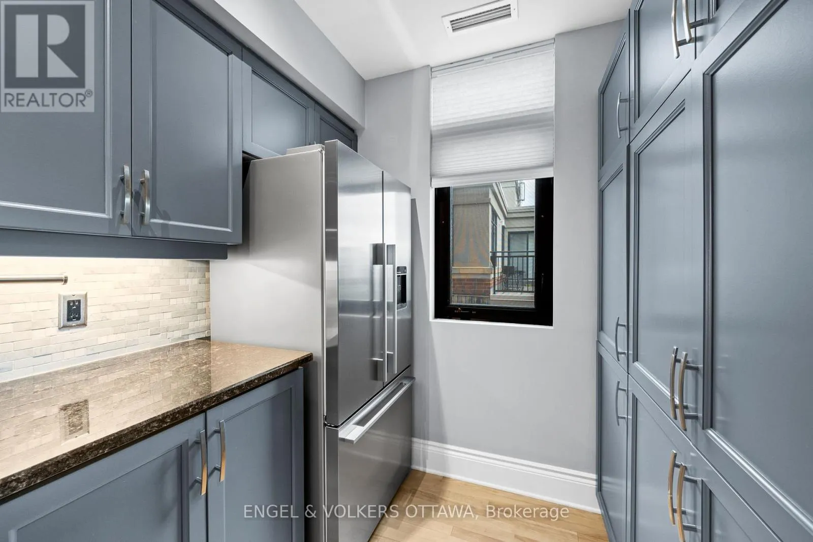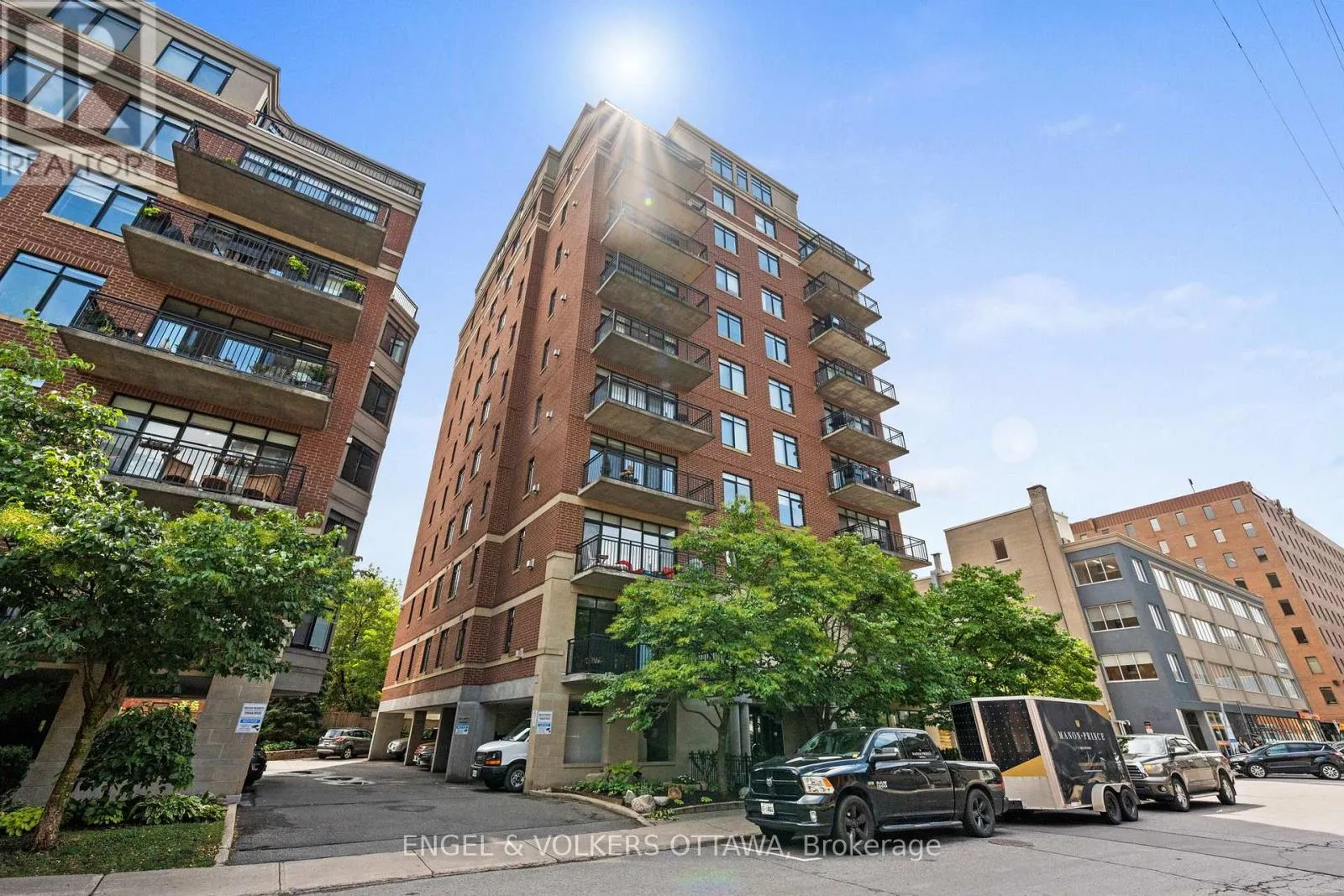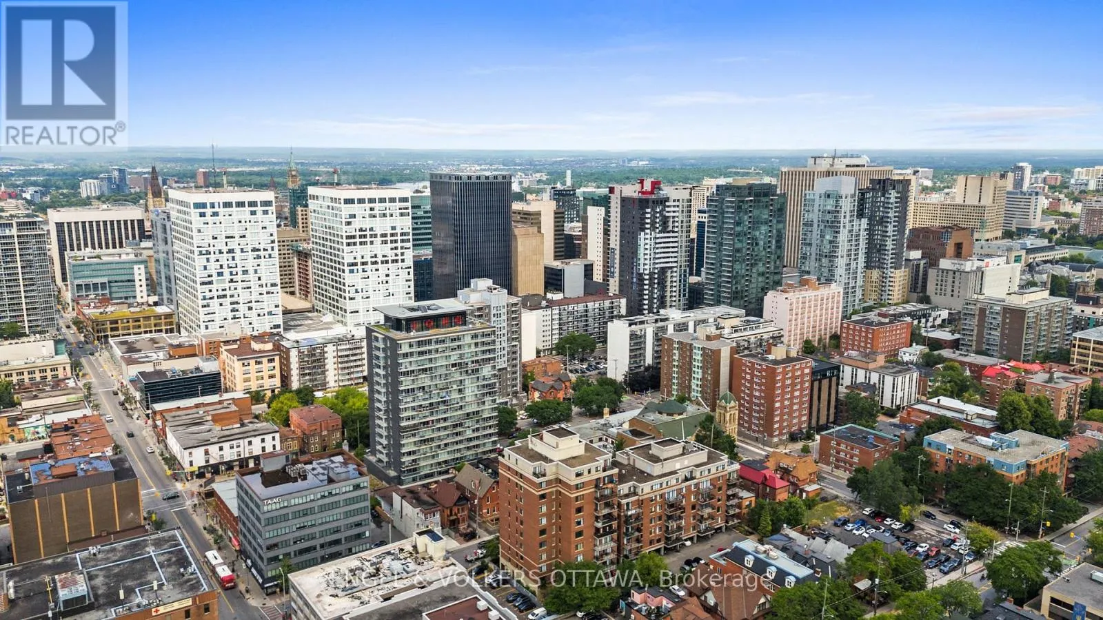 Cross Streets: Bank St and Cooper St. ** Directions: Bank Street, East on Cooper. Welcome to 1,492 sq. ft. of open-concept luxury living in the heart of Ottawa. Built by the award-winning Domicile Developments, this spacious 2-bed, 2-bath condo combines modern upgrades, premium finishes, and unbeatable convenience just steps to shopping, dining, transit, parks, and entertainment. Enjoy light hardwood floors throughout and floor-to-ceiling south-facing windows that fill the home with natural sunlight. The expansive living room features a striking 2-sided natural gas fireplace, flowing into a versatile den with custom Hunter Douglas blinds. The dining space offers flexible configurations, while the chef-inspired kitchen includes ample counter space, a GE induction stove, Fisher & Paykel stainless steel fridge, and a whisper-quiet Bosch dishwasher. The large primary bedroom fits a king bed with ease and boasts custom blackout shades, decorative sliding doors, a walk-in closet with custom built-ins, and a renovated ensuite with a separate shower. The second bedroom currently an office features a beautiful custom wood wall unit. The main bath has been completely modernized with a sleek stand-up shower. Step out to your private balcony with southern views and a natural gas hookup for year-round BBQing. Included: premium parking (extra space beside), storage locker, and access to the Commons Patio. Well-managed building no special assessments, none planned. Flexible closing available. Perfect for professionals, down sizers, or anyone seeking upscale, maintenance-free living in Ottawas most connected location. (id:27476)