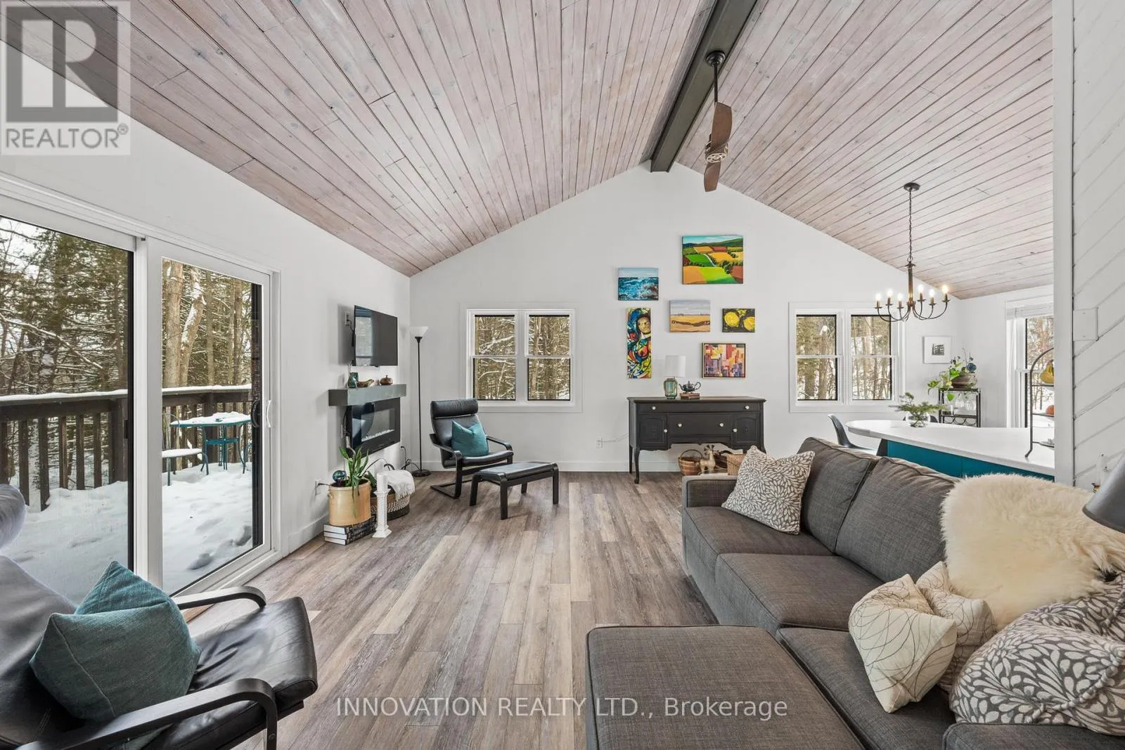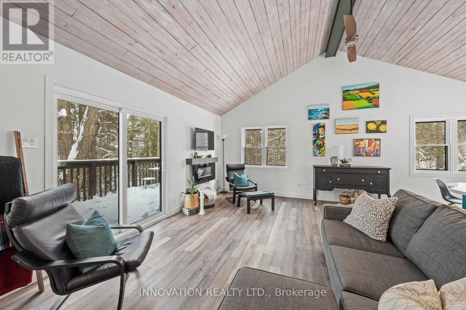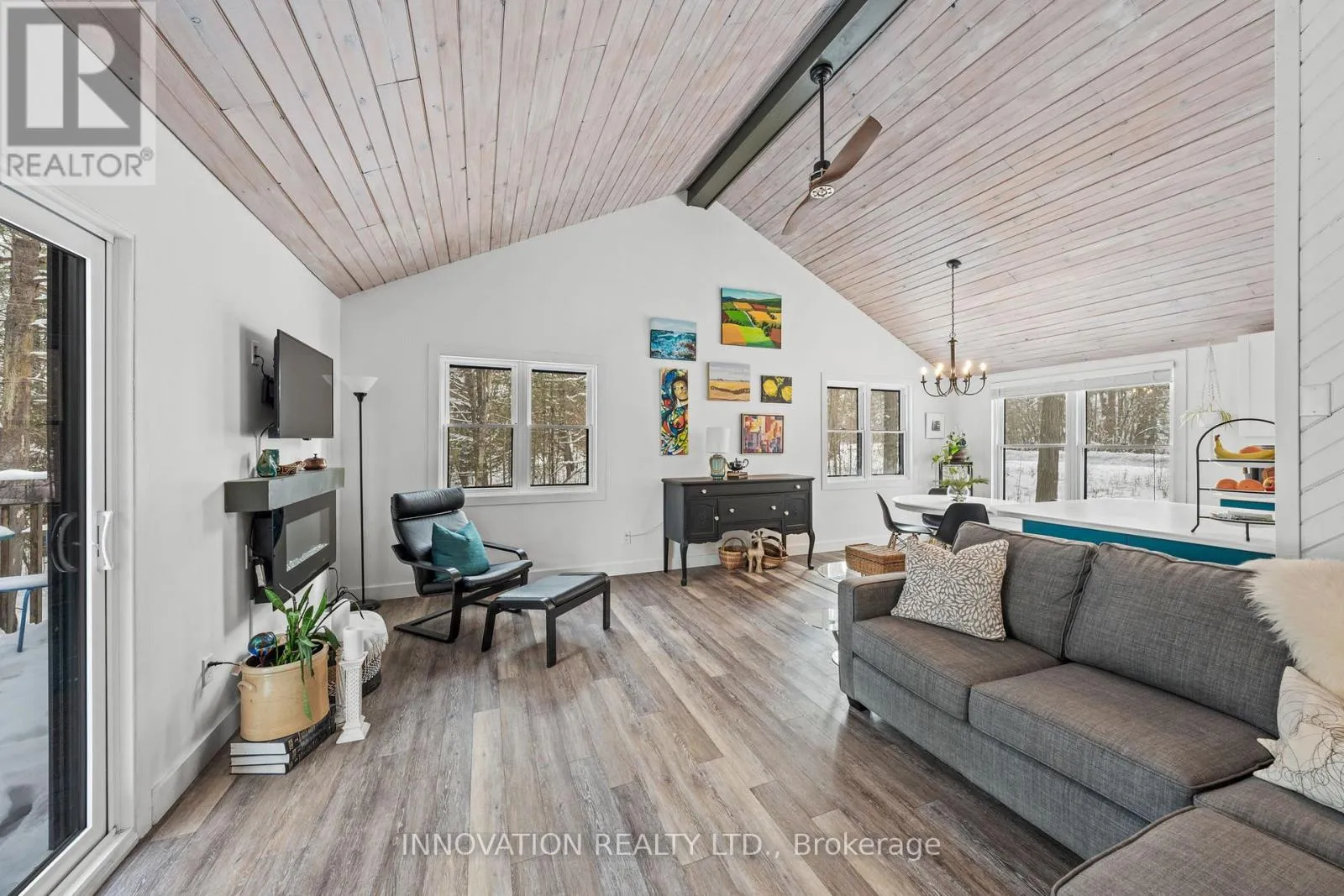 Cross Streets: Dunrobin Road/Fitzroy Street. ** Directions: Northwest on March Rd to Kanata North/Dunrobin., Head north on Dunrobin Road. Turn left onto Dunrobin Road, then right onto Canon Smith Drive #5708. Welcome home to this charming Viceroy style 3-bedroom, 2-bath property set on a beautifully treed 0.52-acre lot with a fenced yard, no rear neighbours offering privacy, warmth, and an inviting connection to nature. The open-concept living and dining area features striking wood cathedral ceilings, a cozy electric fireplace and a patio door leading to a spacious deck overlooking the peaceful backyard-an ideal place to relax and enjoy the outdoors. Numerous updates enhance comfort including a spacious front deck, new flooring throughout the main level, all windows and doors replaced, a fully renovated main floor bathroom, and updated Maibec siding and eavestroughs. The main level offers two comfortable sunlit bedrooms and a beautifully finished family bathroom, while the bright walk-out lower level adds excellent versatility with a third bedroom, a large family room room with a Pacific Energy wood stove with insulated chimney, a 3-piece bath, and a bonus mudroom. A large detached garage provides great storage or workshop potential, completing this well-maintained home. Beyond the property, Fitzroy Harbour delivers an exceptional lifestyle with access to the Ottawa River for boating, canoeing, paddleboarding, and fishing, along with nearby Fitzroy Provincial Park offering scenic trails and a sandy beach. Year-round recreation includes cross-country skiing, snowmobiling, golfing, baseball, soccer, and quick access to the Cavanagh Sensplex for hockey. With Arnprior just 15 minutes away and Kanata within 30 minutes, this location offers the perfect blend of tranquil living and convenient access to urban amenities, making it a rare opportunity in a welcoming and active community. (id:27476)
