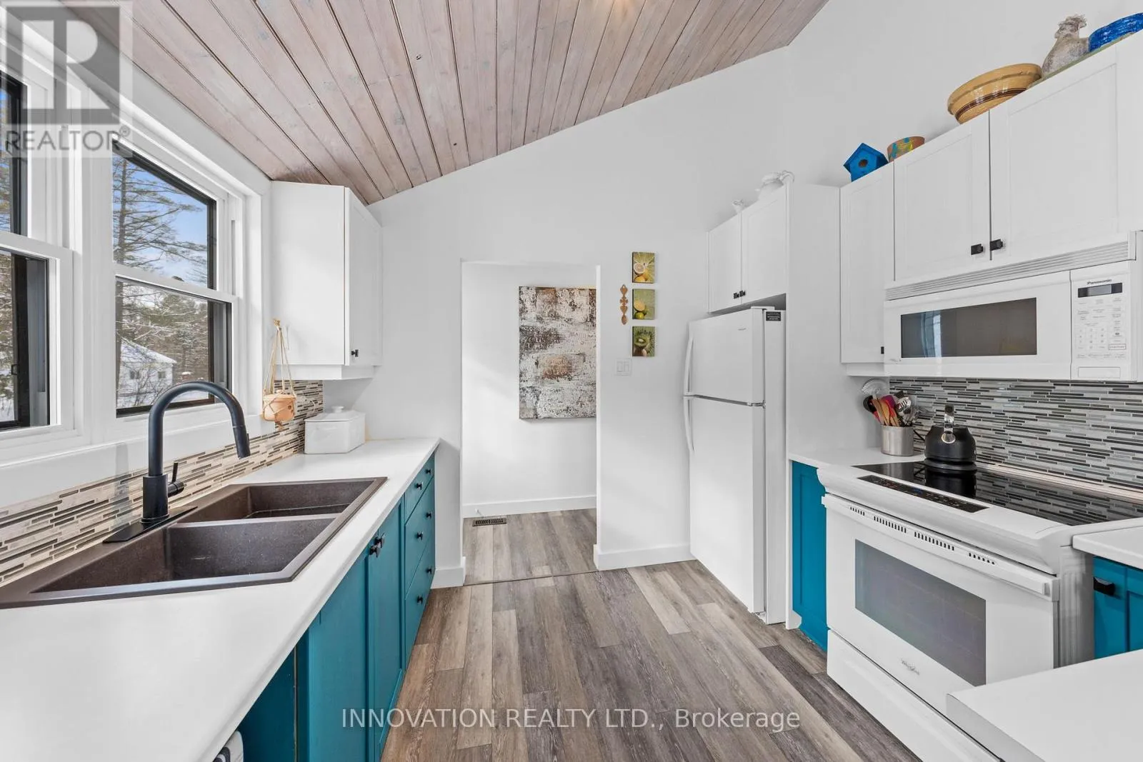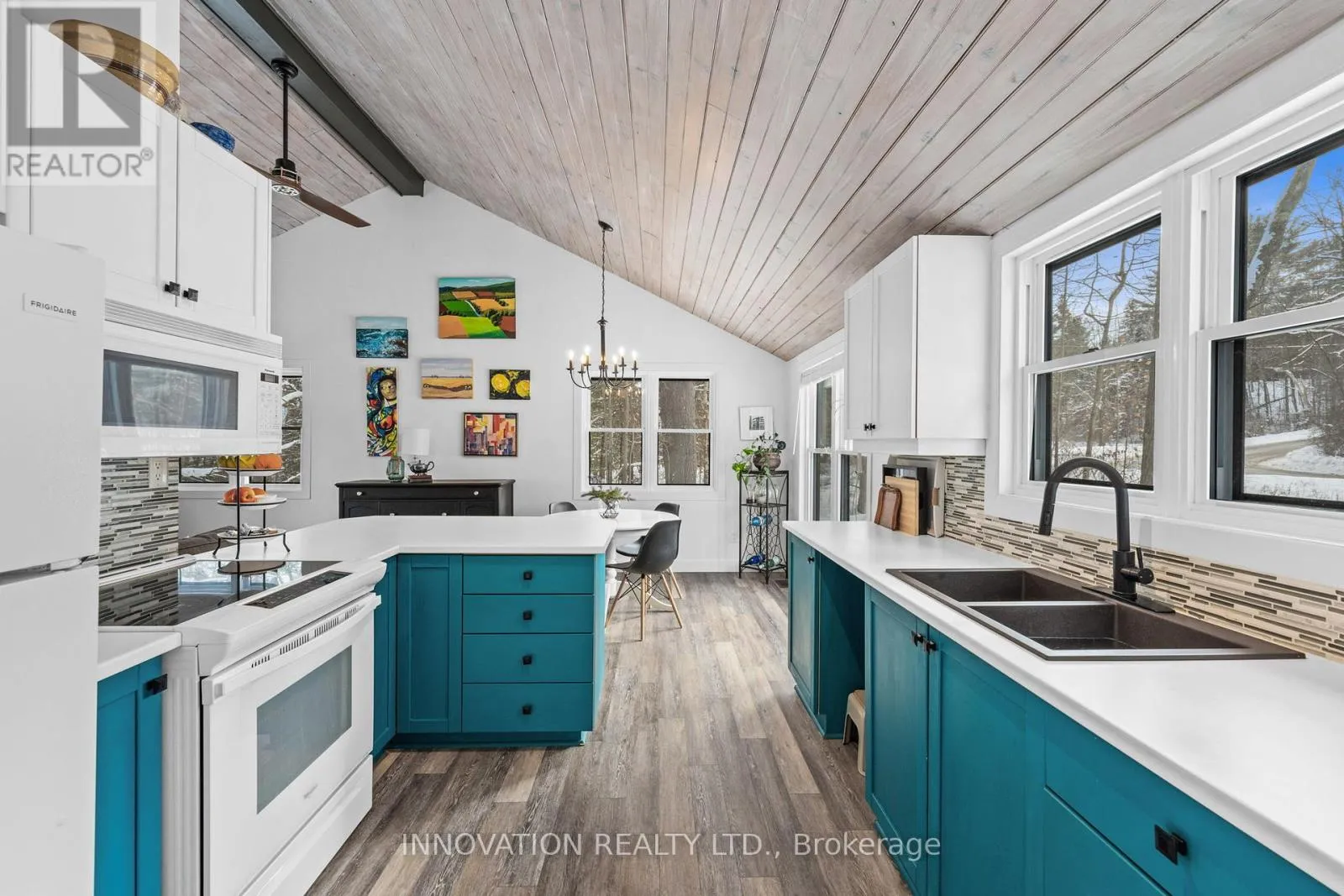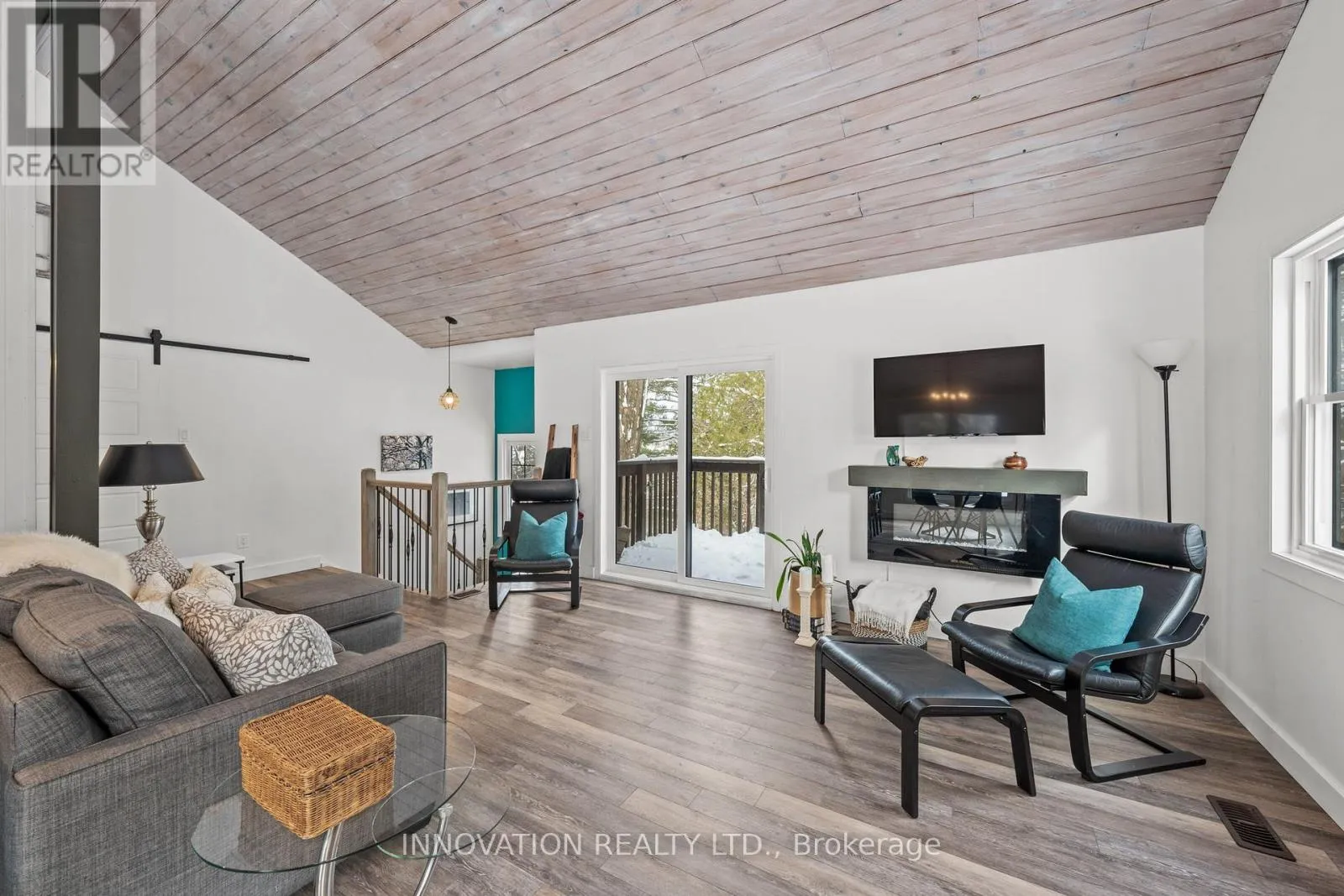 Cross Streets: Dunrobin Road/Fitzroy Street. ** Directions: Northwest on March Rd to Kanata North/Dunrobin., Head north on Dunrobin Road. Turn left onto Dunrobin Road, then right onto Canon Smith Drive #5708. Welcome home to this charming Viceroy style 3-bedroom, 2-bath property set on a beautifully treed 0.52-acre lot with a fenced yard, no rear neighbours offering privacy, warmth, and an inviting connection to nature. The open-concept living and dining area features striking wood cathedral ceilings, a cozy electric fireplace and a patio door leading to a spacious deck overlooking the peaceful backyard-an ideal place to relax and enjoy the outdoors. Numerous updates enhance comfort including a spacious front deck, new flooring throughout the main level, all windows and doors replaced, a fully renovated main floor bathroom, and updated Maibec siding and eavestroughs. The main level offers two comfortable sunlit bedrooms and a beautifully finished family bathroom, while the bright walk-out lower level adds excellent versatility with a third bedroom, a large family room room with a Pacific Energy wood stove with insulated chimney, a 3-piece bath, and a bonus mudroom. A large detached garage provides great storage or workshop potential, completing this well-maintained home. Beyond the property, Fitzroy Harbour delivers an exceptional lifestyle with access to the Ottawa River for boating, canoeing, paddleboarding, and fishing, along with nearby Fitzroy Provincial Park offering scenic trails and a sandy beach. Year-round recreation includes cross-country skiing, snowmobiling, golfing, baseball, soccer, and quick access to the Cavanagh Sensplex for hockey. With Arnprior just 15 minutes away and Kanata within 30 minutes, this location offers the perfect blend of tranquil living and convenient access to urban amenities, making it a rare opportunity in a welcoming and active community. (id:27476)