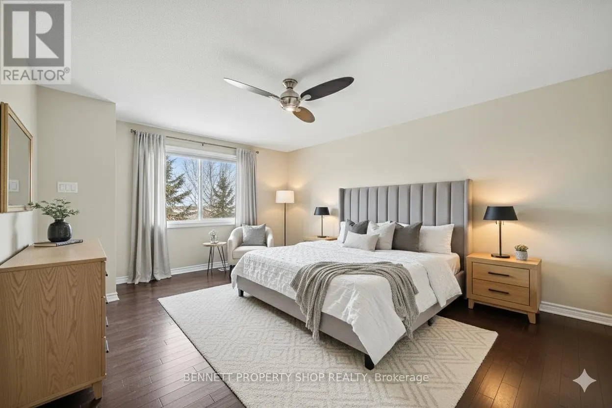 Cross Streets: Tacom Circle and Serena Way. ** Directions: Woodroffe, South of Strandherd, left on Serena, Left on Tacom Circle. Experience the ultimate in sophisticated living with this impeccable end-unit residence, perfectly positioned on a quiet circle in one of the most sought-after enclaves. This move-in-ready sanctuary has been thoughtfully transformed with quality upgrades, including hardwood floors, fresh painting, recessed pot lighting, furnace, humidifier, air cleaner, bathrooms, custom remote-controlled blinds plus so much more! The main floor features a bright, open-concept living and dining area, perfect for entertaining. The kitchen is a true showpiece, boasting a customized floor-to-ceiling pantry wall with quartz countertop and a dedicated coffee bar. The second floor offers a spacious primary suite complete with a walk-in closet and a beautifully updated full ensuite bath. Two additional well-appointed bedrooms and a second full bathroom provide ample space for family or guests. The living space extends into a professionally finished basement, featuring a recreation room with a cozy gas fireplace, full bathroom, and ample storage. For unparalleled convenience, the home uniquely offers laundry facilities on both the upper and lower levels. Outside, your private backyard oasis awaits-a rare retreat offering total peace and privacy with no rear neighbours, fully fenced and a beautiful deck and patio area. The property also features even more practical luxury upgrades with an extended driveway for side-by-side parking and a pristine garage outfitted with a durable Flake Flooring System and a versatile slatwall organization system. Located just a short stroll from top-rated schools, shopping, scenic wooded trails, and the OC Transpo Strandherd Connection, this home offers a perfect blend of tranquillity and urban accessibility. Truly a lifestyle upgrade for the discerning buyer! Some photos are digitally enhanced. 24 hours irrevocable on all offers. (id:27476)