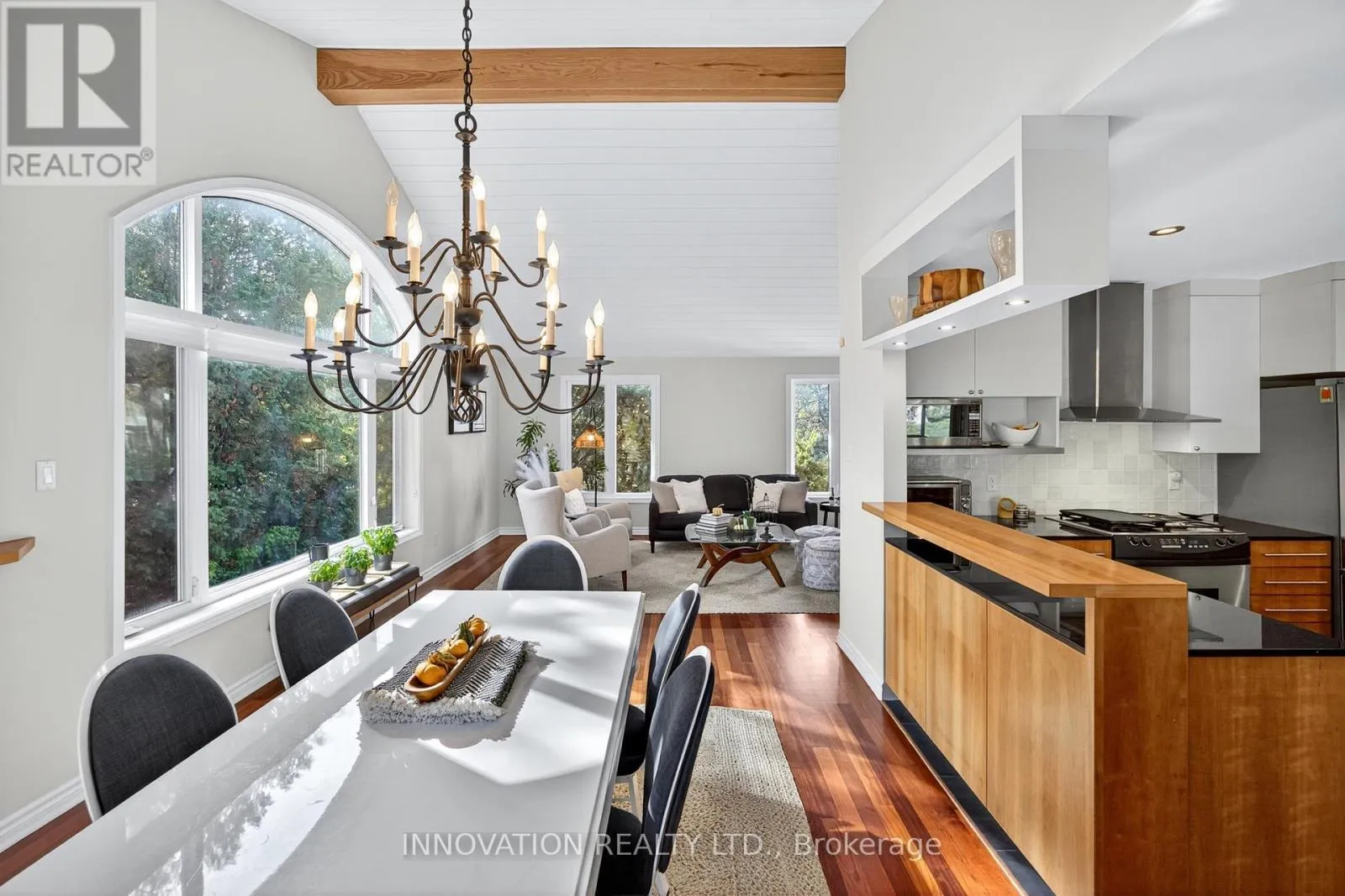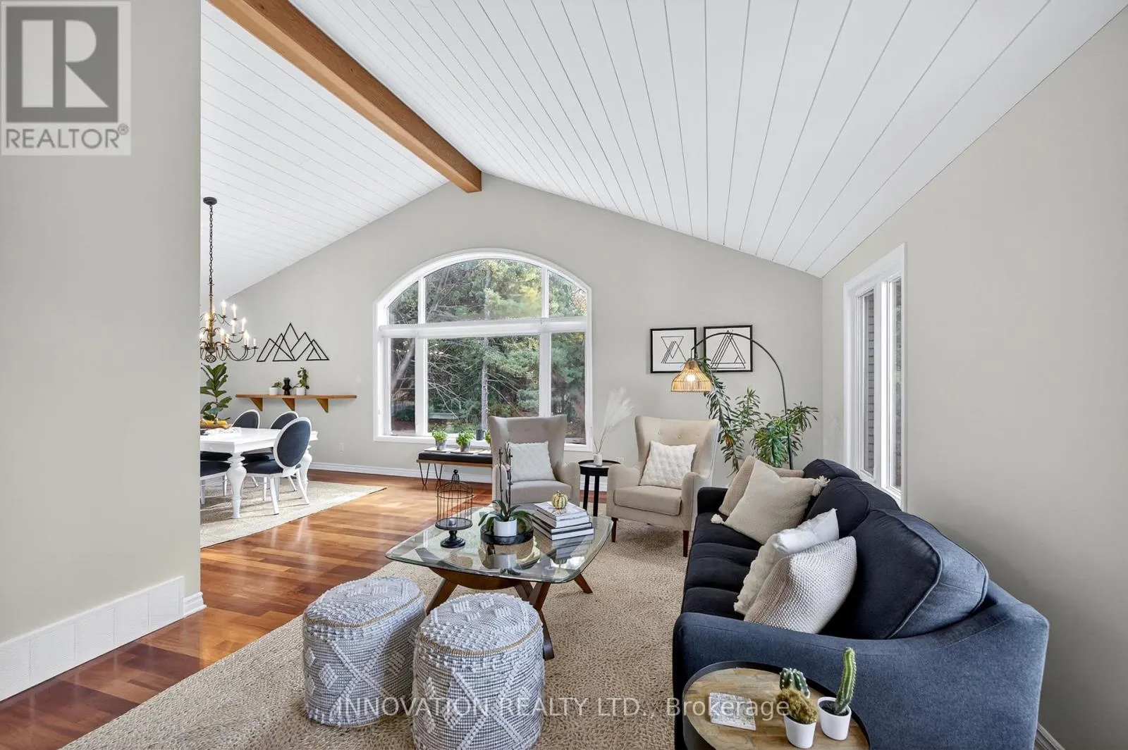 Cross Streets: South River and Van Vliet. ** Directions: Bridge Street south on Van Vliet, right (west) on South River Drive. Deceptively large and rich in character, this four-bedroom, three-bath split-level home offers over 2,500 square feet of thoughtfully designed living space above grade on a rare and exceptionally private 0.925-acre lot-one of the larger properties on the highly sought-after South Island. Tucked away yet just a short walk to Main Street shops, cafés, and restaurants, the home also enjoys tranquil views toward Mahogany Bay, blending village charm with everyday convenience.Inside, the layout unfolds with warmth and function. Hardwood and tile flooring flow throughout, creating a cohesive and timeless feel. The updated kitchen is both stylish and practical, seamlessly connecting to the main living, entertaining and dining areas-ideal for entertaining or relaxed family living. All bathrooms have been tastefully updated, offering modern finishes while maintaining a classic aesthetic. A standout feature is the inviting cedar screened-in porch, complete with vaulted ceilings-a perfect retreat for morning coffee, summer dinners, or quiet evenings surrounded by nature. The den is equally impressive, featuring built-in solid wood custom cabinetry that adds both elegance and utility, making it an ideal home office, library, or media space. The basement is partly finished and ideal for home gym or theatre. The outdoor setting is truly exceptional. The unique and expansive, tree-lined lot provides a level of privacy rarely found. An updated, heated in-ground saltwater pool anchors the backyard, creating a private oasis for summer enjoyment and entertaining. Additional highlights include a double garage with a separate staircase leading directly to the basement, offering excellent flexibility for storage, hobbies, or future development potential. A rare opportunity to own a generously sized home on an extraordinary lot in one of Manotick's most desirable locations-this property delivers space, privacy, and lifestyle in equal measure. (id:27476)