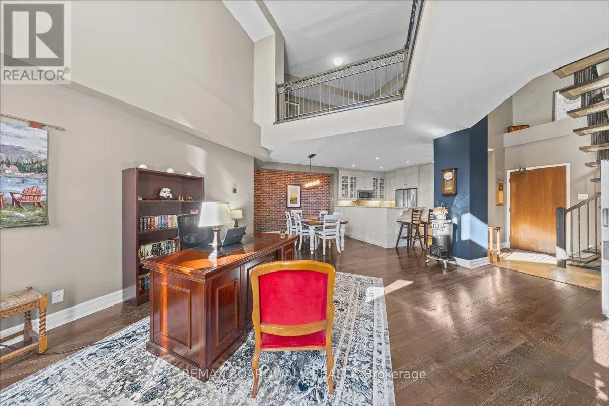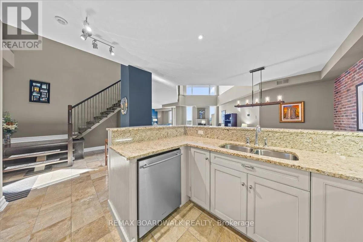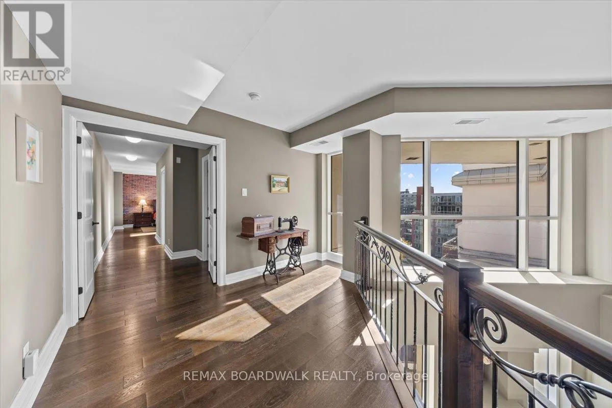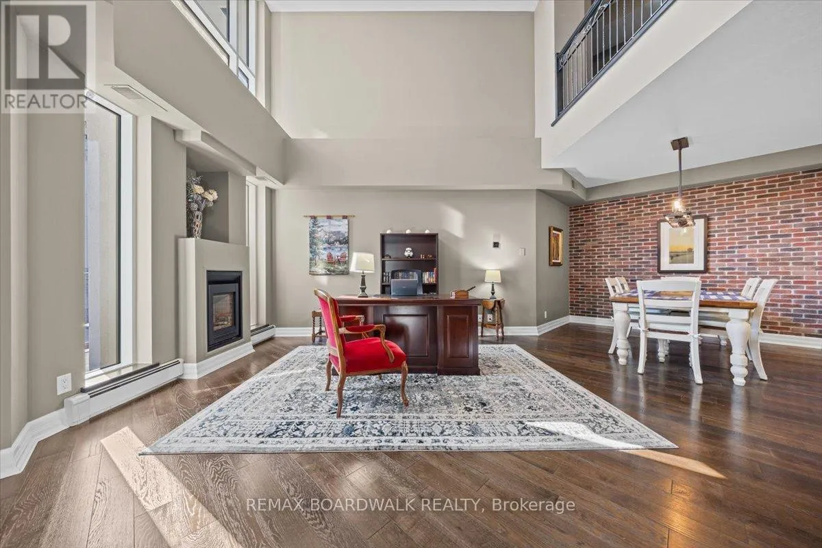 Cross Streets: O'Connor. ** Directions: South on O'Connor, turn right on McLeod. 417 to Metcalfe and take the loop around the Museum of Nature and stay on McLeod - cross O'Connor. Welcome to the Penthouse at The Opus - where exceptional square footage meets sophisticated downtown living. Square footage of this scale is nearly impossible to find in today's condo market! This rare offering has 2250+ sq. ft. of bright, south-facing living space. The inviting foyer opens to an impressive 2-storey living room with open riser staircase, ornamental ironwork, and floor-to-ceiling windows drawing in natural light. The open-concept kitchen features off-white cabinetry, granite counters with bar seating, excellent prep space, and clear sightlines to the living and dining areas. The dining room comfortably fits 6-10 guests, ideal for entertaining. The current living room (used as one of two home offices) includes a gas fireplace and access to a private balcony overlooking the gardens and rooftops. A second large flexible room on the main level can function as a family room, closed den, or optional 3rd bedroom. A generous secondary bedroom and full 4-piece bathroom complete this floor. Upstairs, the loft awaits, offering the best views in the home - perfect as a home office, studio, gym, or creative space. Laundry and utility rooms are conveniently located off this level. The Primary Suite includes a walk-in closet and a spacious 5-piece ensuite with soaker tub and double-sided fireplace shared with the bedroom. Ample room for a king-sized set. The unit includes one underground parking space, one locker, and two bicycle spots. Building amenities include a fitness room, party room with kitchen, library, guest suite, and five visitor parking spots. Exceptional location: seconds to the 417, two blocks from the Rideau Canal, and walking distance to both downtown and the Glebe. Urban convenience and executive elegance come together in this rare offering at The Opus. A penthouse offering true space, natural light, and flexibility - this is downtown living without compromise. (id:27476)