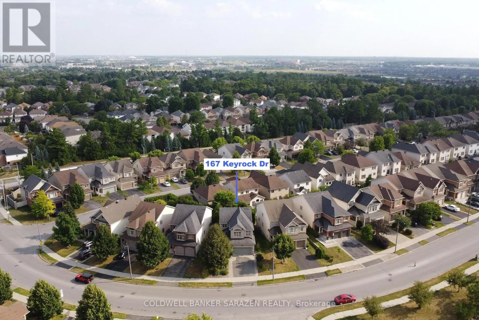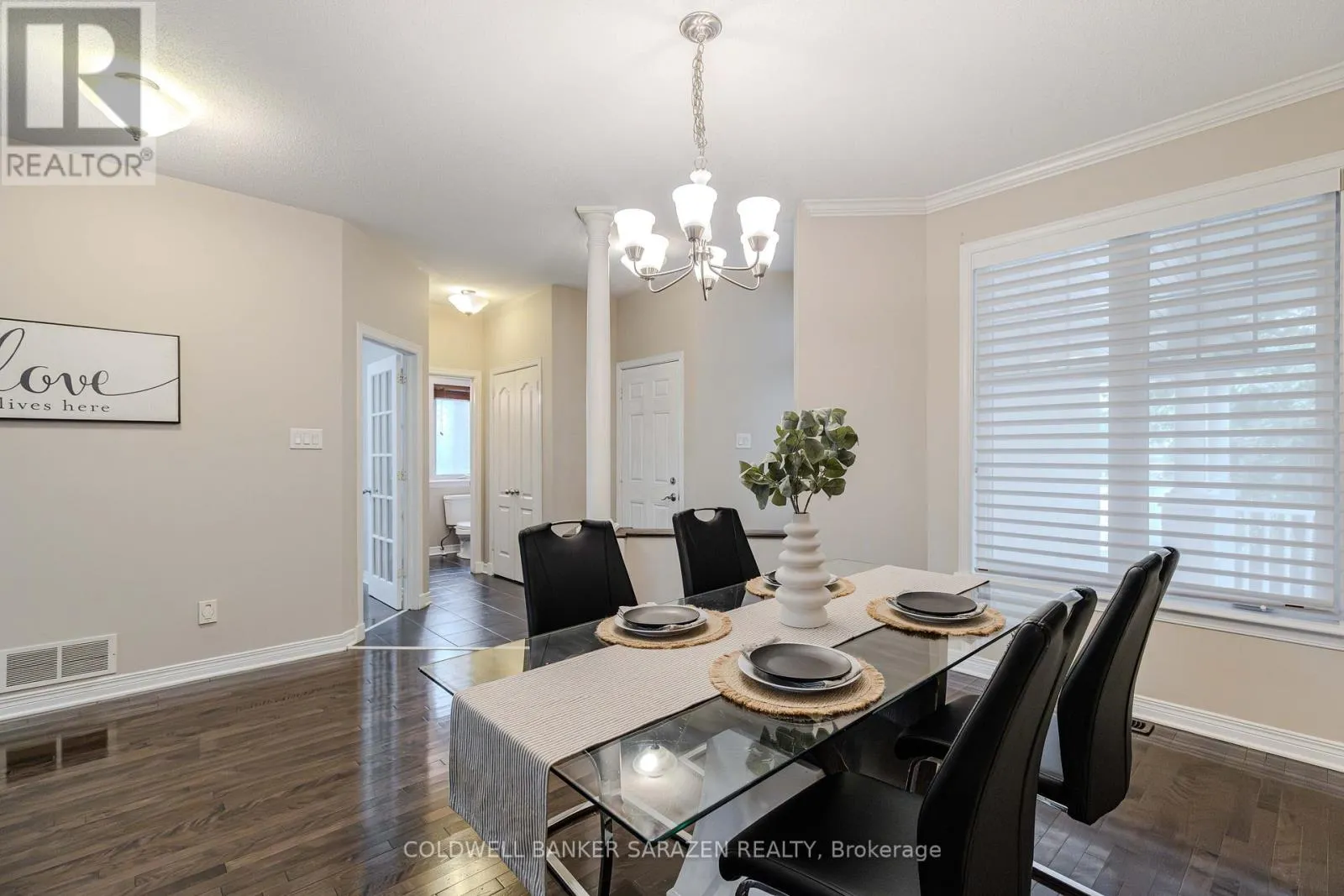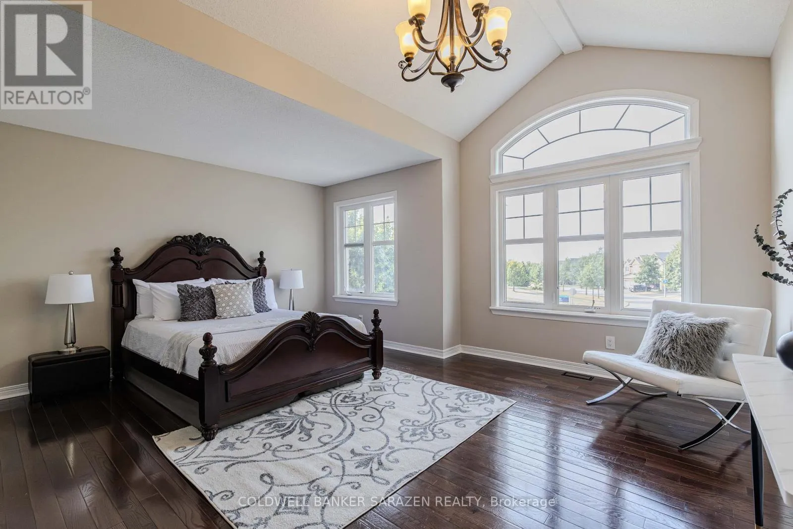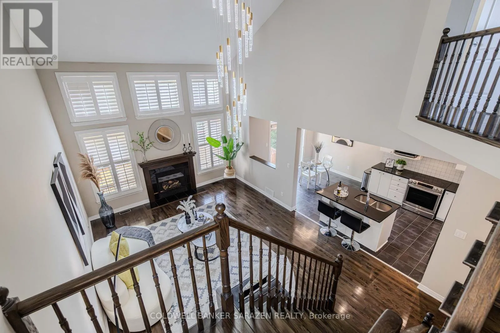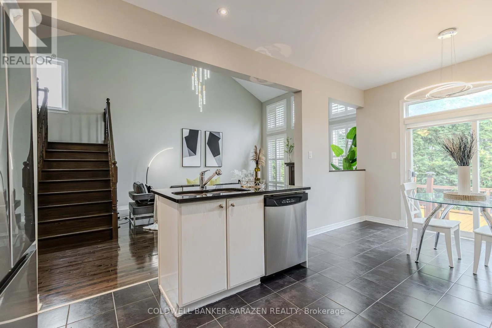 KANATA AVE TO KEYROCK Prime location directly facing a park! Stunning full brick façade with a charming front porch. The main floor boasts a spacious open-conceptdesign, featuring a soaring two-storey living room with a dramatic wall of windows adorned with California shutters. The transitional-style kitchen includes sleek black granite countertops and a contemporary tile backsplash. Adjacent eat-in area leads to a generous 24x16 ft deck with sunny western exposure perfect for evening gatherings. Elegant hardwood staircase leads to the upper level. The expansive primarybedroom features vaulted ceilings. The fully finished lower level offers a full bathroom, 4th bedroom, and a comfortable family/rec room. (id:27476)