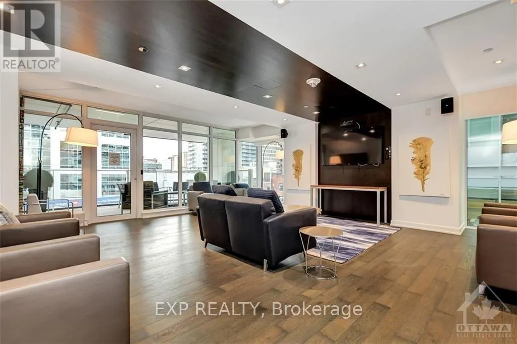 Cross Streets: Slater Street between Bank and O'Connor. ** Directions: Located on the North Side of Slater Between Bank and O'Connor. Welcome to this well-maintained one-bedroom plus den condo located on 21st floor (sub-penthouse level) of The Slater, a modern building with elegant designs in the heart of Ottawa's downtown core. This south-facing unit offers great downtown views and abundant natural light through floor-to-ceiling windows and an efficient open-concept layout designed for both comfort and functionality.The suite features contemporary finishes, hardwood flooring, a modern kitchen with stainless steel appliances, quartz counter tops and in-suite laundry. The den provides flexible space ideal for a home office or additional storage. A private balcony with beautiful downtown view and storage locker add further convenience.Residents enjoy access to a selection of well-designed building amenities including a fitness centre, party/meeting room, media room, and billiards room. Just steps from public transit, top restaurants, shopping, grocery stores, and Ottawa's financial district, this prime location delivers exceptional urban convenience. Ideally situated near the University of Ottawa, the Rideau Centre, and Parliament Hill, the building also features a dedicated bike room for residents, enhancing the ease and lifestyle of downtown living.Perfect for an urban professional or investor seeking a centrally located condo in a professionally managed building. (id:27476)