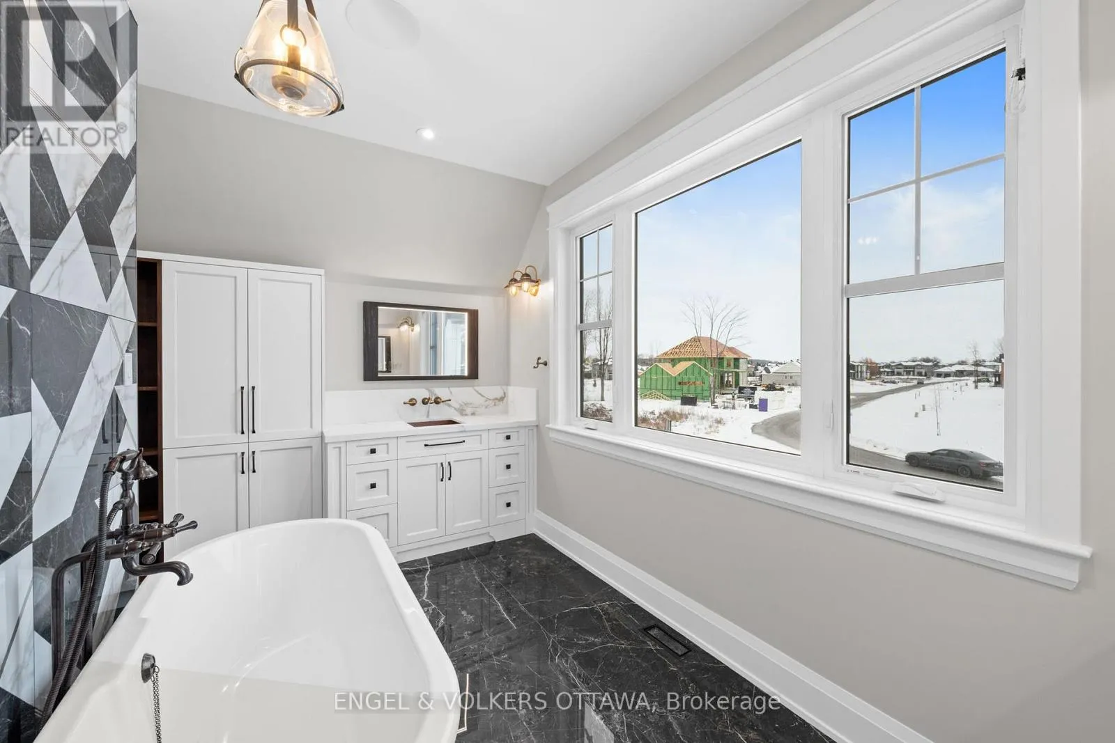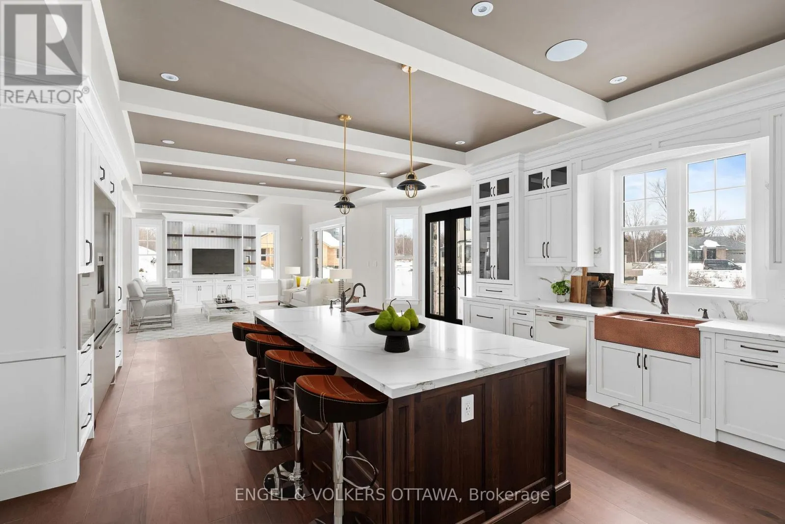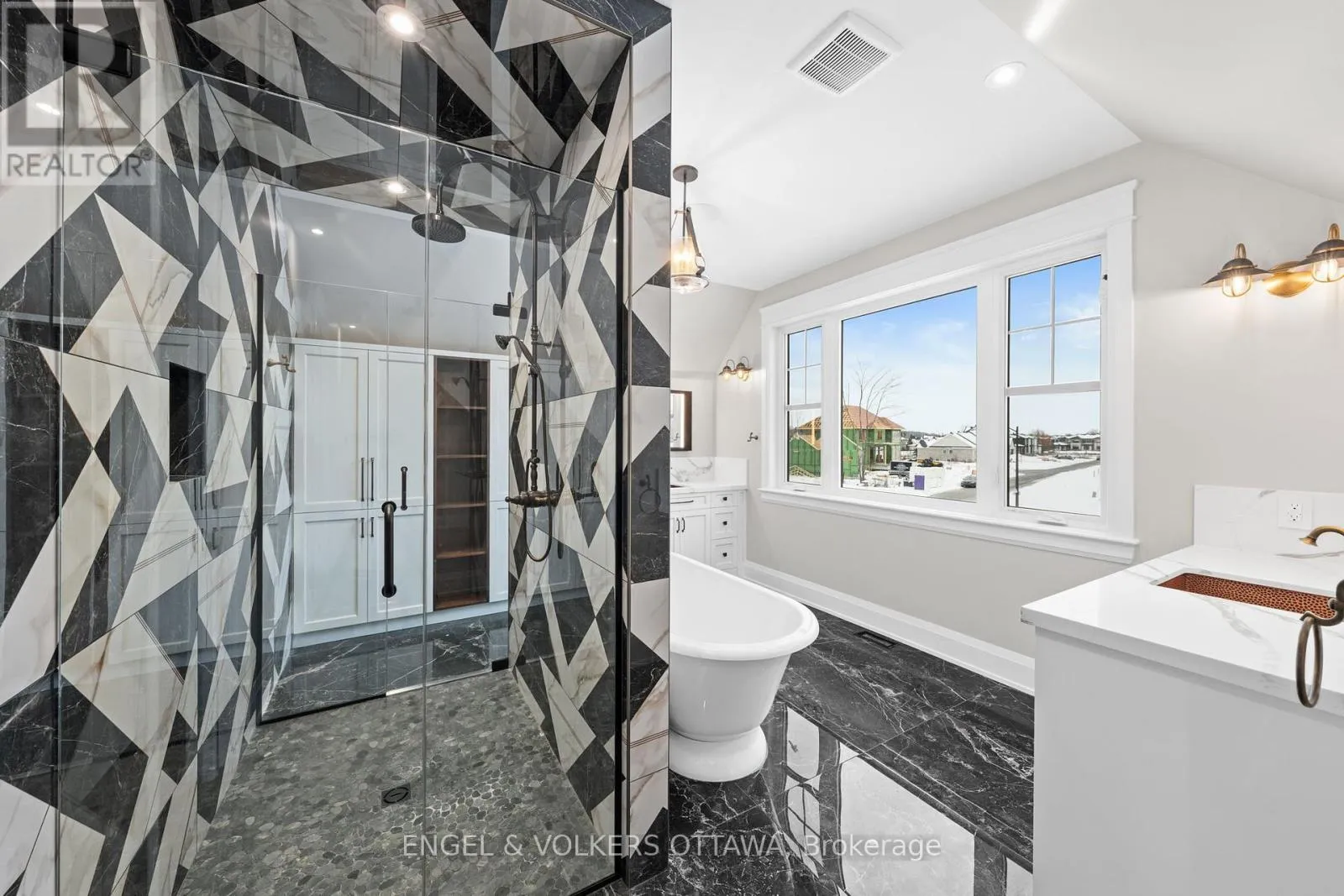 Cross Streets: Cabrelle Pl and Ashbee Crt. ** Directions: First Line to Dunblane Way, Left on Cabrelle Pl, Right onto Ashbee Crt. This thoughtfully designed, custom-built residence with full Tarion warranty is set in one of the area's most established and desirable neighbourhoods, reflecting a strong focus on quality construction, material integrity, and long-term durability. Offering 5 bedrooms and 6 bathrooms, the home delivers a well-balanced layout that supports both daily living and entertaining.The main level is anchored by a professionally appointed kitchen featuring a full Jenn-Air appliance package, custom cabinetry and a separate butler's kitchen designed for efficiency and seamless hosting. Custom copper sinks are featured throughout all kitchen areas, including the main kitchen, butler's pantry and basement kitchen/bar. Extra-wide plank hardwood flooring flows throughout the home, complemented by coffered ceilings and clean-lined millwork that reinforce the home's classic architectural foundation with restrained modern detailing. A dedicated main-floor office provides a functional and private workspace. All bathrooms are finished with heated floors and durable, high-quality materials. The primary suite is a true retreat, highlighted by an exceptional en suite with spa-level finishes, thoughtful layout and a well-proportioned walk-in closet.The fully finished basement extends the living space and is well suited for entertaining or multi-generational living, complete with a kitchen/bar area, fireplace, and flexible recreation space.The exterior combines Hardie board siding with limestone detailing, selected for both durability and timeless architectural appeal. Throughout the home, modern elements are intentionally restrained and grounded in classic design principles, resulting in a truly unique residence built to age exceptionally well over time. (id:27476)