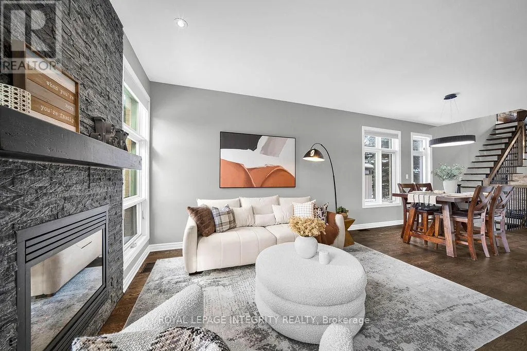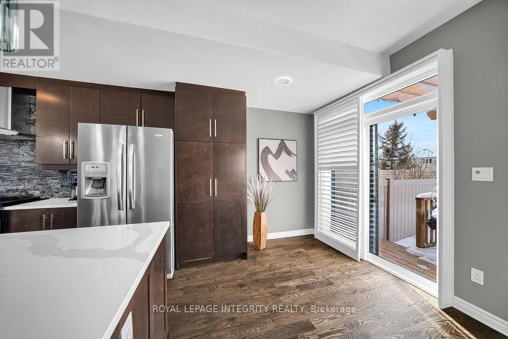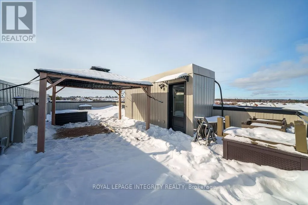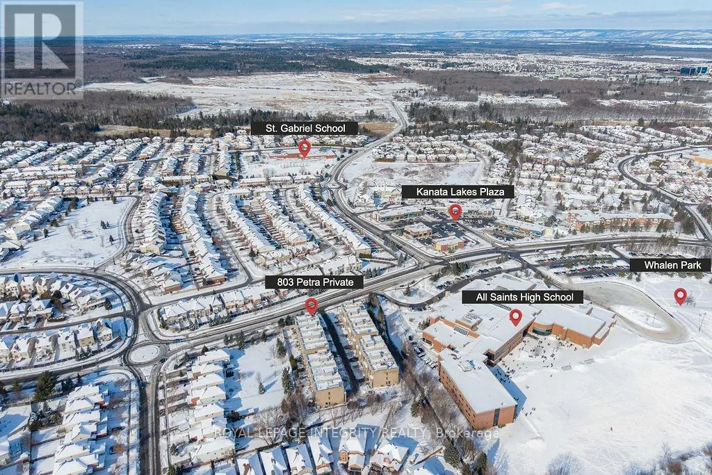 Terry Fox to Kanata Ave, right on Petra Private. Manhattan-inspired contemporary meets Kanata Lakes in this elevated ~4,000 sqft End-Unit masterpiece. Spanning 4 levels of meticulously crafted luxury, this home makes a bold architectural statement with 9-ft Ceilings on 3 Levels, Solid Hardwood Throughout, an Open-Riser "transition gallery" staircase, and a Private Elevator serving every floor. The heart of the home features an expanded chef's kitchen with premium Quartz, bespoke Stone accents, custom cabinets and an oversized Central Island. This space flows seamlessly into expansive living and dining characterized by a stone-inlaid fireplace, and massive windows that bathe the interior in natural light. The second level serves as a dedicated family retreat with two generous bedrms, a main bath and a vast family room with a wet bar and dramatic 2-Story Ceilings amplify the sense of space, creating a visually stunning architectural void. Occupying The Entire Top Floor, the Primary Suite is a masterclass in Penthouse luxury. It features a spa-bath, a walk-in closet, and a Private Office and is crowned by an elegant LOFT gallery, a private sky-haven for refined relaxation. The crown jewel is the spectacular 1,000 sqft private Rooftop Terrace, equipped with a Gazebo, commanding panoramic views for glamorous soirées or intimate sunsets. Exterior excellence continues with $100 K+ in professional landscaping, from the elegant Stone Entry to the private backyard featuring a salt-water In-Ground Pool, pergola covered Deck and integrated Irrigation System. It's a low-maintenance environment designed for seamless indoor-outdoor living. Situated on a quiet private road within a Top-Tier School Catchment, next to All Saints HS, walk to St Gabriel Elementary, steps from upscale shopping and dining; minutes from the Kanata North Tech Hub. This is a residence of unparalleled scale, perfectly tailored for the modern professional family or the discerning retiree. Truly a One-Of-A-Kind offering for the most selective buyer. (id:27476)
