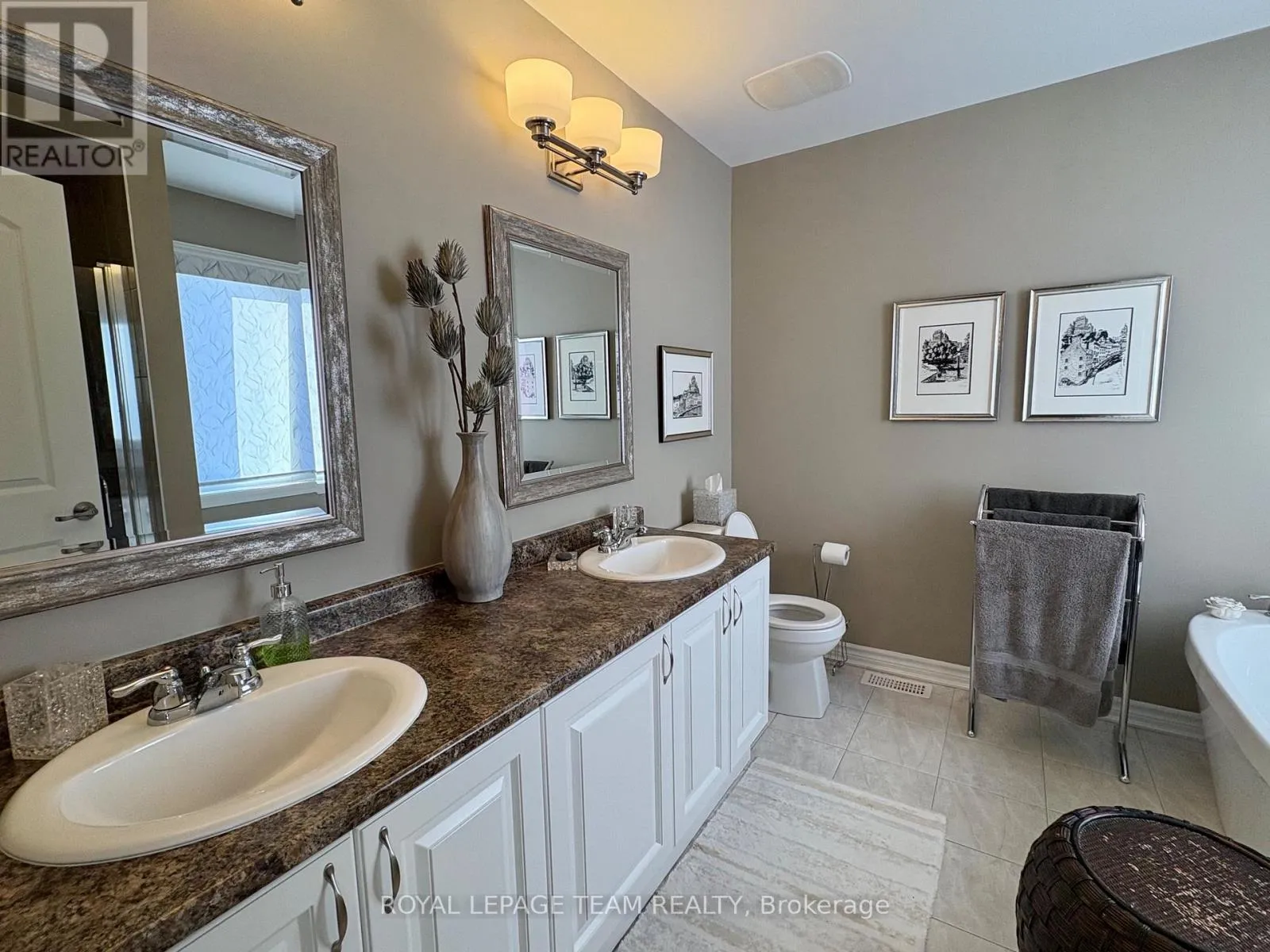 Cross Streets: Summergaze Street. ** Directions: Southbound on Eagleson, turn left on Hope Side Road, left on Acceptance Place, right on Summergaze Street and right on Shimmerton Circle and take first left on Shimmerton Circle. Meticulously maintained 3 bedroom + loft single family detached home w single car garage in family oriented Kanata. Your family will appreciate the roomy front entrance. It provides lots of space for removing boots & coats. The main floor features pristine oak flooring, a large dining room for family dinners & entertaining, & a cozy great room anchored by the warmth and elegance of a gas fireplace. The open concept great room/kitchen makes it easy to chat with those in the updated kitchen. It features quartz countertops, pantry, subway style backsplash & stainless steel appliances. It was updated in 2021 with pot lights, extra cabinets and a long convenient island with attached seating for two. Upstairs you are welcomed by a bonus room/loft. A great place to watch tv, have an office workspace or use as a spot for children to do homework. The family bathroom has a combo shower/tub, great for the children. Also on the second level is a convenient laundry room. You will also find 3 bedrooms. The bright primary bedroom has as walk in closet, room for a king size bed and includes the wall-mounted TV and associated TV wall-mount bracket. It also features a large 5 piece ensuite bathroom (complete with separate shower, free-standing modern deep soaker bathtub, as well as double sinks. Come summer, your family will enjoy the partially fenced low maintenance backyard w two tier decks cleverly partitioned with privacy in mind. The lower tier has a direct gas hookup for the included BBQ and leads to a garden shed. The top tier deck has a direct hookup to water access. The unfinished basement is perfect for storage or you can design it as you see fit (it has a rough in for a bathroom). Safety features: an alarm system w connection to fire alarm system in basement, a doorbell w camera, & a whole home surge protector. 2021 updates: New washer/dryer, interior of home fully painted, kitchen reno, window film on patio + front doors. 2024 updates: new stove & microwave. (id:27476)