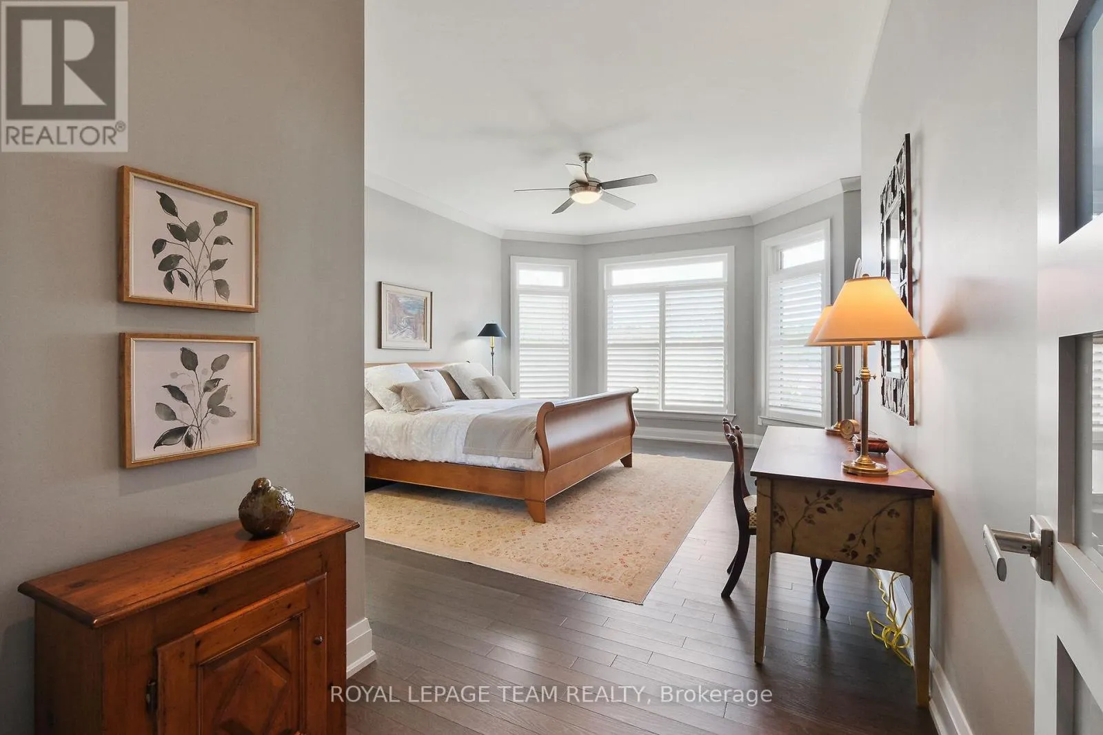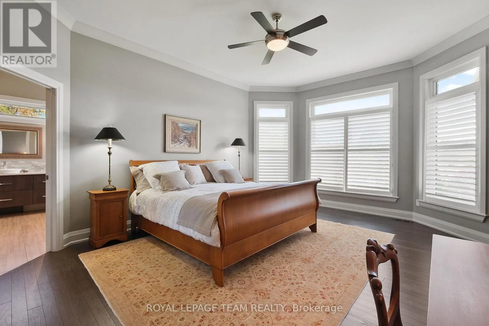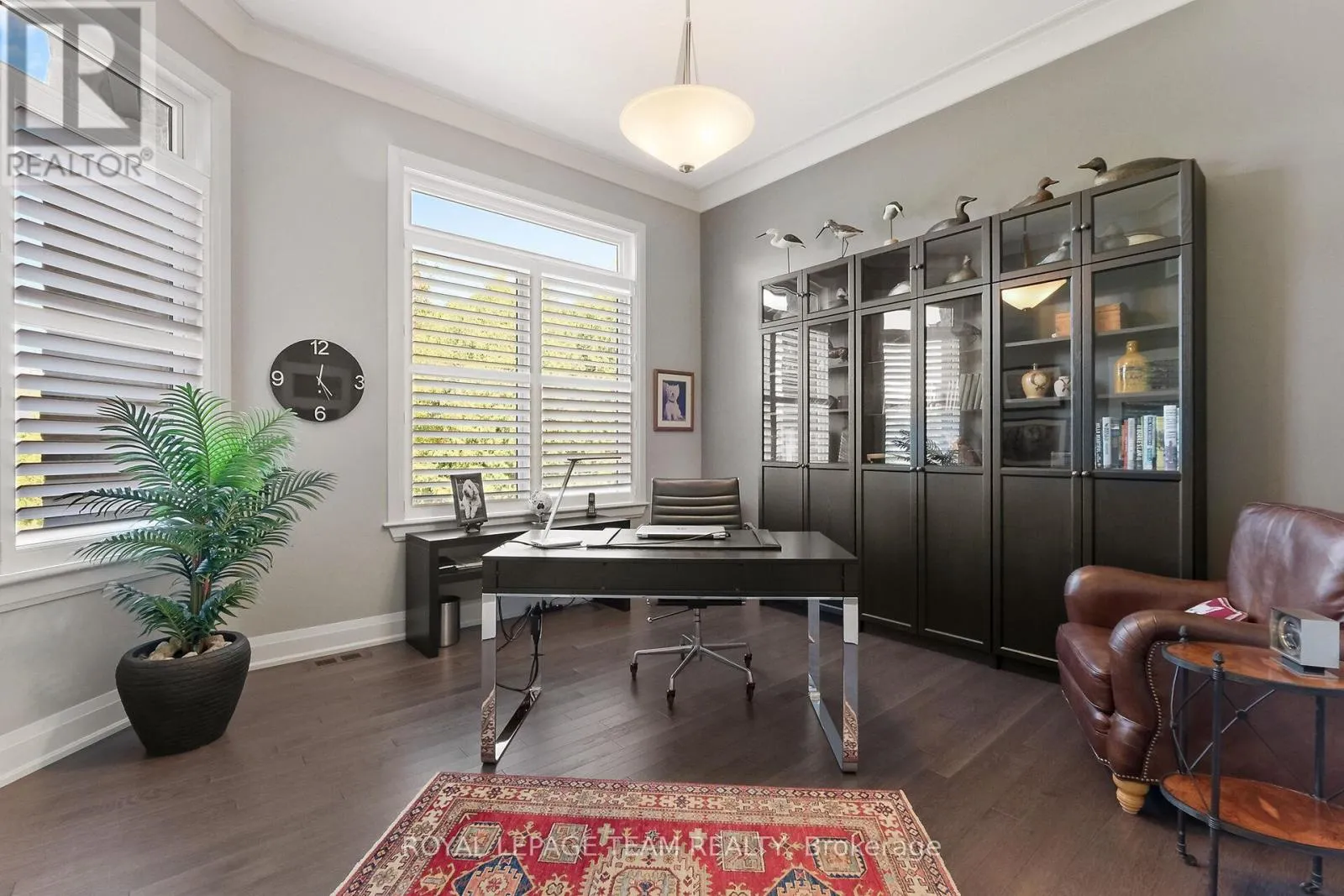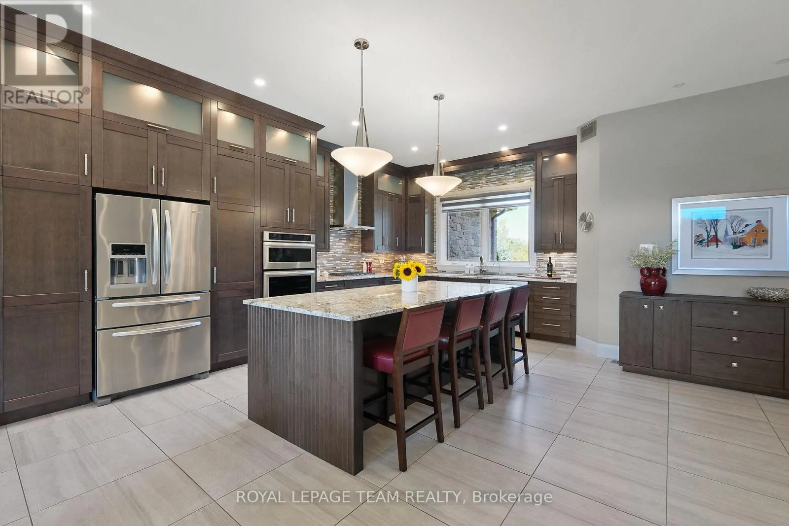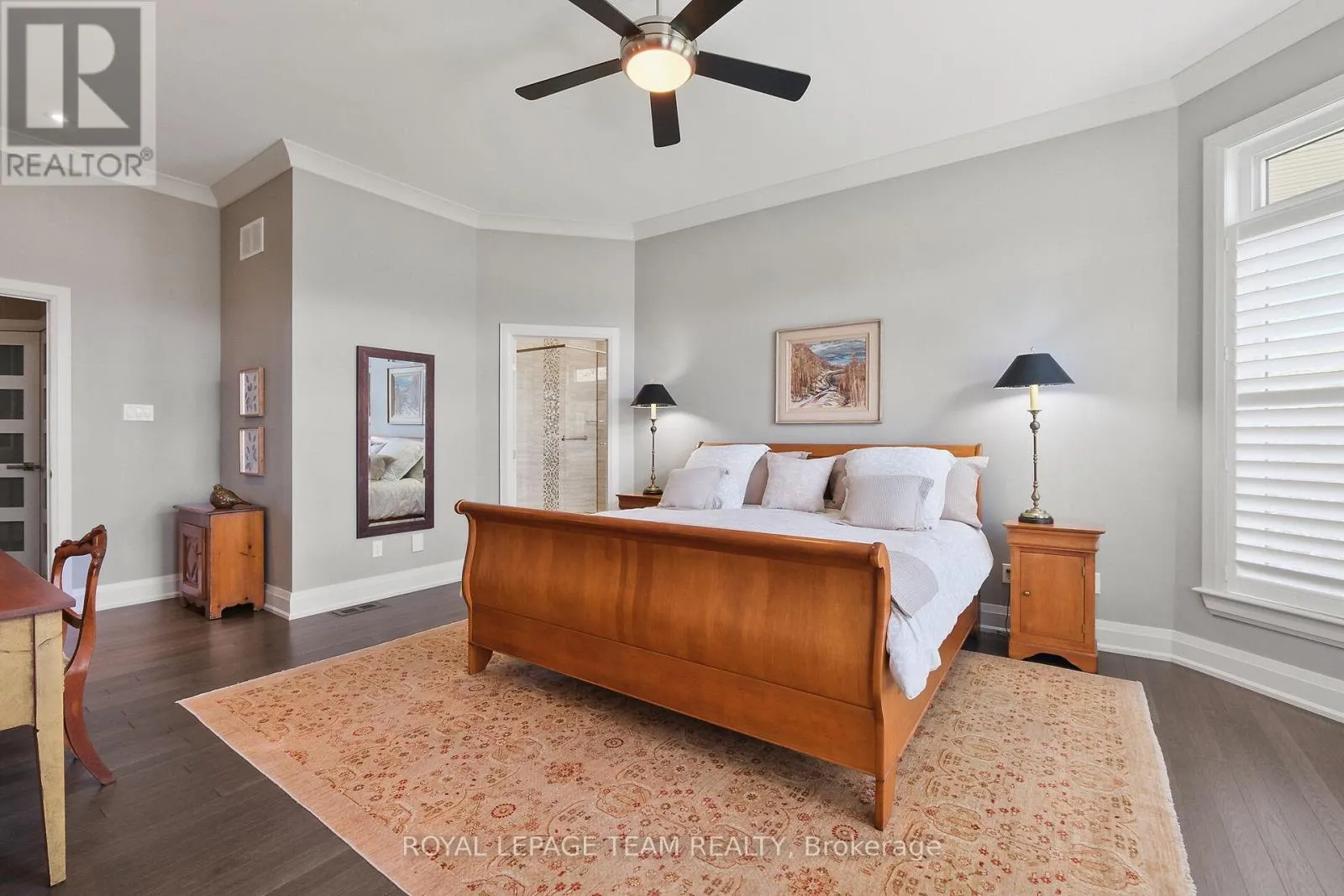 Cross Streets: Richardson Side Rd. ** Directions: Richardson Side Rd to Gentry Rd to Shamus Way. Welcome to this executive-style bungalow offering refined luxury and timeless design on a beautifully landscaped 2+ acre country lot. Impeccably built with a stately stone and brick exterior; this home exudes sophistication with warmth from the moment you arrive. The covered front porch and elegant glass entry open to soaring tall ceilings, rich hand-scraped hardwood floors, and expansive transom windows that flood the home with natural light. The open-concept living space centers around a striking double-sided fireplace and flows seamlessly into the designer Deslaurier kitchen, a true showpiece featuring full-height custom cabinetry, granite countertops, built-in stainless steel appliances, and a grand island with seating for four; perfectly designed for entertaining or for everyday living. The spacious primary suite offers a tranquil retreat with large windows, a walk-in closet, and a spa-inspired ensuite showcasing dual vanities and contemporary finishes. Additional bedrooms and a main-floor office and cozy den provide flexibility for family or remote work. Enjoy the relaxed country air outside under a covered 16ft x 36ft back patio with discreet power sunscreen, while looking out onto manicured lawns, lush gardens, and a completely private backdrop, ideal for gatherings or peaceful evenings as the sun sets. An attached oversized 4-car garage with extra tall insulated doors, direct basement access, a fully paved driveway with decorative lit stone pillars, and impeccable attention to detail complete this exceptional rural property. Experience the perfect blend of luxury, comfort, and craftsmanship in this remarkable bungalow. Truly a home to fall in love with! Welcome Home! (id:27476)