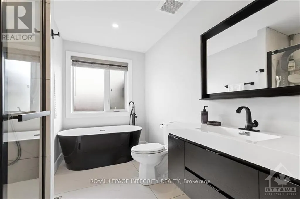 From the Vanier Parkway take either Donald or Queen Mary to Quill St. The perfect student rental, offering sophisticated living in an accessible location. Welcome to 10 Quill Street, a modern 5-bedroom, 5-bathroom semi-detached home in sought-after Overbrook, just minutes from downtown Ottawa. This well-appointed residence features an open-concept main floor with a contemporary kitchen showcasing a quartz waterfall island, black stainless steel appliances, and luxury vinyl flooring throughout. The bright living area is enhanced by large windows and a gas fireplace.The upper levels offer a spacious primary suite with a walk-in closet and a spa-inspired ensuite featuring a soaker tub and oversized glass shower. Four additional bedrooms, including two with private ensuites, along with an additional full bathroom, provide ample living space. A private rooftop terrace with enclosed bar area offers impressive sunset views and an ideal space for entertaining. Conveniently located close to amenities, transit, and the downtown core. Please provide completed rental application form, Equifax credit report, ID's and proof of income to apply. (id:27476)