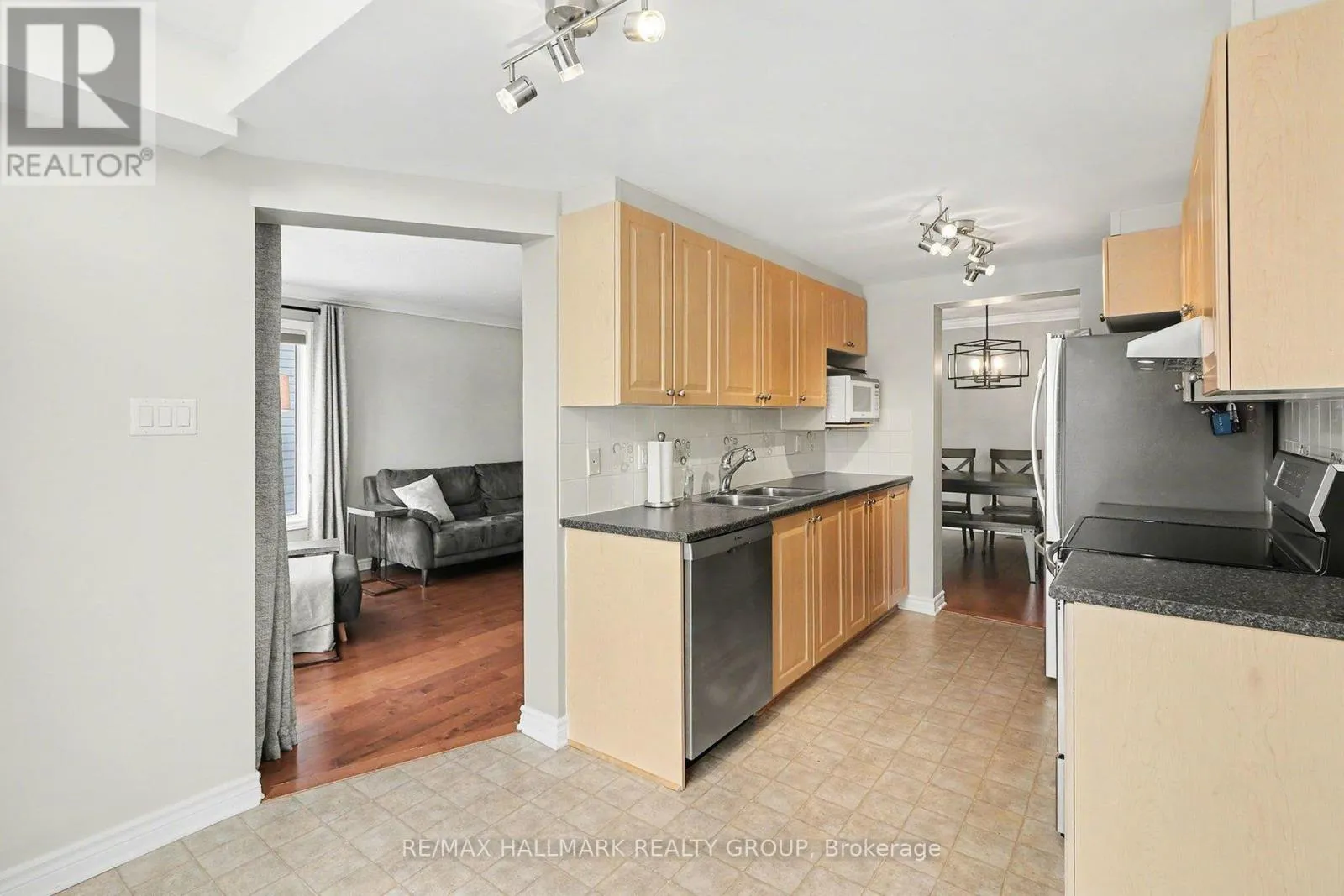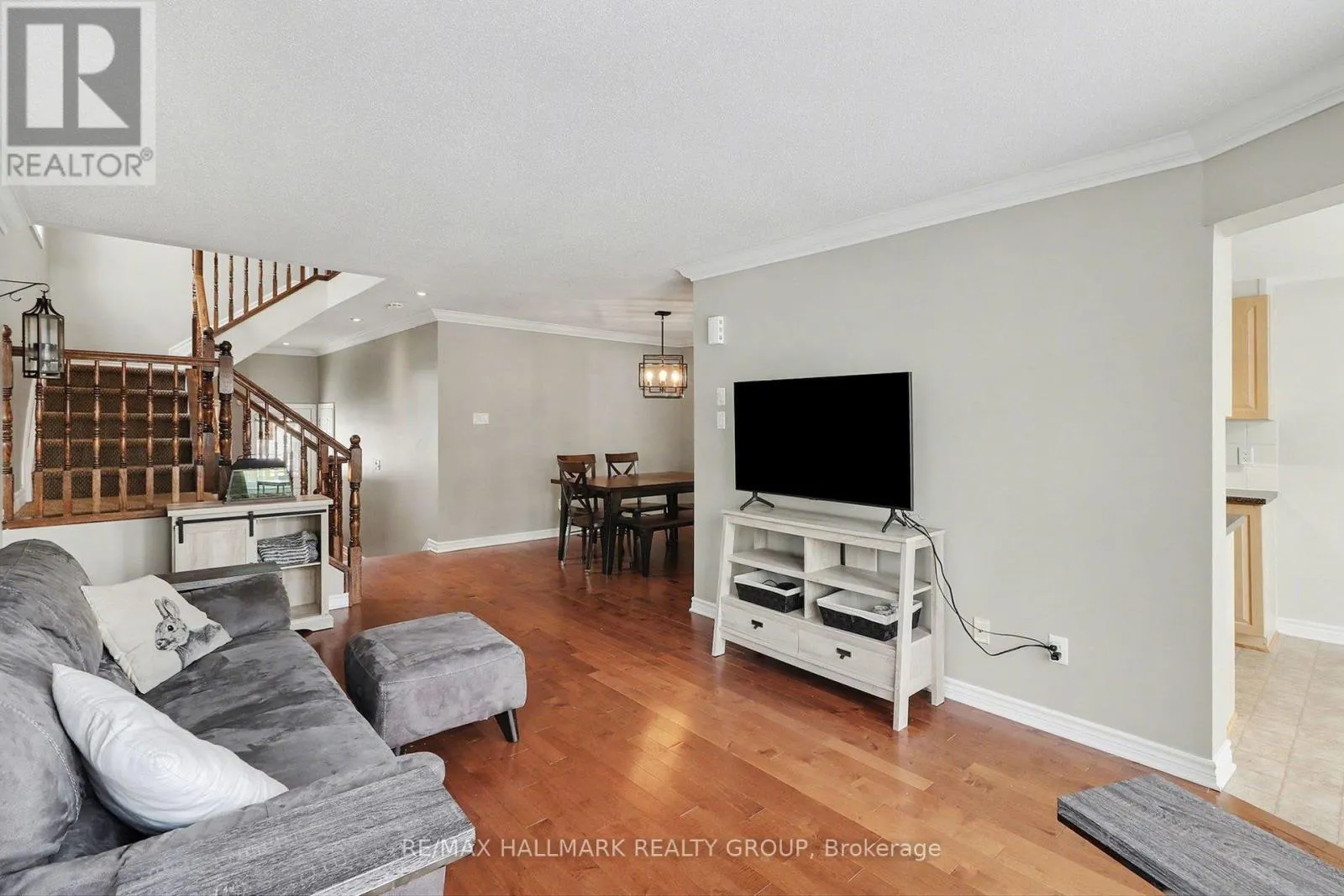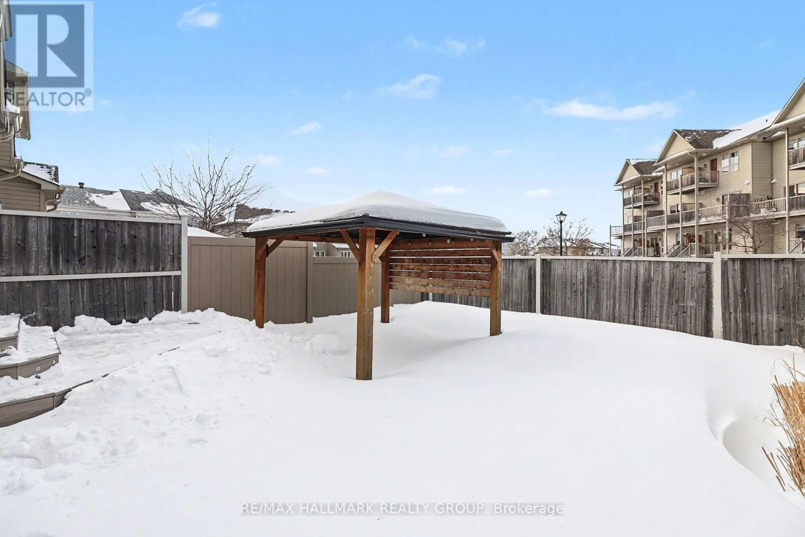 10th Line - East on Harvest Valley Ave. After going around the parkland at the Lakeridge drive intersection, it will be the 2nd right off of Harvest Valley. Welcome to this beautiful 3-bedroom end-unit townhome, perfectly located close to all amenities and top-rated schools. This bright and inviting home features an abundance of windows, filling the space with natural light, and vaulted ceilings in the eating area that add to the open, airy feel. The kitchen is equipped with stainless steel appliances, while NEW FLOORING installed in 2024 makes the home CARPET-FREE (minus stairs). A brand-NEW ROOF (2025) with warranty provides added peace of mind. Upstairs, you'll find a spacious primary bedroom with EN-SUITE bathroom, along with two additional well-appointed bedrooms. The finished basement offers a cozy fireplace, perfect for relaxing or entertaining. Step outside to low-maintenance outdoor living featuring PVC fencing, a composite deck, interlock patio, and a charming gazebo, all within a FULLY LANDSCAPED backyard with NO GRASS. Move-in ready, this home delivers style, quality, and a prime location in one exceptional package. (id:27476)