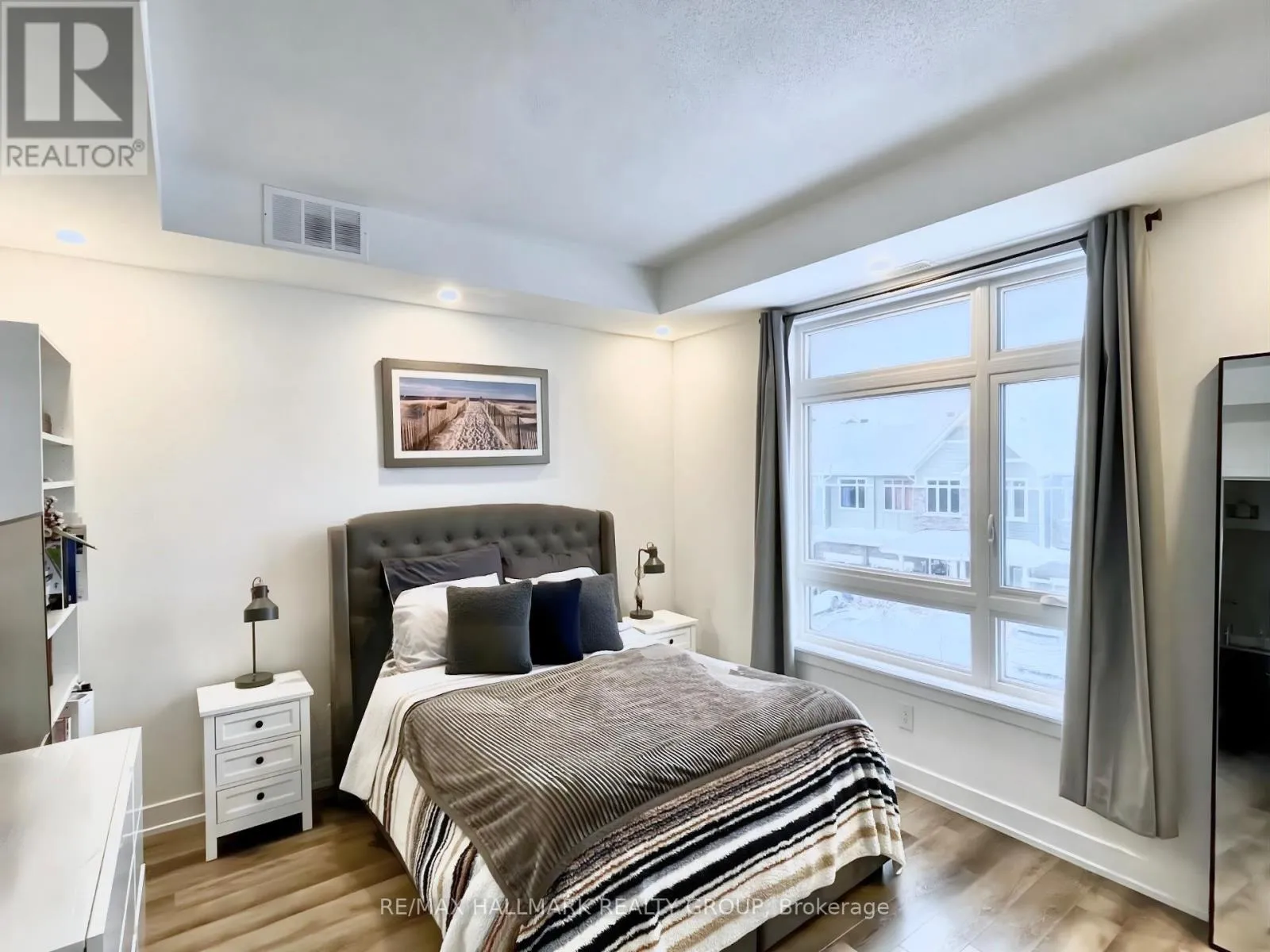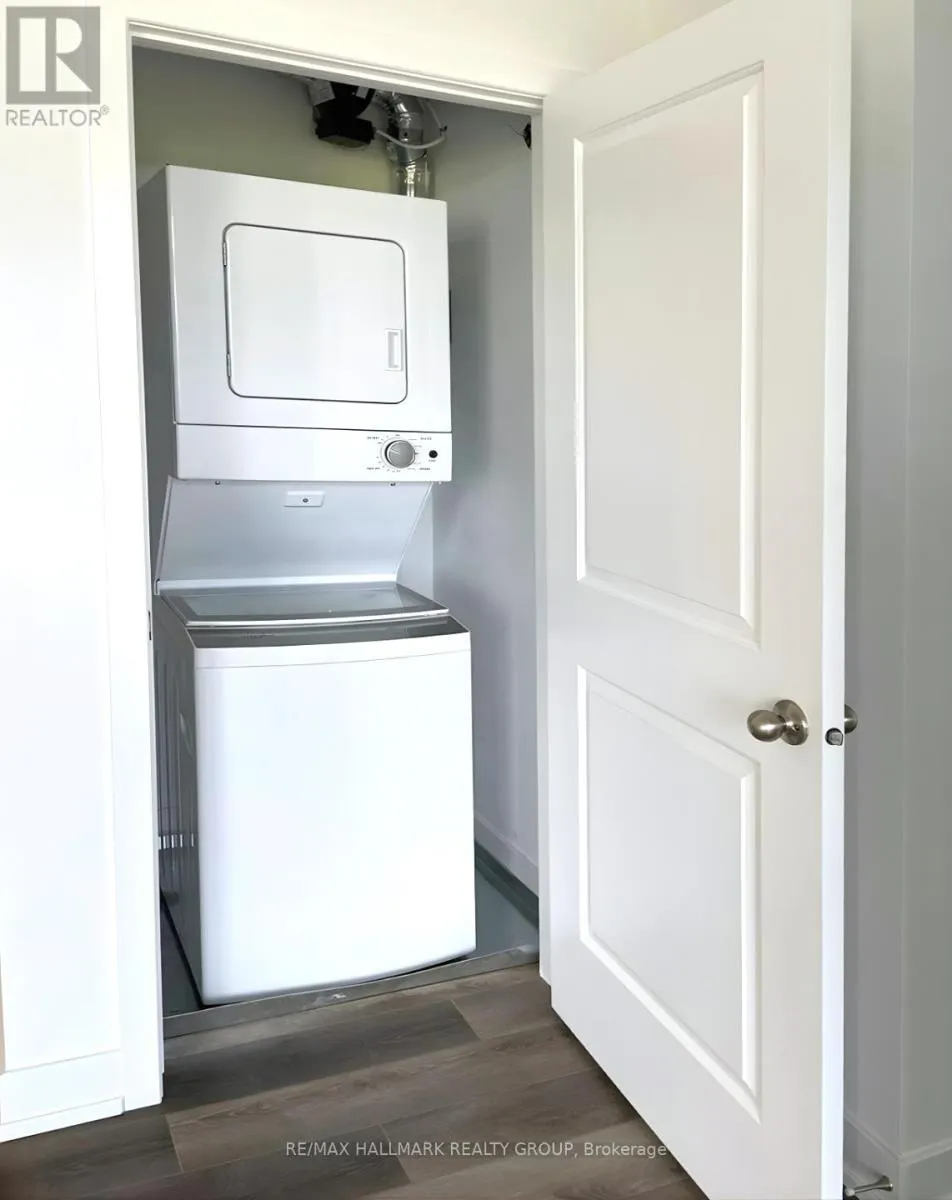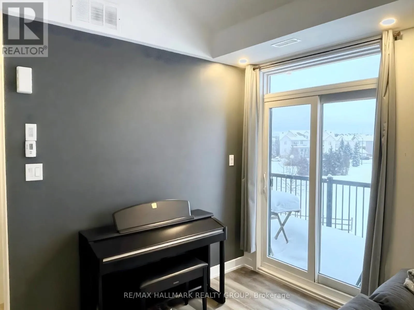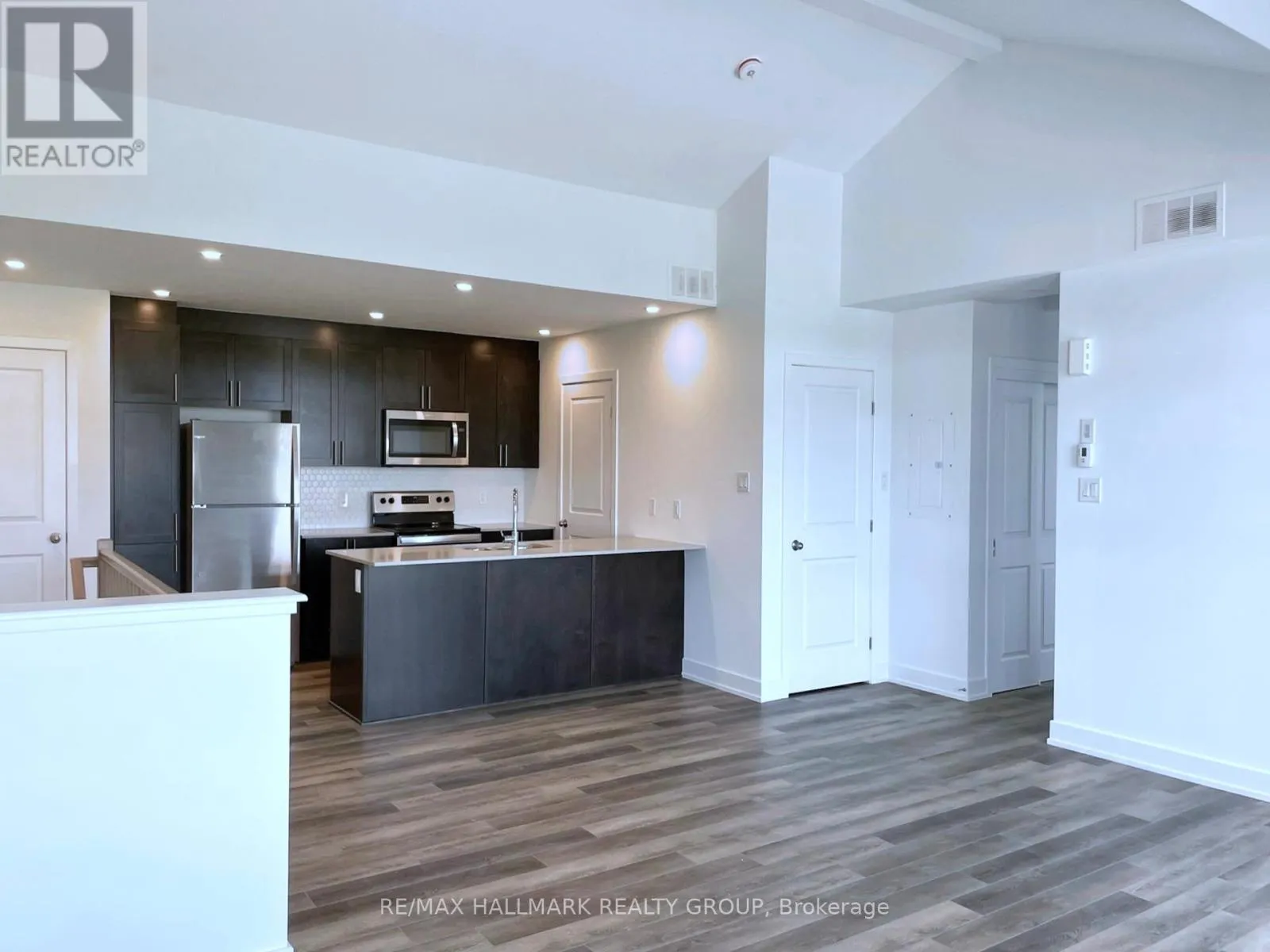 Cross Streets: Terryfox Dr & Overberg Way. ** Directions: From HWY 417, take Terry Fox Drive south, turn left onto Overberg Way, the building will be on your left at the intersection of Tulum Cres and Overberg Way. This premium, upgraded top-floor unit offers an exceptional blend of space, lifestyle, and stunning park views in one of Kanata's most sought-after communities. Step inside to an airy open-concept layout featuring cathedral ceilings, rich hardwood flooring throughout, and oversized windows that flood the home with natural light. The kitchen is both stylish and functional, showcasing quartz countertops, ample cabinetry, and stainless steel appliances, all seamlessly flowing into the bright living and dining areas - an inviting space for everyday living and entertaining. Step onto your private balcony overlooking the park, perfect for morning coffee or summer dining. A bright den also overlooks the park, offering a serene, light-filled space ideal for a home office or music area. The primary suite features a large closet and a private 4-piece ensuite with double quartz vanities and a walk-in shower. The second bedroom also enjoys park-facing windows, and an additional full bathroom plus convenient in-unit laundry complete the interior. Step outside to enjoy the green space, playground, and basketball court - perfect for outdoor fun and recreation. Low-maintenance living and on-site visitor parking add to the appeal. Conveniently located near top-ranked schools, parks, trails, shopping, restaurants, transit, and major highways. A modern condo that truly stands out and is ready to impress. (id:27476)