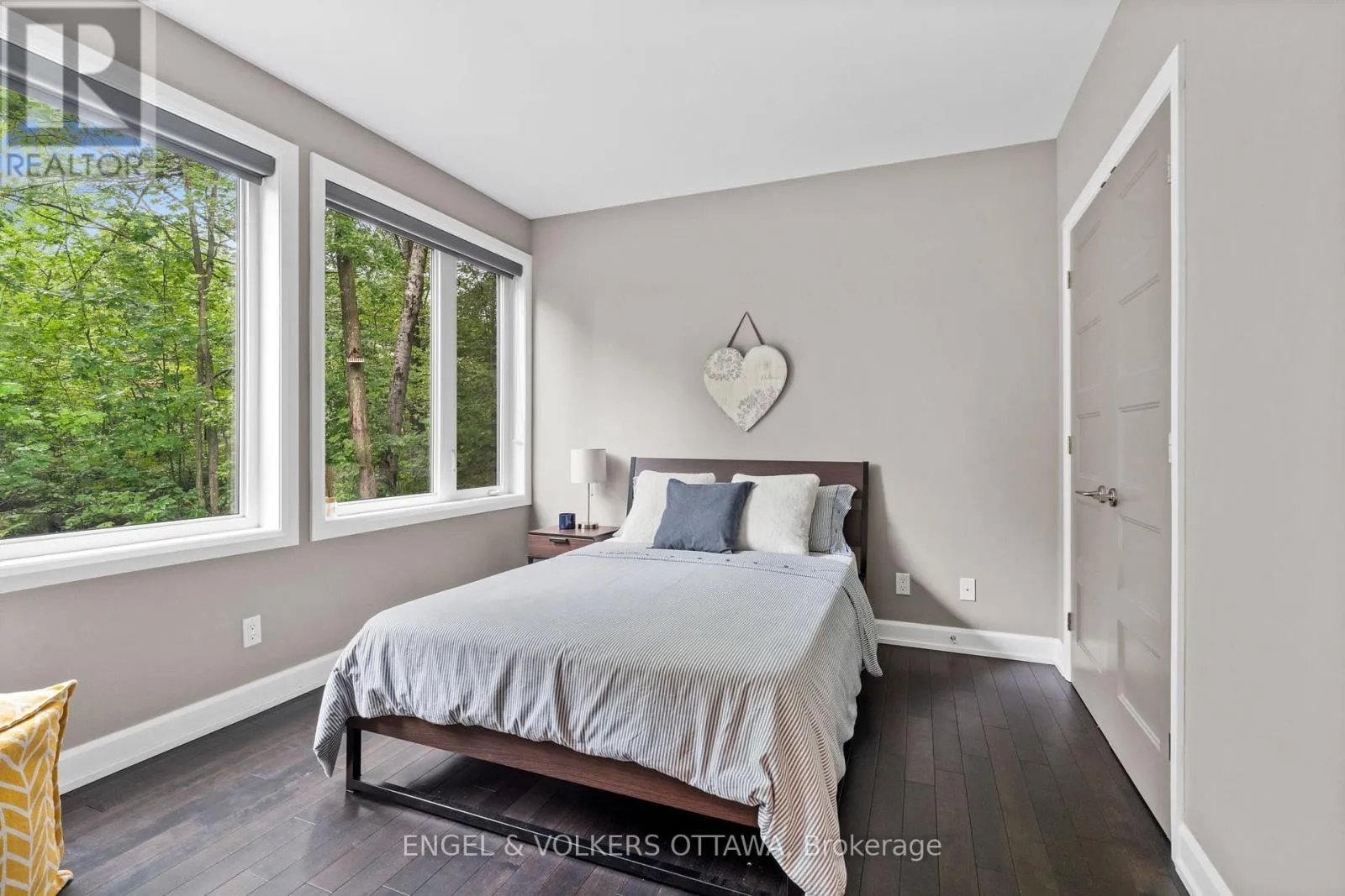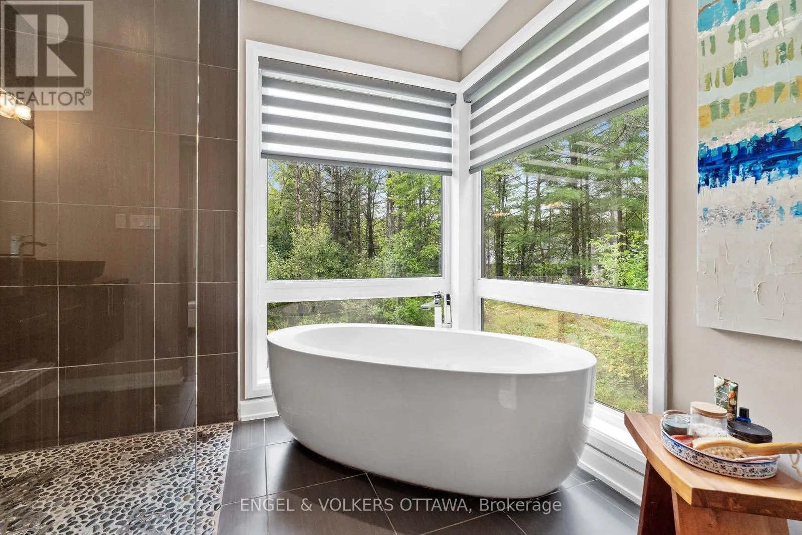 Cross Streets: Marchurst Rd/John Aselford Dr. ** Directions: March Road to Marchurst Road to John Aselford Drive to Edith Margaret Place, last home on left side. Welcome to Saddlebrook Estates, where modern sophistication meets rural tranquility in this award-winning residence designed by Brian Saumure and built by Maple Leaf Custom Homes. Nestled on a private, treed 3.33-acre lot backing onto more than 500 acres of Crown land with resident-maintained hiking, snowshoeing, and cross-country ski trails, this property offers guaranteed unobstructed views and exceptional privacy.This reverse-concept home features 2,775 sq ft of refined living space (1,650 sq ft on the main level and 1,125 sq ft on the lower level), plus a 175 sq ft three-walled covered outdoor entertaining area. Radiant in-floor heating warms the lower level, while an architectural steel-and-glass staircase and abundant interior and exterior lighting create an open, airy ambiance.The great room, anchored by a Napoleon fireplace with built-in speakers, flows seamlessly into the chef's kitchen complete with professional appliances, a walk-in pantry, electronic push-button cabinetry, a dining area, and a powder room roughed-in for a future bath or shower. Designed for convenient living, the primary suite is located on the main living level and features a dressing area and spa-style ensuite. A bright office on the main level opens to a private balcony and yard walkout.The lower level includes a media room, three additional bedrooms, a full bath, mudroom, storage or gym area, mechanical room, and direct access to the full two-car garage.Built for both style and durability, the exterior combines cedar accents, concrete board siding, and metal cladding. Tucked at the end of a quiet cul-de-sac just minutes from Carp Village and central Kanata, this is a rare opportunity to enjoy upscale, efficient living surrounded by nature. (id:27476)