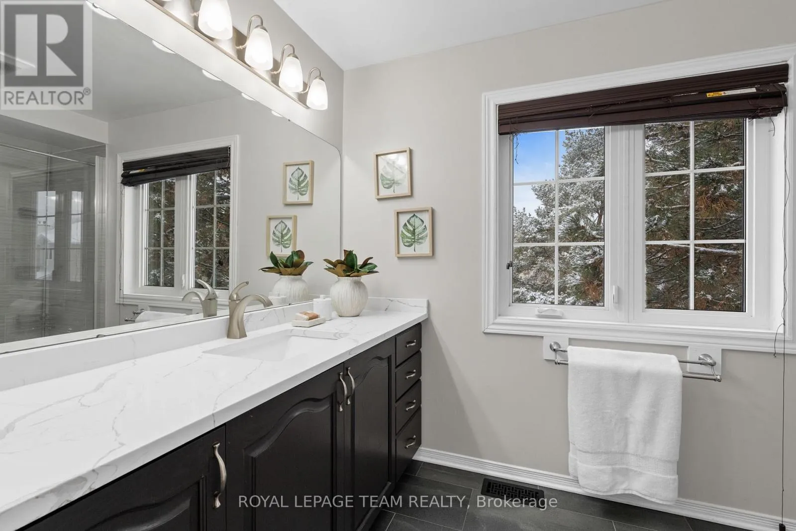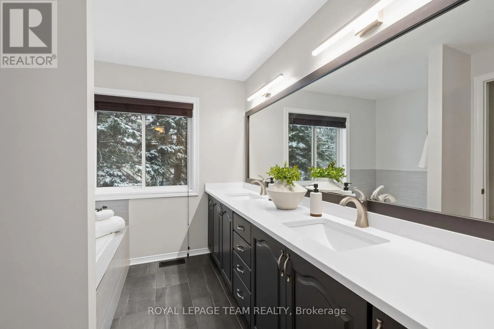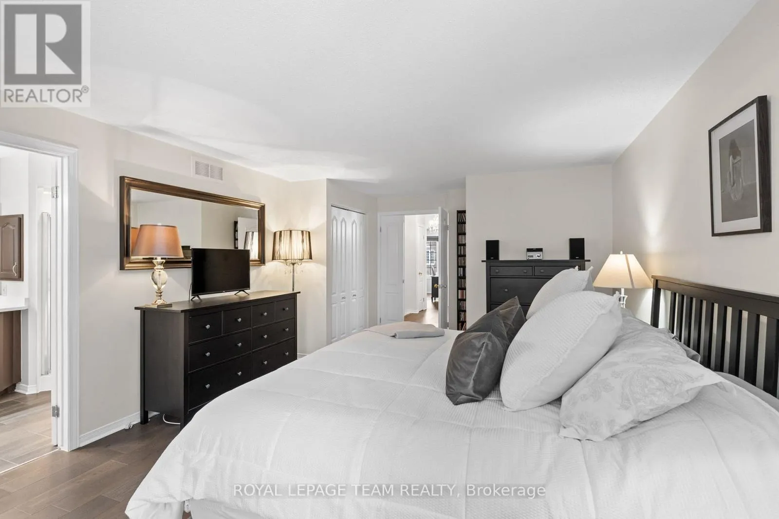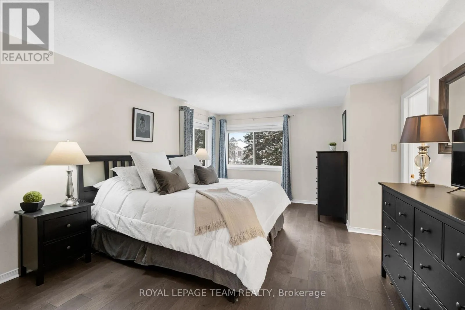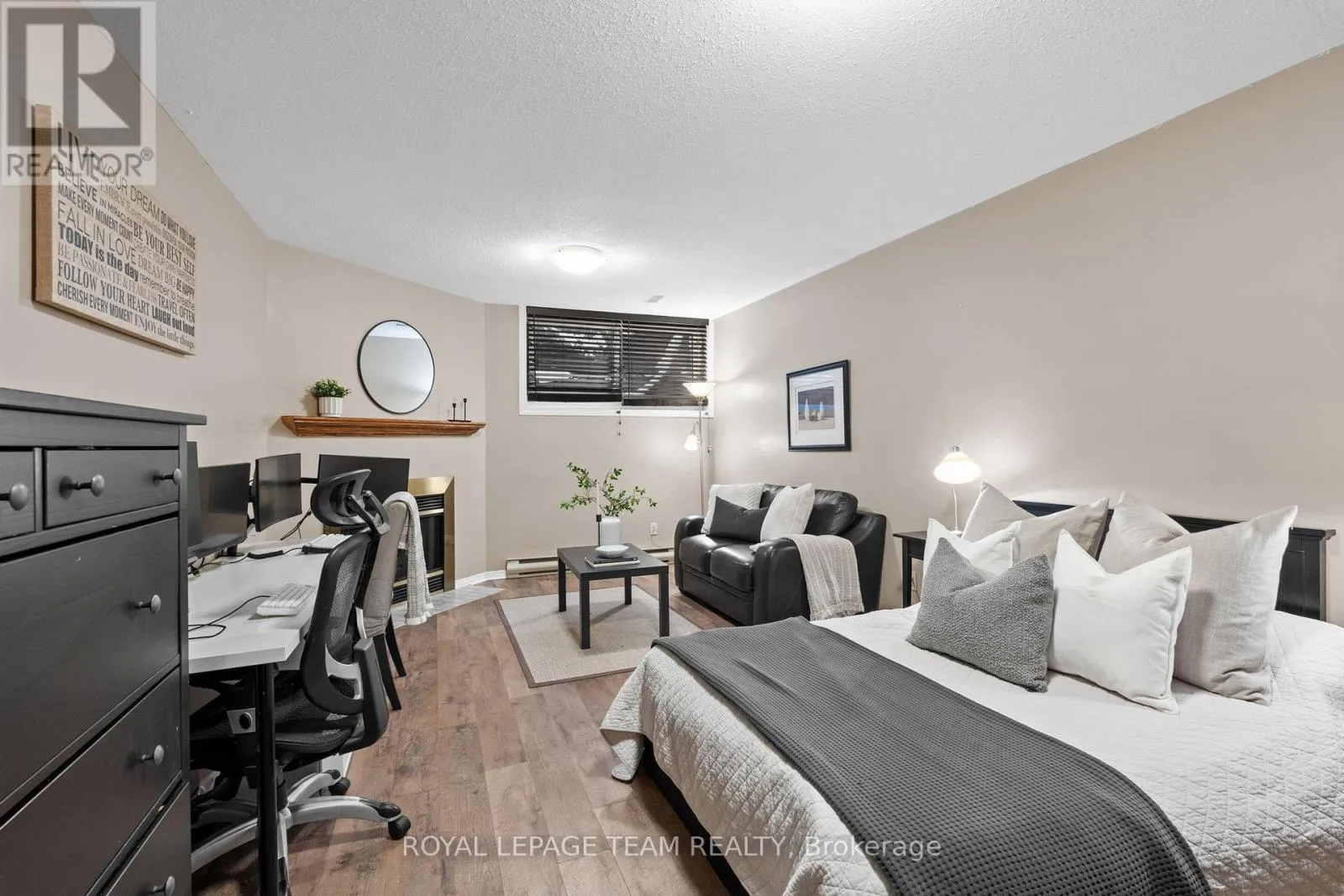 Cross Streets: Centrepointe and Baseline. ** Directions: Centrepointe Dr. to StoneBriar, then right on Sandcliffe. Maintenance Free Living! Condo fees include snow removal and lawn care! Welcome to this beautifully updated end-unit condo townhouse in the highly sought-after Centrepointe neighbourhood. Surrounded by mature trees, this bright and private home offers a peaceful setting with added natural light-an ideal retreat at the end of the day. The spacious layout features four bedrooms, including three on the upper level and a full bedroom on the main floor, perfect for guests, a home office, or multigenerational living. The oversized primary bedroom offers a comfortable retreat with plenty of space to unwind. Hardwood flooring flows throughout, creating warmth and continuity, while the updated kitchen offers a functional layout with a convenient breakfast bar-ideal for casual meals, homework, or morning coffee. Renovated upstairs bathrooms add modern comfort and style, enhancing the home's turnkey appeal. Enjoy cozy evenings by the electric fireplace in the living room or the wood-burning fireplace in the basement, offering warmth and versatility year-round. Thoughtfully updated and beautifully maintained, this calm and welcoming home allows you to simply unpack and enjoy. Ideally located just steps from Centrepointe Park, the library, transit, and close to shopping, schools, and recreation. Be sure to watch the video attached to this listing! (id:27476)