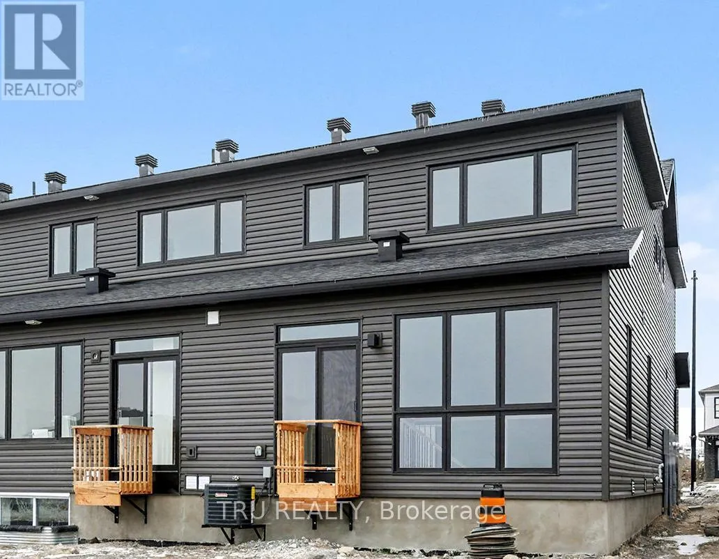 Cross Streets: Fernbank Road & Cope Drive. ** Directions: Stittsville Main Street to Fernbank Road. Fernbank Road to Cope Drive. Discover the Thomas - a stunning End Unit townhome by Valecraft Homes, located in the highly sought-after Shea Village community in Stittsville. This beautifully designed home blends modern finishes with exceptional functionality, perfect for families, professionals, and anyone seeking stylish, turnkey living. Step inside to an inviting open-concept layout featuring rich hardwood floors throughout the main level and a hardwood staircase leading to the second floor. The bright white kitchen is a true showpiece - offering an abundance of cabinetry, high-quality finishes, and an impressive 10-foot island ideal for cooking, hosting, and gathering. Upstairs, you'll find generously sized bedrooms, including a spacious primary suite complete with a luxurious 4-piece ensuite featuring both a relaxing soaker tub and a walk-in glass shower. The lower level adds even more value with a fully finished rec room, perfect for a home theatre, gym, playroom, or office. Located in one of Stittsville's most vibrant new communities, the Thomas End Unit offers modern comfort, thoughtful design, and outstanding craftsmanship - all in a family-friendly neighbourhood close to parks, schools, transit, and everyday conveniences. The perfect blend of style, space, and quality - welcome home. (id:27476)