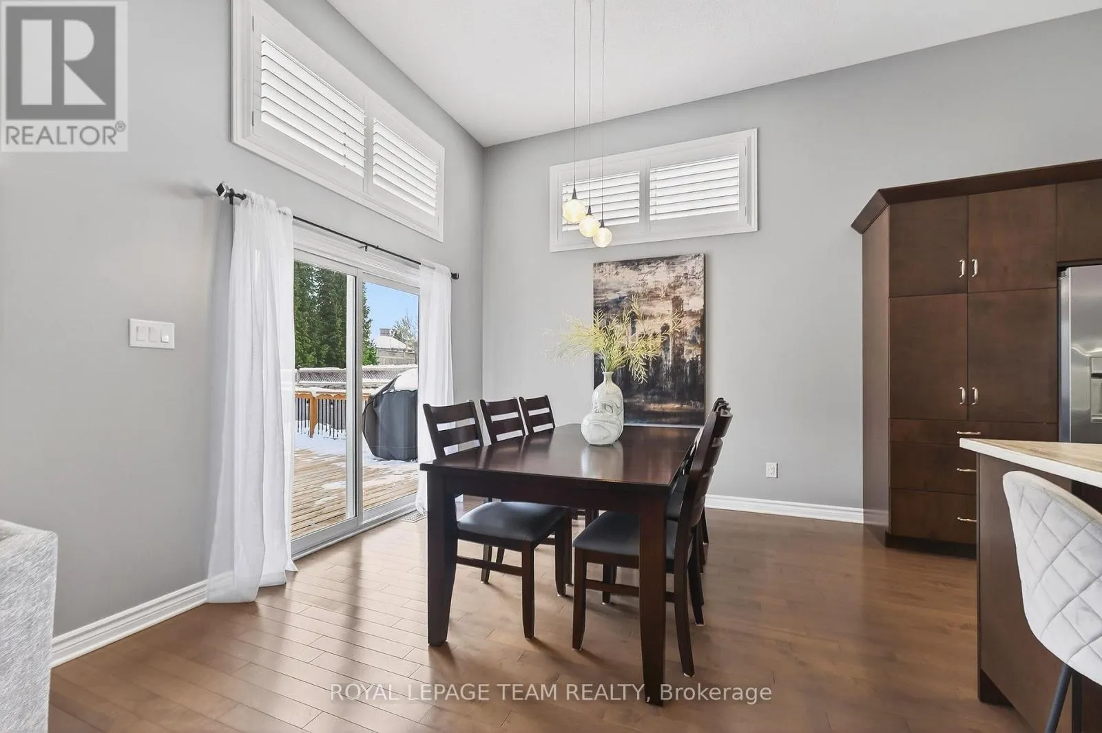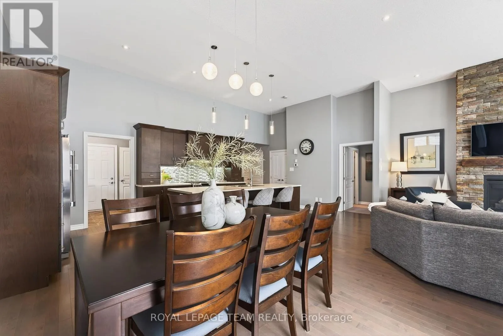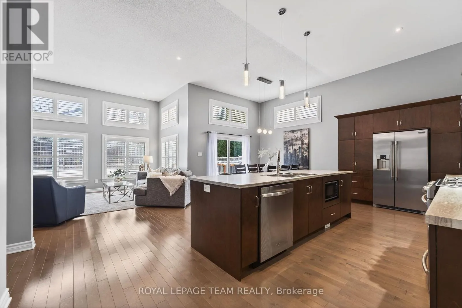 Cross Streets: West Ridge and Rockson. ** Directions: West Ridge Dr. in Stittsville, Turn (west) onto Rockson Crescent. Welcome to 834 Rockson Crescent - a highly sought-after custom-built Metric home offering 3+1 bedrooms and 3 full bathrooms, thoughtfully designed for both comfort and style. From the moment you enter, you're greeted by a bright and inviting foyer with tiled flooring that transitions seamlessly into rich hardwood throughout the main living space. Soaring 12-foot cathedral ceilings create an airy, open atmosphere that enhances the home's natural light and architectural presence. The open-concept kitchen and living area is beautifully appointed with elegant window shutters, a striking natural gas stone fireplace, and a functional island with abundant counter space. A rare oversized walk-in pantry provides exceptional storage and everyday convenience. The main level also features convenient laundry, inside access to the garage, neutral tones throughout, two linen closets, and three generously sized bedrooms. The serene primary retreat offers 9-foot ceilings, a walk-in closet, and a spa-inspired ensuite complete with double sinks, a spacious walk-in shower, and slate-colored ceramic flooring. Upgrades include 33" doors for mobility (with exception of 2 front bedrooms). Enhanced soundproof insulation in select main-floor walls and the lower level adds an extra layer of comfort and privacy. The finished lower level, complete with Berber carpeting, includes a fourth bedroom with a generous closet, a full 3-piece bathroom, and a large recreation room ideal for a home gym, media space, or flexible family living. Lower level has rough-in for wet bar or kitchenette. Step outside to an expansive back deck perfect for summer entertaining, along with a functional patio area and fully fenced backyard for added privacy. This property offers a seamless blend of functionality, warmth, and timeless appeal in a desirable neighborhood of Stittsville on a private crescent. (id:27476)