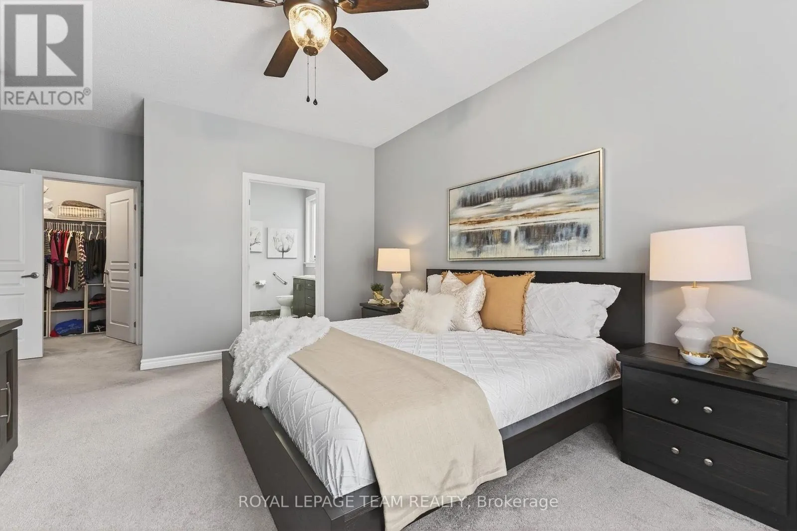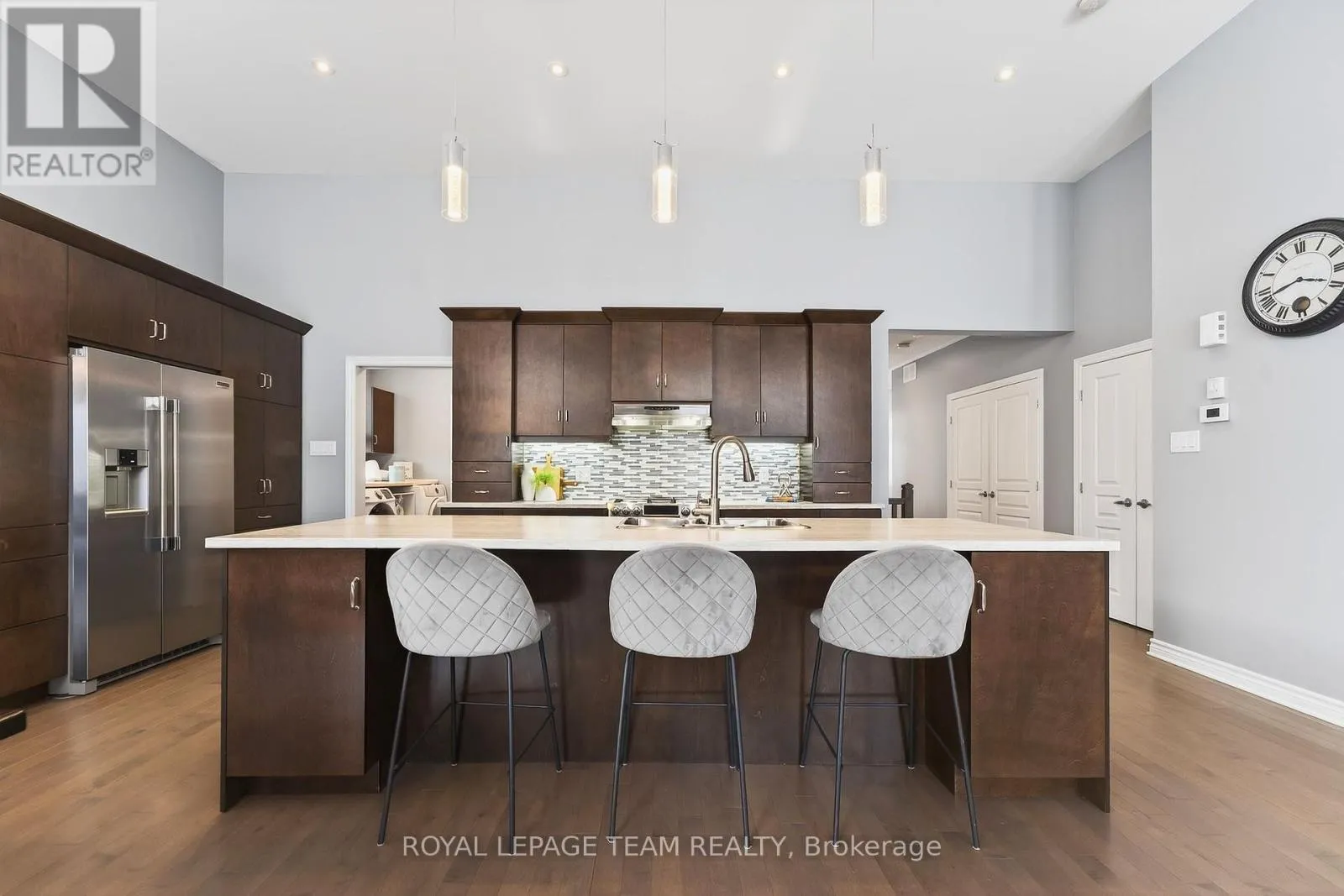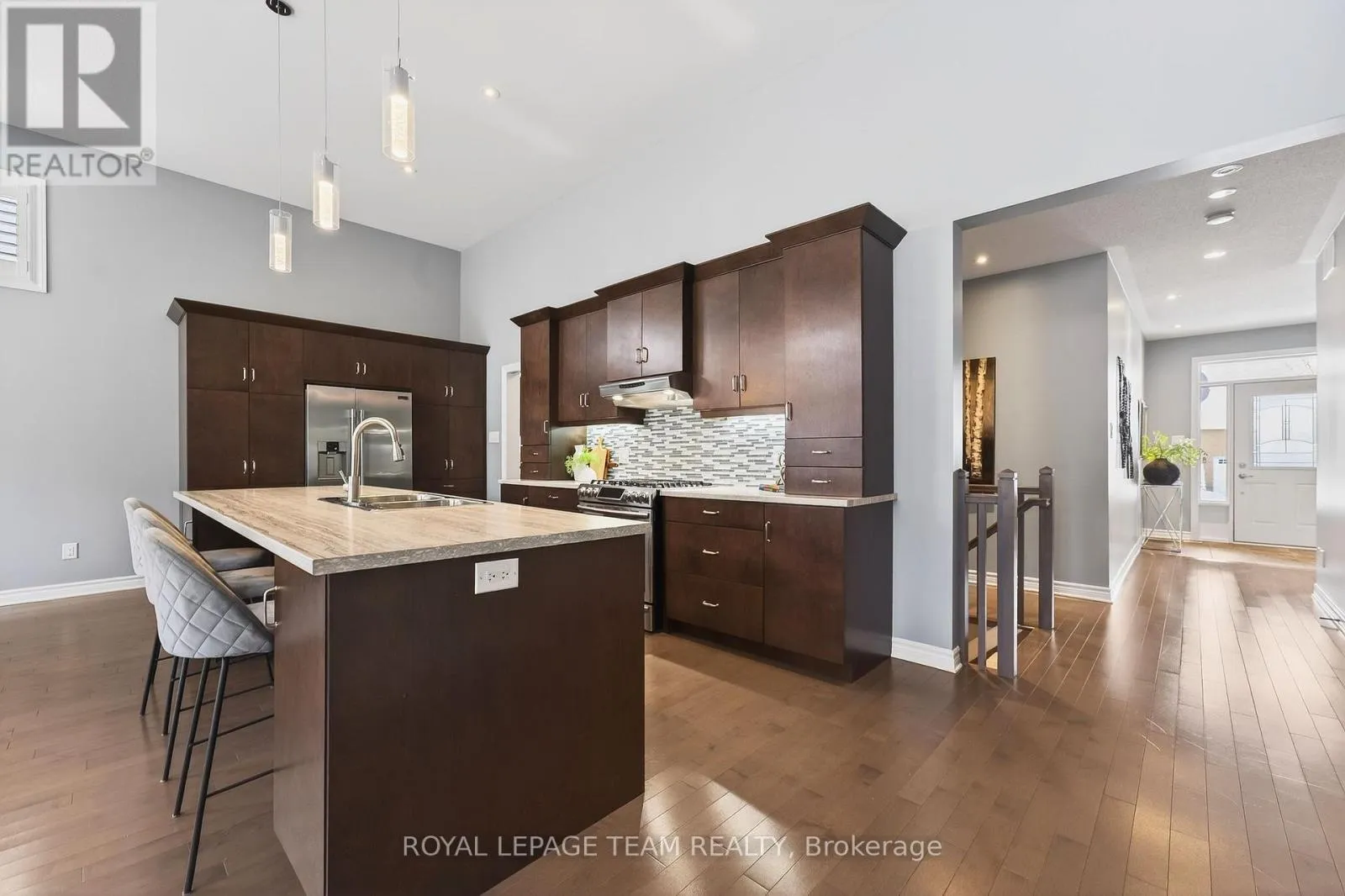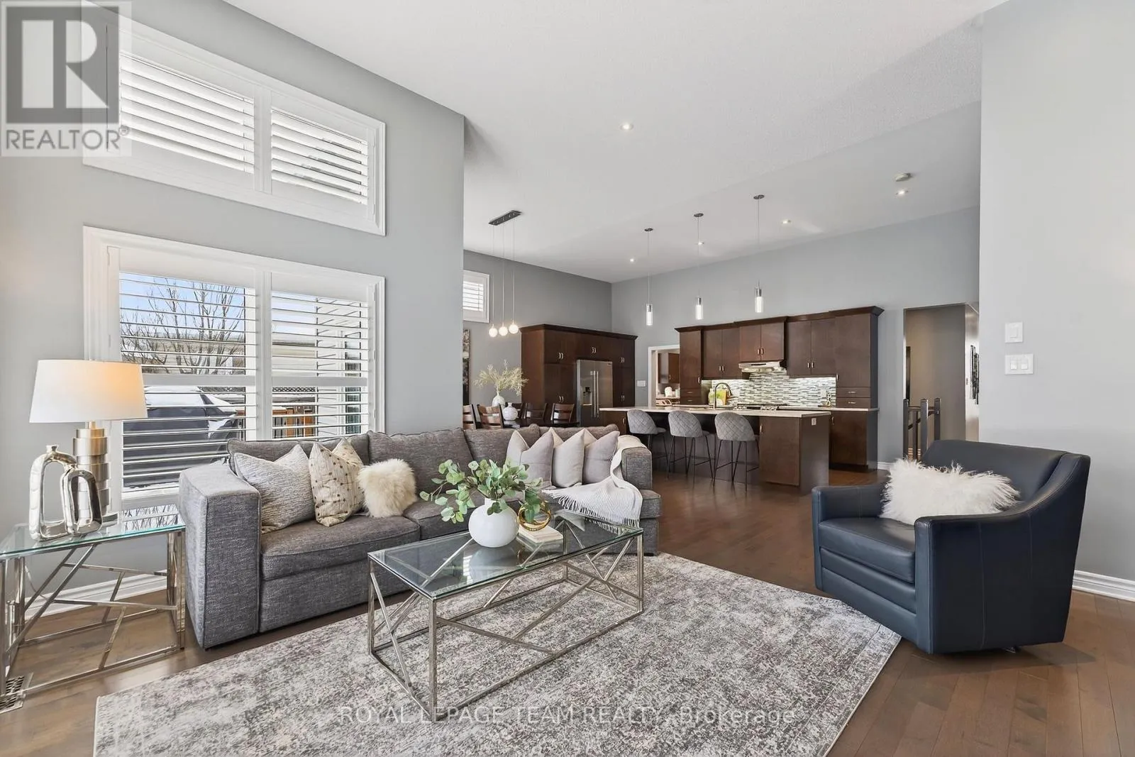 Cross Streets: West Ridge and Rockson. ** Directions: West Ridge Dr. in Stittsville, Turn (west) onto Rockson Crescent. Welcome to 834 Rockson Crescent - a highly sought-after custom-built Metric home offering 3+1 bedrooms and 3 full bathrooms, thoughtfully designed for both comfort and style. From the moment you enter, you're greeted by a bright and inviting foyer with tiled flooring that transitions seamlessly into rich hardwood throughout the main living space. Soaring 12-foot cathedral ceilings create an airy, open atmosphere that enhances the home's natural light and architectural presence. The open-concept kitchen and living area is beautifully appointed with elegant window shutters, a striking natural gas stone fireplace, and a functional island with abundant counter space. A rare oversized walk-in pantry provides exceptional storage and everyday convenience. The main level also features convenient laundry, inside access to the garage, neutral tones throughout, two linen closets, and three generously sized bedrooms. The serene primary retreat offers 9-foot ceilings, a walk-in closet, and a spa-inspired ensuite complete with double sinks, a spacious walk-in shower, and slate-colored ceramic flooring. Upgrades include 33" doors for mobility (with exception of 2 front bedrooms). Enhanced soundproof insulation in select main-floor walls and the lower level adds an extra layer of comfort and privacy. The finished lower level, complete with Berber carpeting, includes a fourth bedroom with a generous closet, a full 3-piece bathroom, and a large recreation room ideal for a home gym, media space, or flexible family living. Lower level has rough-in for wet bar or kitchenette. Step outside to an expansive back deck perfect for summer entertaining, along with a functional patio area and fully fenced backyard for added privacy. This property offers a seamless blend of functionality, warmth, and timeless appeal in a desirable neighborhood of Stittsville on a private crescent. (id:27476)