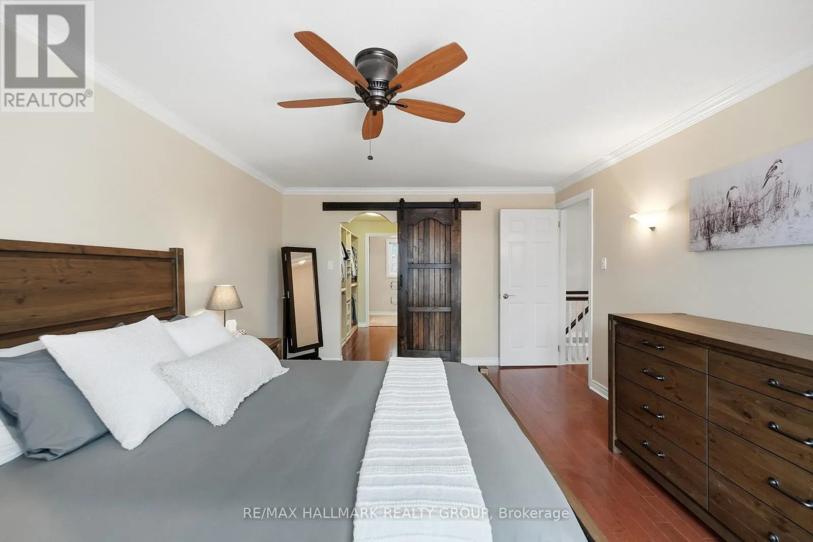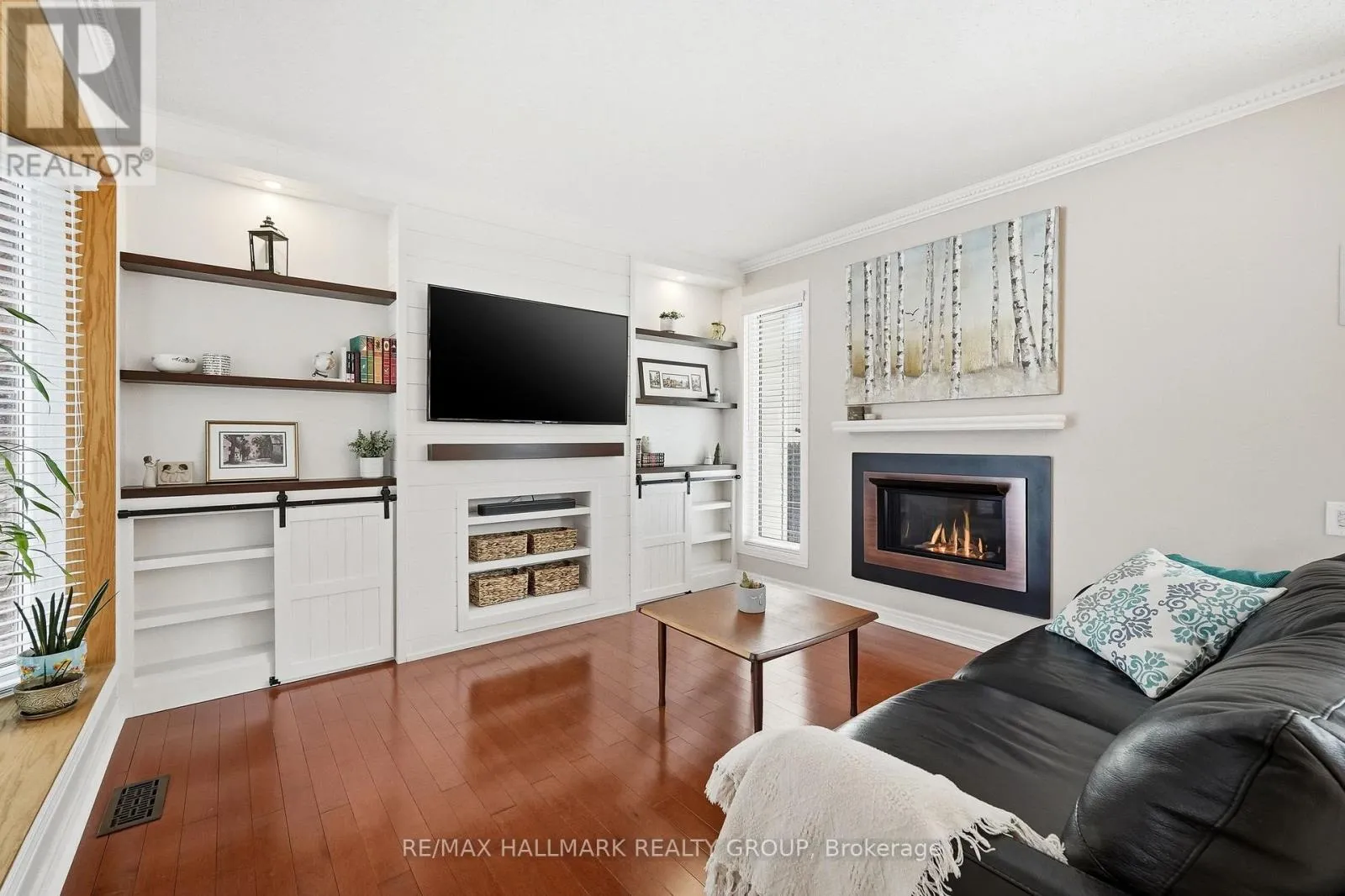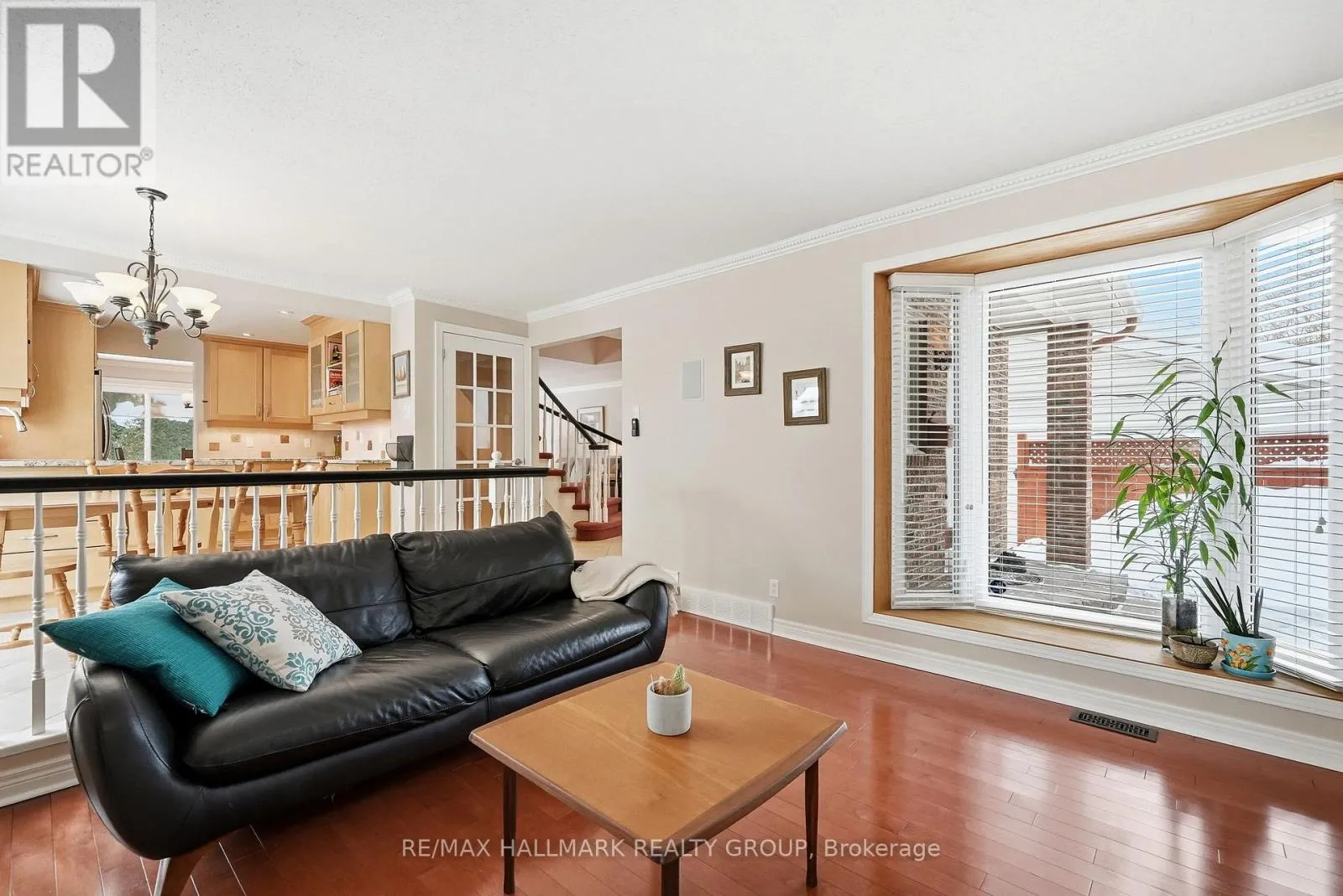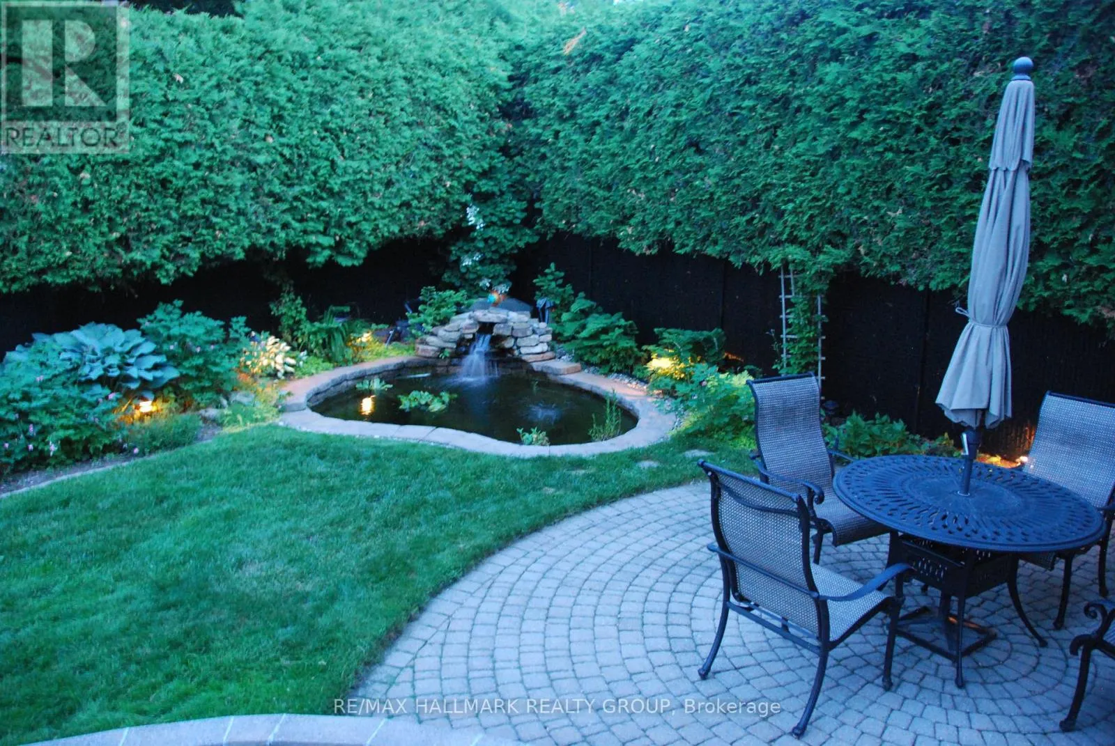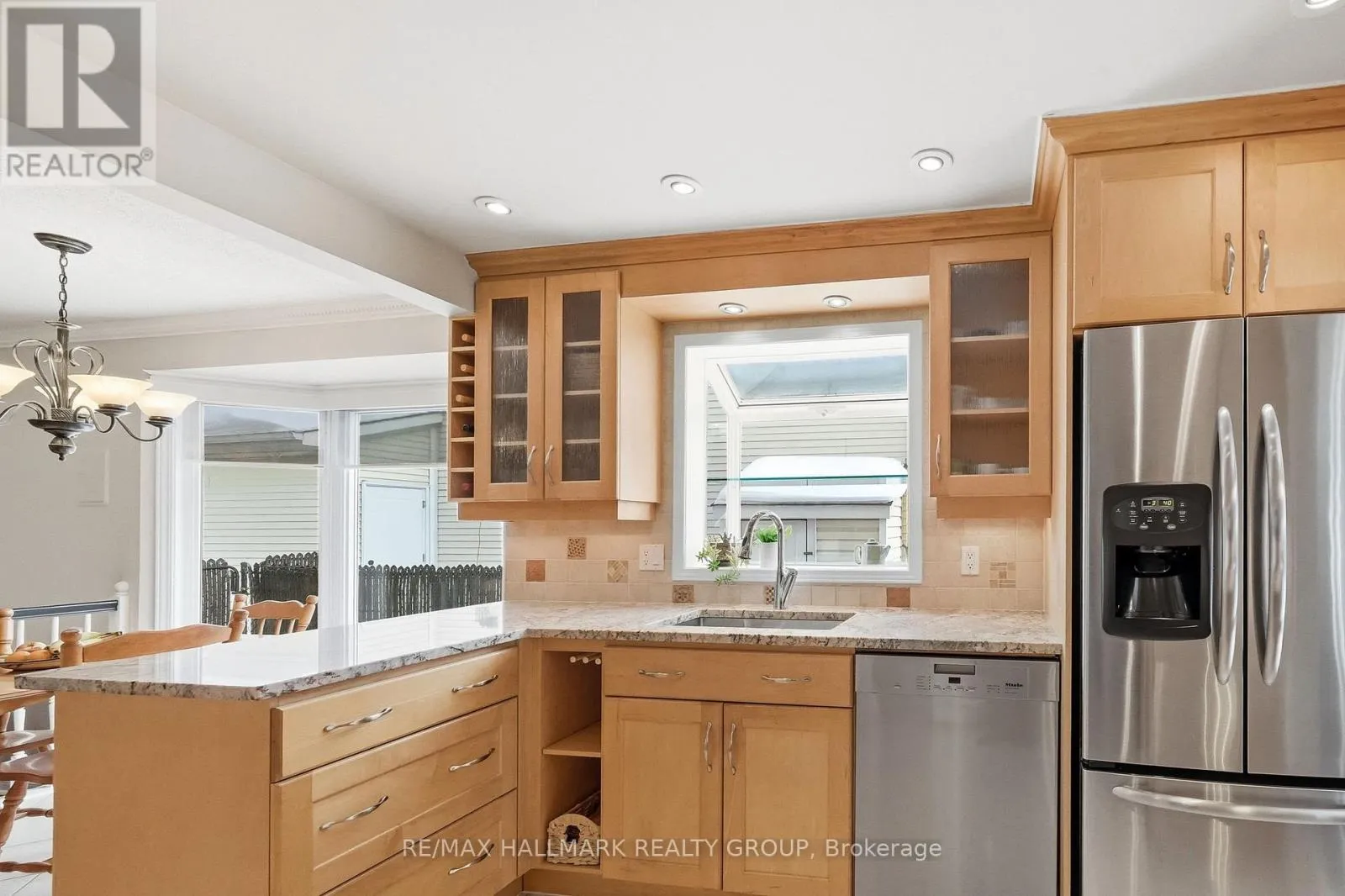 Cross Streets: Forest Valley Drive and Meadowglen Drive. ** Directions: Orleans Blvd, North on Forest Valley Drive, West on Meadowglen Drive, North on Meadowhill Crescent. Welcome to this beautifully maintained 3 bedroom single family home in the heart of Chapel Hill, Orleans. Featuring a double garage and maple hardwood throughout the main and second levels, this home offers warmth, space, and timeless appeal. The main floor is filled with natural light and enhanced by crown moulding throughout. The inviting living and dining areas are ideal for entertaining, with patio door access to the backyard. The kitchen features maple cabinetry, stainless steel appliances, pot lights, generous counter space, built-in wine storage, pots and pans drawers, and an undermount sink beneath a window overlooking the yard. A bright eating area with bay window flows into the sunken family room, complete with a gas fireplace, built-in shelving, and a second bay window with ledge detail. Upstairs, hardwood continues through three bedrooms, including a spacious primary retreat with walk-in closet leading to a 3pc ensuite with glass shower, built-in vanity, and heated towel rack & flooring. The finished lower level offers laminate flooring and flexible space for a rec room, gym, or play area, plus a 2pc bath and large laundry/utility room with storage. Outside, the fully fenced backyard is a private oasis with mature hedges, stone patio, storage shed, and a stunning curved stone pond with cascading waterfall, surrounded by lush perennial gardens and layered greenery - your own tranquil escape! Ideally located near public transit, parks, schools, and the Ottawa Public Library, and just minutes from Highway 417 access and the Bob MacQuarrie Recreation Complex, this home offers exceptional everyday convenience. (id:27476)