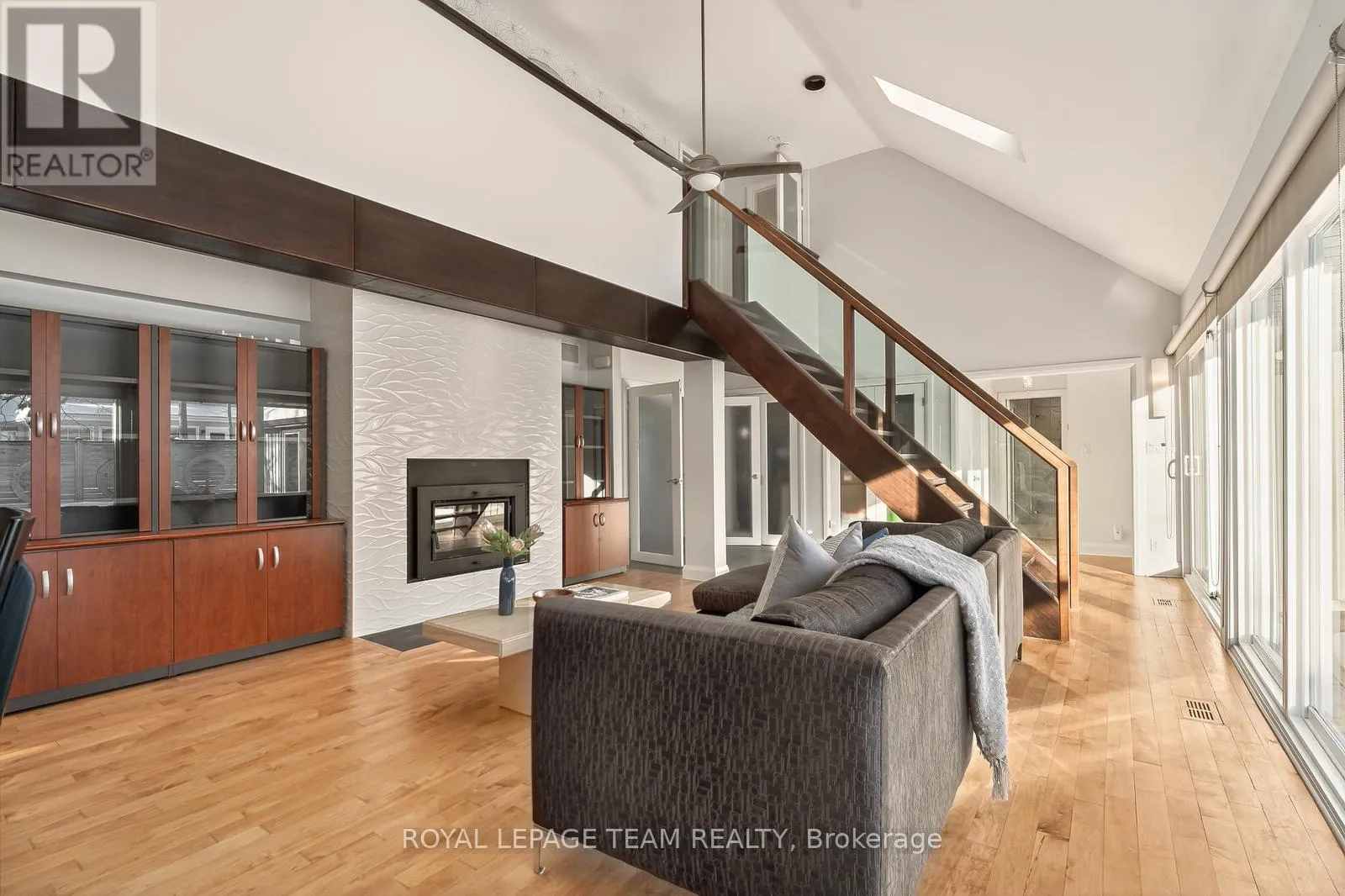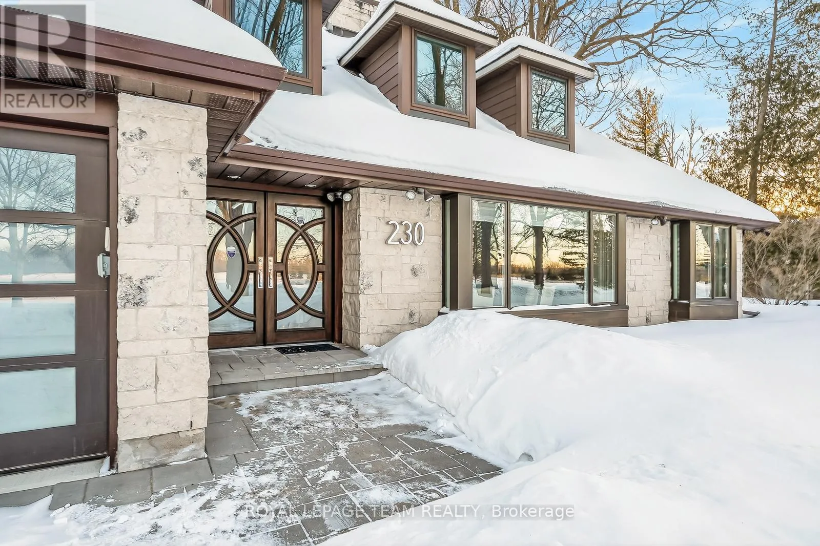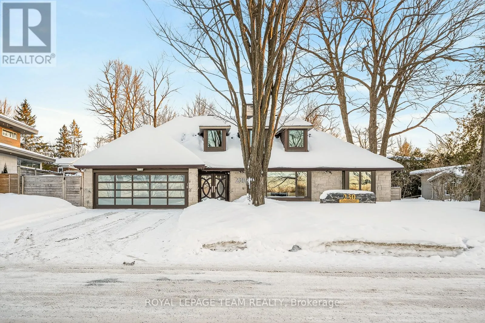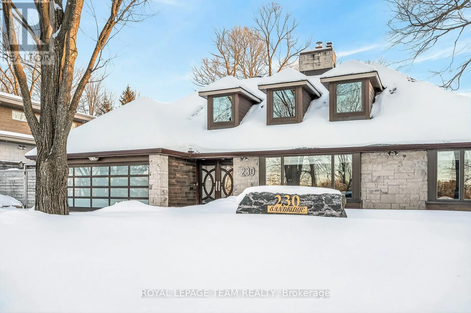 Cross Streets: Birch Road and Sandridge Road. ** Directions: Hemlock Road to Birch Road to Sandridge Road. Live along one of Ottawa's most beautiful drives - the Sir George-Ãtienne Cartier Parkway, where river views meet tree-lined skies. Designed by Hall of Fame architect Samuel Gitterman, this mid-century residence blends architectural heritage with refined modern design. Sculptural double doors open to luminous, flowing interiors: an expansive living and dining framed by new rectangular Pella windows; a vaulted family room with roaring fireplace; a chef's kitchen with quartz island and gas range. Three main-floor bedrooms open to the gardens, including a tranquil primary suite with a heartthrob ensuite. Upstairs, a fourth bedroom and generous open loft inspire easy versatility. The finished lower level adds a large recreation space, guest suite, bath. Throughout: statement lighting, impeccable design, luxury surfaces. Outside, textured white stonework, custom fencing, manicured gardens, and a generator complete the picture. Located in illustrious Rockcliffe Park, 230 Sandridge Road offers light, beauty, and serenity along the river. (id:27476)