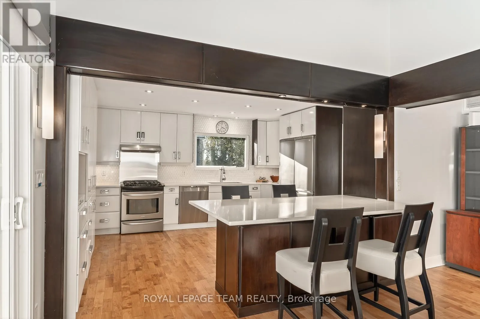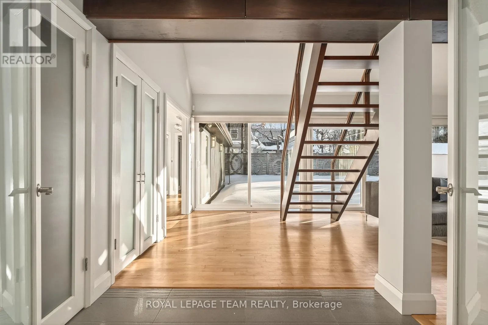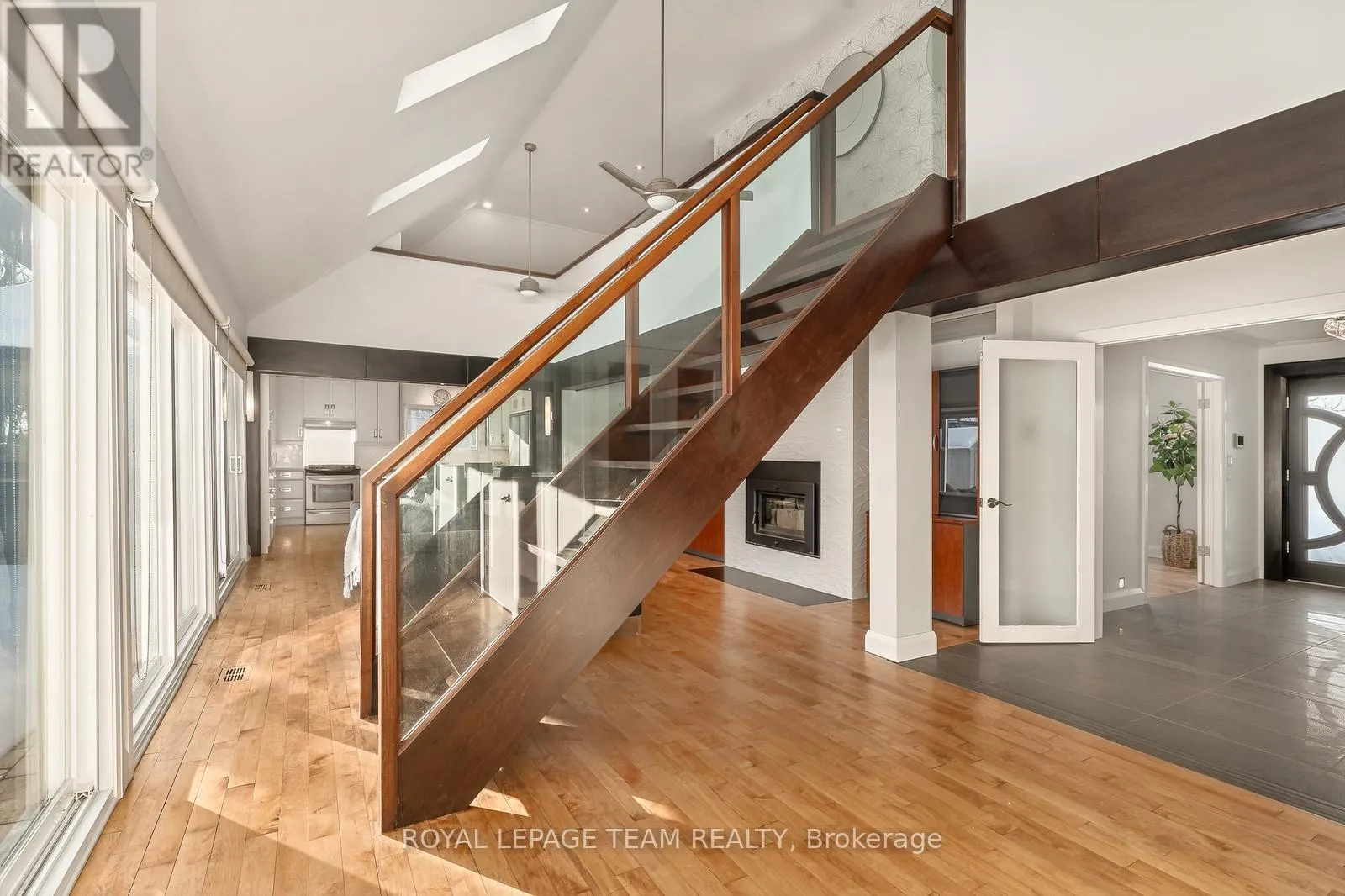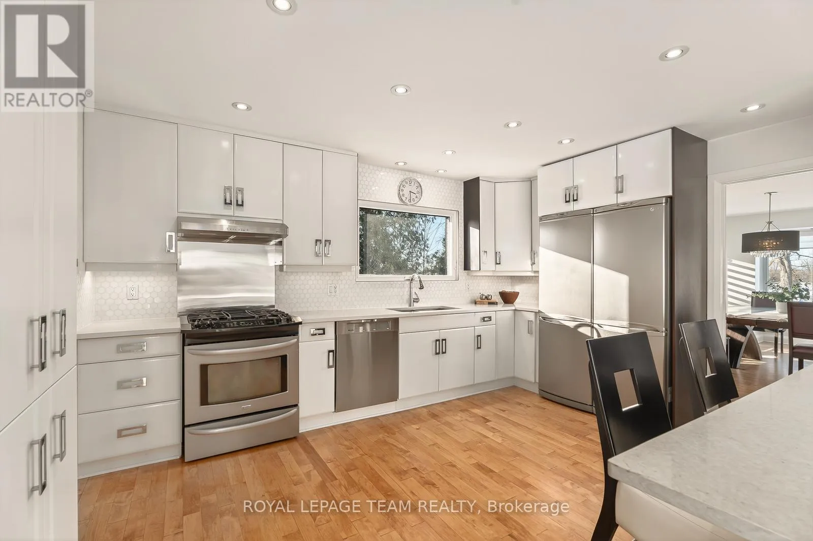 Cross Streets: Birch Road and Sandridge Road. ** Directions: Hemlock Road to Birch Road to Sandridge Road. Live along one of Ottawa's most beautiful drives - the Sir George-Ãtienne Cartier Parkway, where river views meet tree-lined skies. Designed by Hall of Fame architect Samuel Gitterman, this mid-century residence blends architectural heritage with refined modern design. Sculptural double doors open to luminous, flowing interiors: an expansive living and dining framed by new rectangular Pella windows; a vaulted family room with roaring fireplace; a chef's kitchen with quartz island and gas range. Three main-floor bedrooms open to the gardens, including a tranquil primary suite with a heartthrob ensuite. Upstairs, a fourth bedroom and generous open loft inspire easy versatility. The finished lower level adds a large recreation space, guest suite, bath. Throughout: statement lighting, impeccable design, luxury surfaces. Outside, textured white stonework, custom fencing, manicured gardens, and a generator complete the picture. Located in illustrious Rockcliffe Park, 230 Sandridge Road offers light, beauty, and serenity along the river. (id:27476)