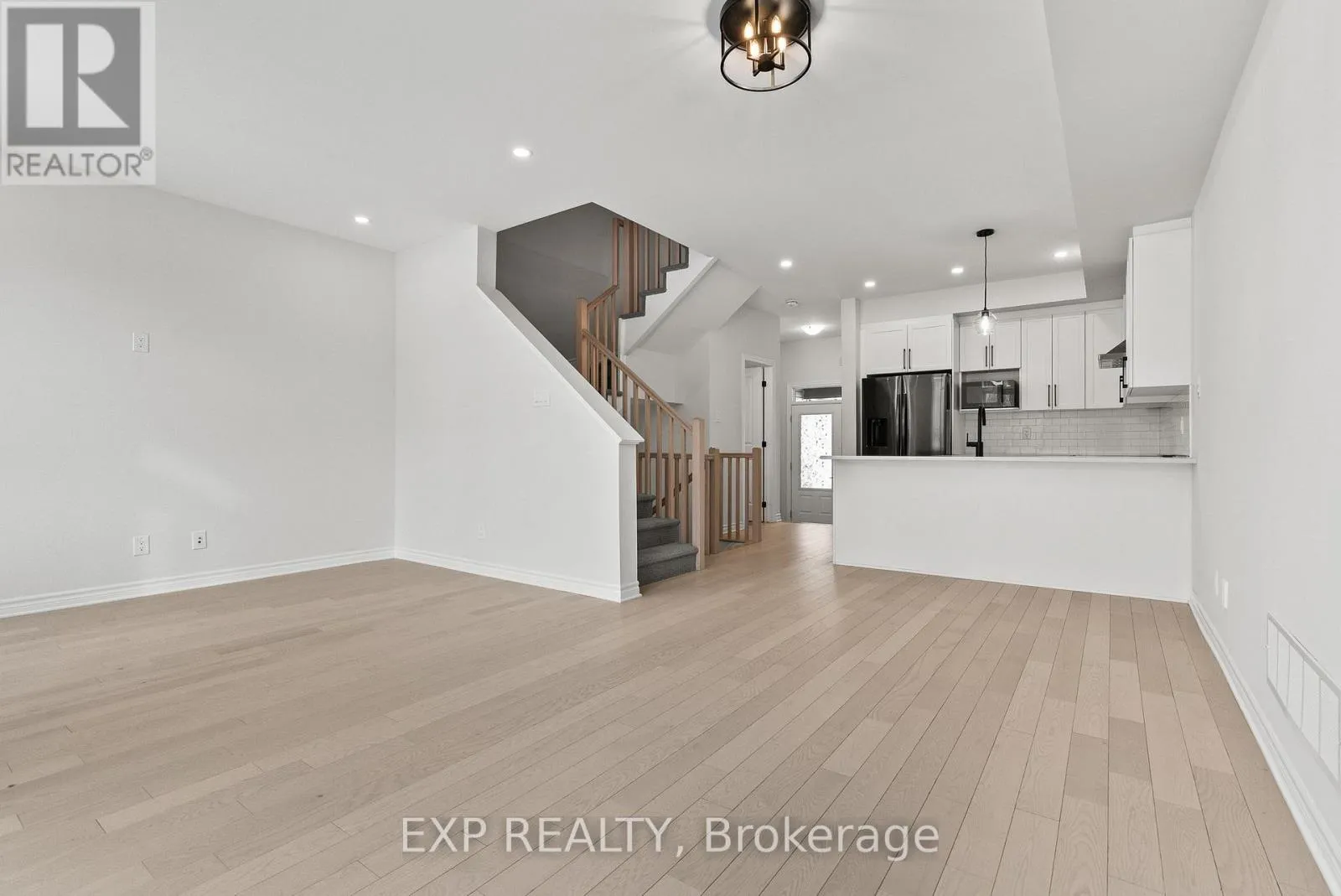 Cross Streets: Kelly farm and Miikana. ** Directions: Kelly Farm to Miikana Rd. Experience one of the most desirable and fastest growing communities in Ottawa at 725 Miikana Road. Situated in the heart of Findlay Creek, this stunning 3 bedroom 2.5 bathroom townhouse is loaded from top to bottom in upgrades and holds beautiful scenery through the large backyard. Inside you will find upgraded appliances, hardwood throughout the main floor, quartz counter tops in the kitchen and bathrooms, finished basement with bathroom roughed in, generous sized master bedroom, and a clean elegant modern look throughout. Centrally located in Findlay Creek and close to brand new public and catholic schools, new parks, walking trails, grocery stores, and banks. HURRY! For less than 600k this wont last!! (id:27476)