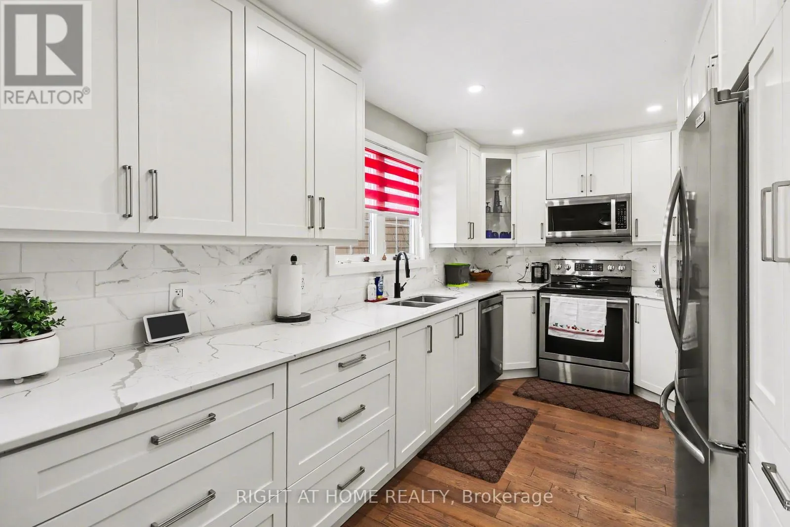Innes Rd. (East), left on Old Innes Rd, Left on Bearbrook Rd, Left on Westpark - or Montreal Rd. (East), right on Bearbrook Rd, Right on Westpark A truly exceptional family home, professionally renovated inside and out - new electrical, plumbing, roof, windows and more - just like new. Offering timeless design, thoughtful upgrades, and a backyard oasis rarely found in the city. From the moment you arrive, this home impresses with its manicured landscaping and inviting curb appeal. Inside, you'll find a bright and functional layout designed for everyday living and effortless entertaining. The heart of the home is the stunning eat-in kitchen, featuring white shaker-style cabinetry, quartz countertops, and an open-concept flow to the family room-perfect for busy mornings, relaxed evenings, and hosting friends and family. Hardwood and tile flooring run throughout, complemented by a large foyer, spacious living and dining rooms, and abundant natural light. Upstairs, three well-proportioned bedrooms provide comfortable private spaces for the entire family. The home offers three fully renovated bathrooms-no detail overlooked. Set on an oversized pie-shaped lot, the backyard is a true showstopper. Designed for both relaxation and entertaining, it features a beautiful inground pool, tiered decks, and complete privacy with fencing and mature hedges. This backyard oasis is a place where summer memories are made and long evenings are enjoyed. Additional highlights include an attached single-car garage, excellent storage, & a layout that provides space, comfort, and style. Located in Blackburn Hamlet-closer to downtown than almost all newer suburbs, yet offering village-like charm that is increasingly rare. Amenities within a 10-minute walk, including grocery stores, medical and dental offices, pharmacies, restaurants, a local pub, banks, schools and more. This is more than just a house-it's a place to grow, gather, and create lasting memories. A rare opportunity to own a turn-key, beautifully renovated home with a private backyard retreat in one of Ottawa's most established and connected neighbourhoods. WELCOME HOME. (id:27476)