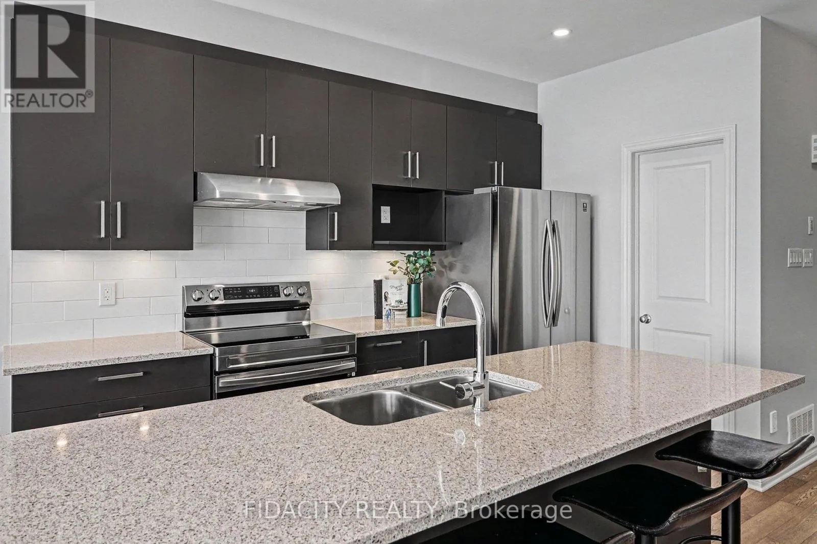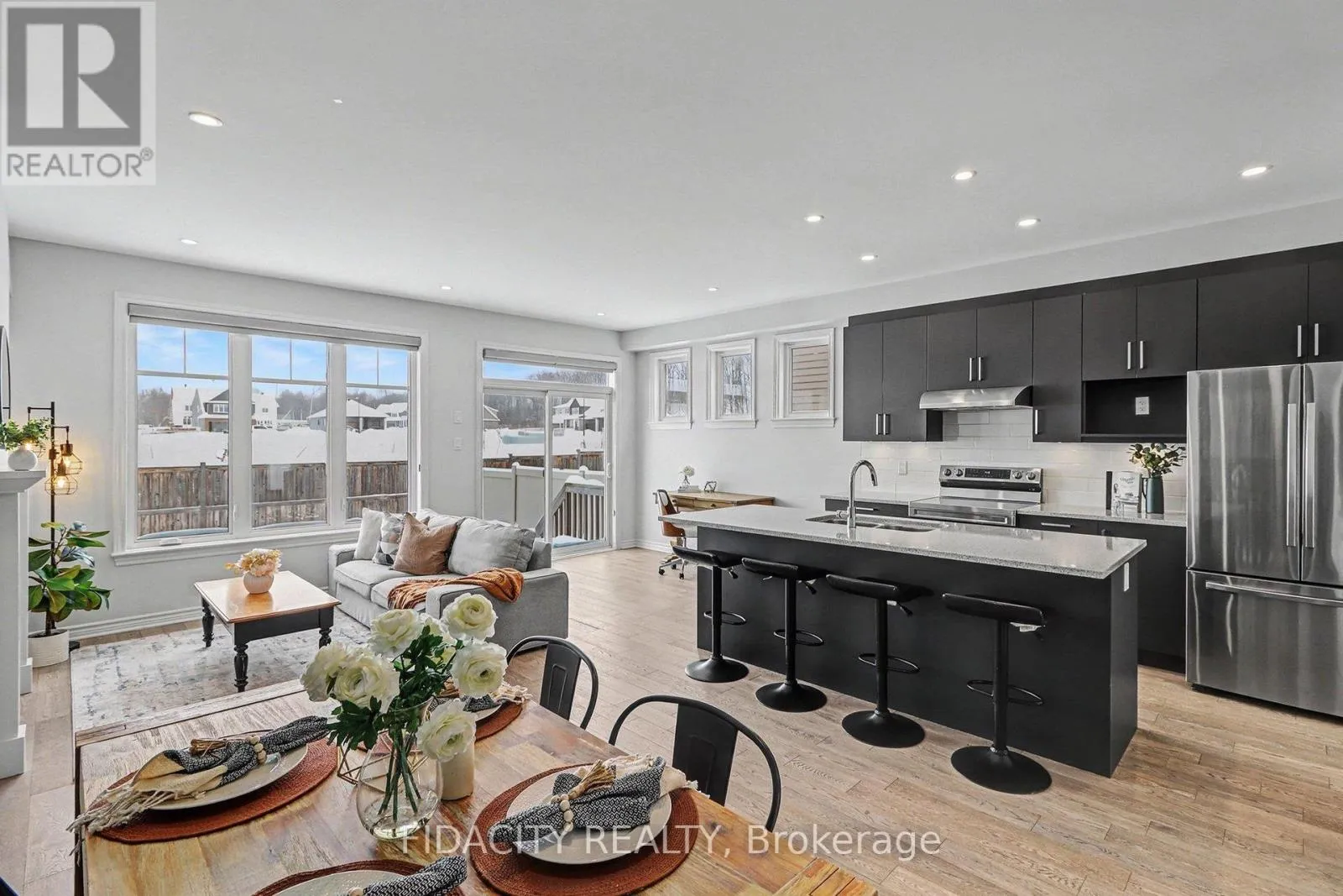 Cross Streets: Old Montreal Rd. ** Directions: East on Montreal Rd, left on Cardinal Creek, right on Famille Laporte, left onto Antonio Farley. This end-unit freehold townhome (Hudson model 2,165 sq ft) offers a bright, open layout with modern flooring throughout the main level and extra windows that fill the home with natural light. The open-concept main floor is anchored by a modern kitchen featuring quartz countertops, island with seating, stainless steel appliances, ample cabinetry, and a pantry, flowing seamlessly into the living and dining areas. A gas fireplace adds warmth and definition to the space, while custom blinds are installed throughout.The upper level includes 3 spacious bedrooms, including a well-appointed primary suite with a walk-in closet, 2 additional storage closets, a sitting area, and a large ensuite complete with a soaker tub and separate shower. Convenient second-floor laundry and main bathroom complete the upper level.The finished basement provides flexible additional living space ideal for a family room, home office, or gym, along with a large dedicated storage room. The fully fenced backyard offers privacy and everyday functionality.Newly built and well maintained, this home is located directly across from a future school and a brand-new park in Cardinal Creek, a growing, family-friendly community known for its parks, trails, and convenient access to shopping, schools, and commuter routes. More features to note: $15,000 in builder upgrades to kitchen and bathrooms, oversized garage and premium oversized lot. (id:27476)