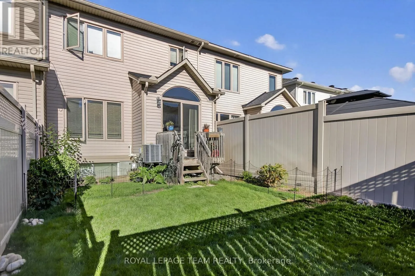 Cross Streets: Longfields Drive. ** Directions: Turn left onto Longfields Drive. Turn left onto Paul Metivier Drive, Garrity Crescent will be on your right. Welcome home to this beautifully maintained Minto-built Greenwich model townhome offering 1,818 sq ft of well-designed living space on a quiet, family-friendly crescent. This 3-bedroom, 2.5-bathroom home features upgraded hardwood flooring and railings on the main level, along with upgraded ceramic tile in the entryway, kitchen, and all bathrooms for added style and durability. Enjoy a large formal living room and a separate dining area perfect for entertaining. The gallery-style kitchen includes stainless steel appliances, ample counter and cupboard space, and a bright eating area with access to the fully fenced backyard-ideal for relaxation or outdoor gatherings. Upstairs, the spacious primary bedroom boasts a walk-in closet and a 4-piece ensuite with a soaker tub and separate shower, complemented by two additional generously sized bedrooms, a 4-piece main family bathroom, and a linen closet. The finished lower level offers a large recreation room with an oversized window, a laundry room, and plenty of storage in the unfinished area-perfect for a playroom, office, or home gym. Additional features include a single-car garage with inside entry and parking for two more vehicles in the shared driveway. Located minutes from top-rated schools, Barrhaven Marketplace, Costco, Chapman Mills, public transit, parks, trails, and the Walter Baker Recreation Complex, this move-in-ready home combines comfort, convenience, and community. Please note: Photos have been virtually staged to showcase the potential of the space. (id:27476)
