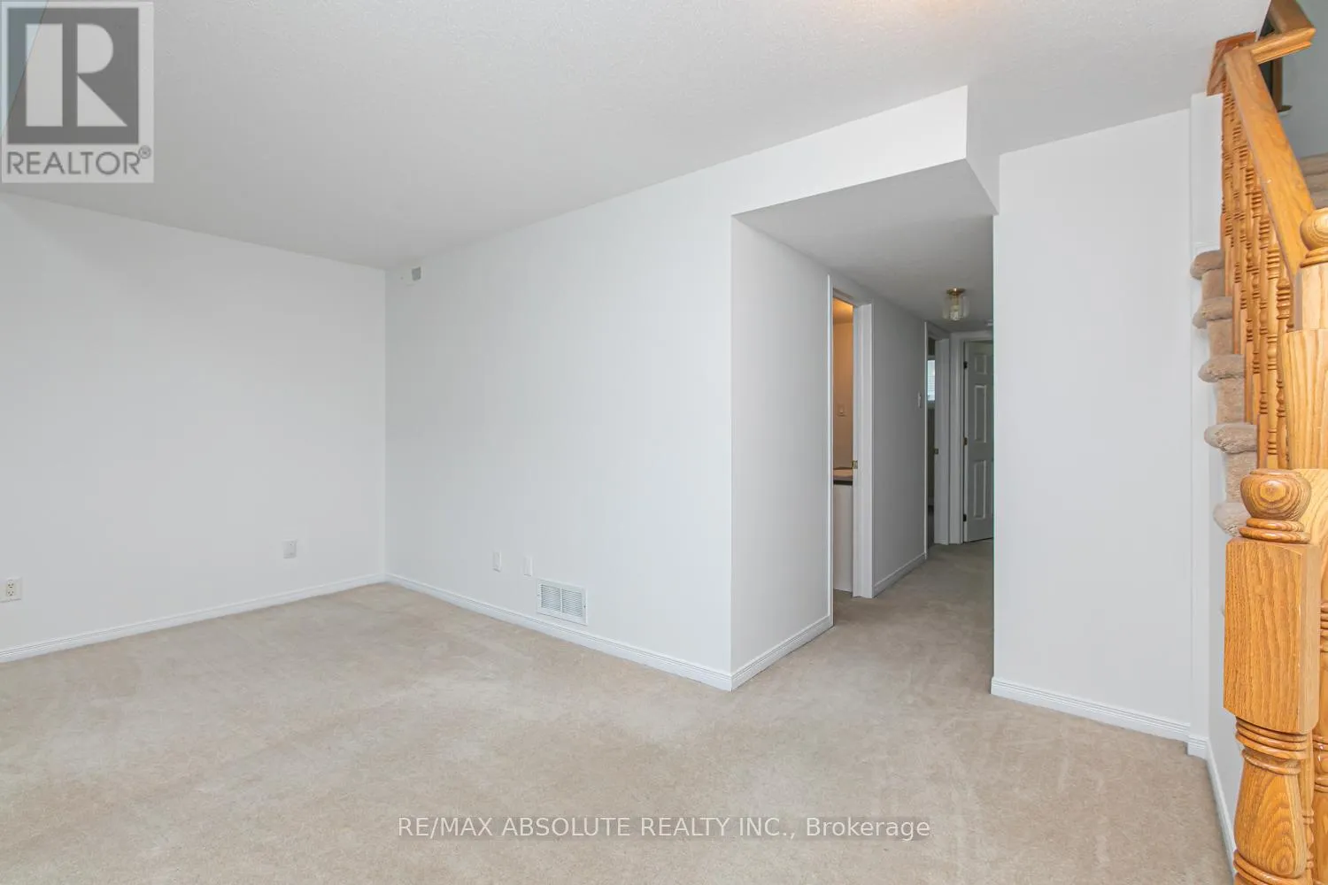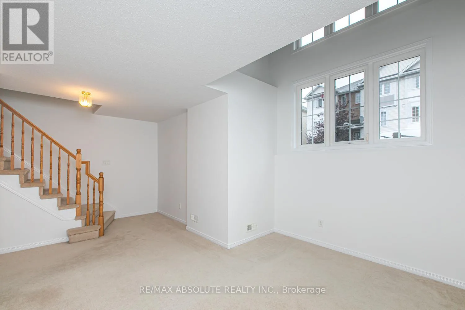 Cross Streets: Wiffen & Wharhol. ** Directions: Moodie to Tyrrell Pl to Wharhol Pvt to Gershwin Pvt. Welcome to this charming terrace home in the sought-after Westcliffe Estates, where modern comfort meets timeless style. The bright eat-in kitchen offers ample counter space and a convenient breakfast bar, perfect for casual meals or morning coffee. The open-concept living and dining area provides an inviting setting for entertaining or relaxing at home. The main floor also features a powder room and in-unit laundry for added convenience.The lower level boasts two generously sized bedrooms, a versatile den ideal for a home office, family room or guest space, and a full bathroom. Complete with a dedicated parking space for secure and easy access, this beautiful terrace home is one you won't want to miss. (id:27476)