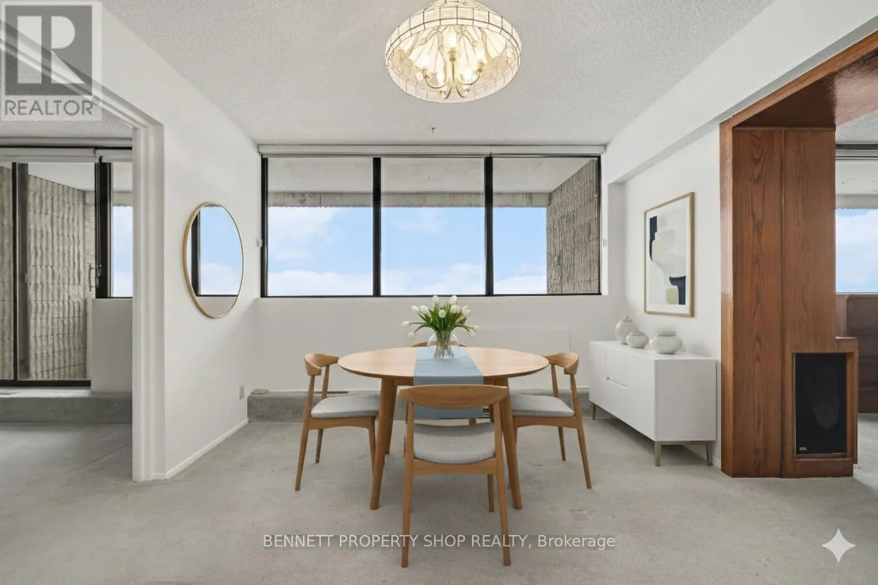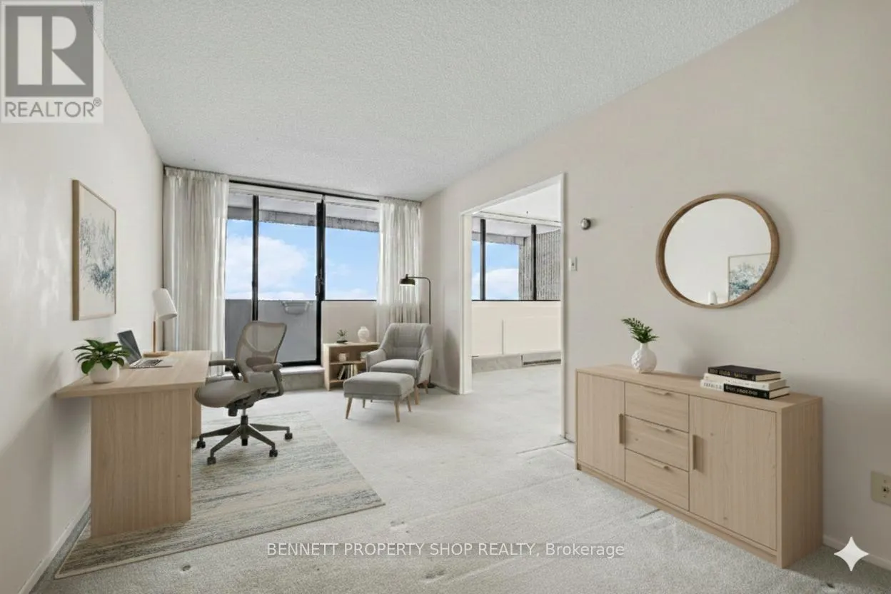 Cross Streets: Bank. ** Directions: Bank St to Cahill Dr. Expansive 1376 Sq Ft. Penthouse Unit in Strathmore Towers with sunny south-facing panoramic views from 3 covered Balconies! Welcome to all-inclusive resort living at Strathmore Towers - a wonderful condo community offering convenience, comfort and an unbeatable location. Live Large in this 2-bed, plus Den/office (which could easily be converted to a 3rd bedroom) 2 Full bath unit with 2 Parking Spaces. The Large welcoming tiled foyer invites you in and draws your eye to a spacious living - dining area with built-in wall cabinetry, and wall-to-wall windows leading to 1 of 3 unparalled outdoor covered balcony spaces. Sip a morning coffee or enjoy a cocktail to end the day. The generously sized kitchen boasts pantry, endless storage and features a separate insuite Laundry room with a generous storage area. The oversized primary bedroom offers a private balcony and an ensuite with generous closet space. Two parkade-covered parking spaces with inside entry and a storage locker are included. This is an unbeatable location. Walk to South Keys amenities (South Keys LRT Station, groceries, banking, cinemas, shopping, restaurants). Just a short drive or LRT Ride directly to the airportand a Quick LRT ride downtown or to Carleton University and Ottawa U. Superb amenities include an outdoor heated Pool, Sauna, Party Room, workshop, guest suites and Billiards Games room. Condo Fee includes: Amenities, Building Insurance, HEAT, HYDRO, WATER. There is no need to compromise on space. Come view this home and truly appreciate bright, spacious living. Main area freshly painted and New Luxury vinly flooring in the kitchen 2025. Parkay flooring under carpeted areas. Some photos are digitally enhanced. 24 hours irrevocable on all offers. (id:27476)