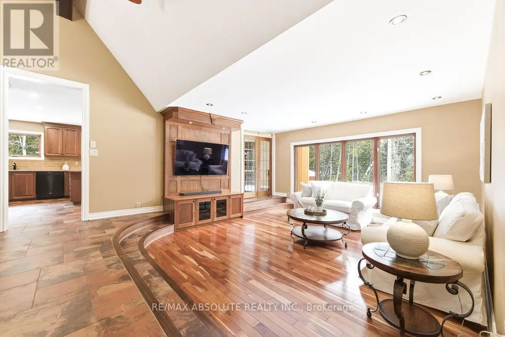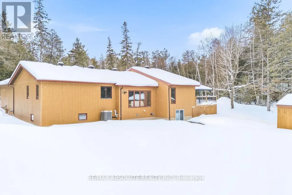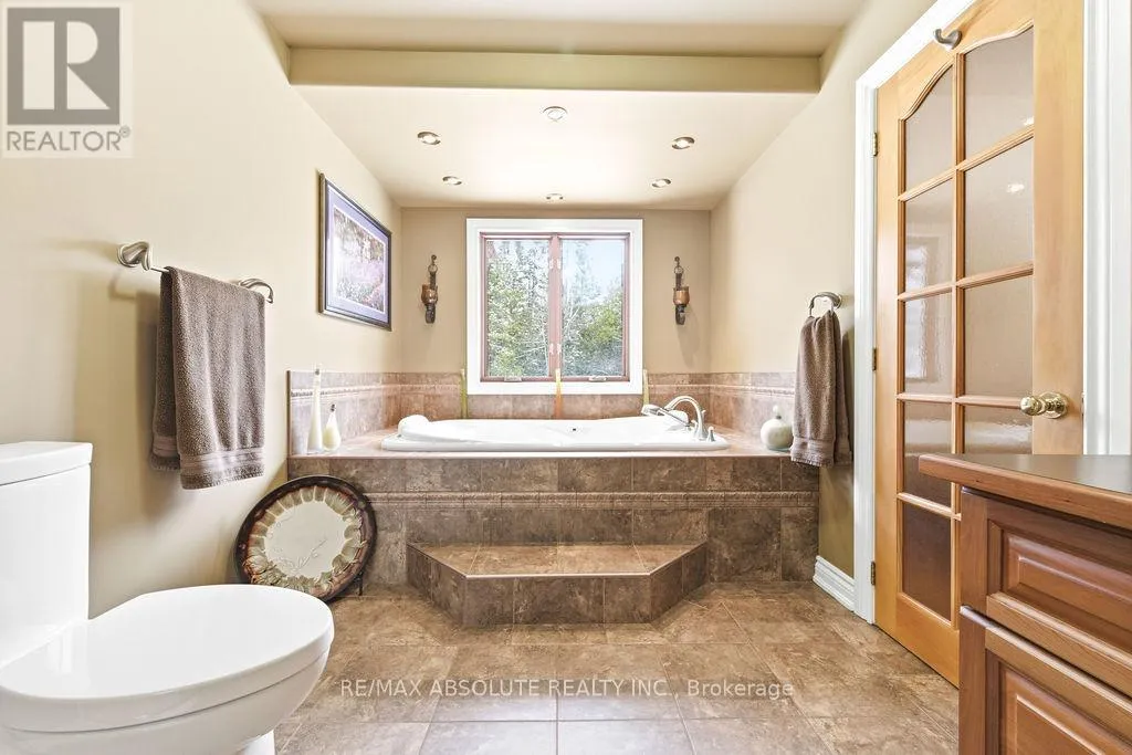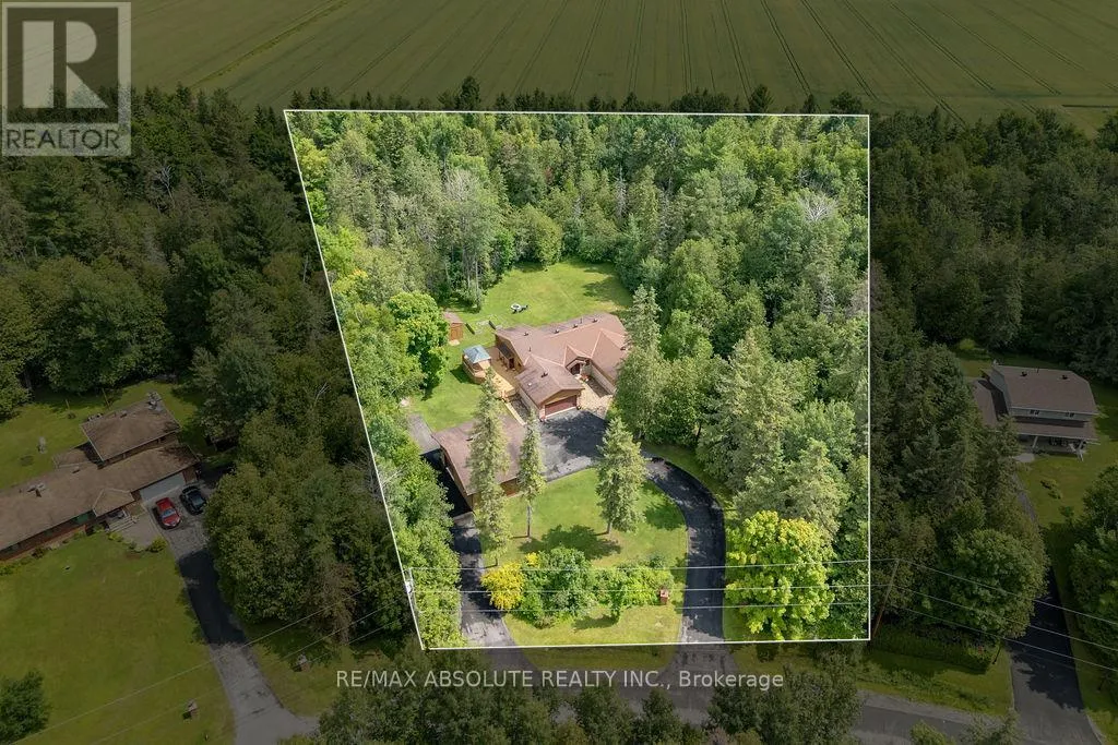 Cross Streets: Hwy 417 to Panmure Road. ** Directions: Hwy 417, exit Panmure Rd, Panmure to Left on Deerwood. Welcome to 206 Deerwood Drive an exceptional walkout bungalow set on 2.4 private acres in one of Kinburn's most sought-after family communities. Perfectly positioned to offer both tranquility and convenience, this stunning property is within 20 minutes or less to Kanata, Arnprior, Fitzroy Provincial Park, and the Carp Farmers' Market. The beautifully landscaped grounds create an impressive first impression, featuring a charming fire pit area, and expansive outdoor space designed for relaxation and entertaining. A wide interlock walkway complemented by a double attached garage and a detached triple-car workshop/garage complete with its own 100-amp electrical service, insulation, hydro, propane heater, and rough-in for radiant heat ideal for hobbyists, entrepreneurs, or car enthusiasts seeking a premium workspace.Inside, the oversized foyer opens to bright, elegant living spaces finished with rich cherry Jatoba hardwood and ceramic tile. The chef-inspired kitchen showcases solid cherry cabinetry, a full wall of storage, and flows seamlessly into the dining area with patio doors leading to a spacious deck with BBQ hookup perfect for effortless indoor-outdoor living. The serene primary retreat overlooks the private backyard and features a walk-in closet with custom organizer and a luxurious 4-piece ensuite with soaker tub and separate shower. Two additional main-floor bedrooms each offer walk-in closets, while a powder room and a well-appointed laundry room with sink and cabinetry add everyday functionality.The fully finished walkout lower level expands the living space with a large family room, office or den, two additional bedrooms, a 3-piece bath, and an expansive storage area - ideal for growing families or multi-generational living. Two paved driveways, curbside garbage pickup, mail delivery, and school bus service enhance the ease of country living, while the peaceful setting and welcoming community complete this exceptional offering just moments from Hwy 417 (id:27476)
