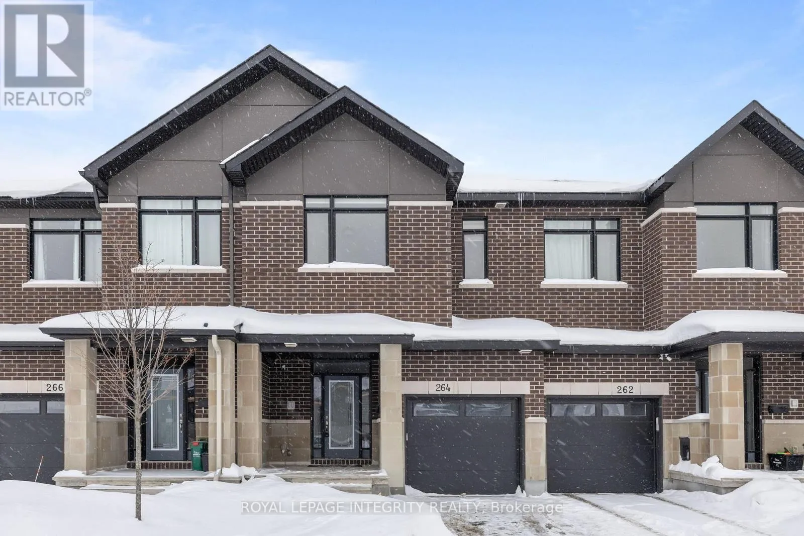 Cross Streets: Monticello & Mendoza. ** Directions: Eagleson to Romina to Monticello. Welcome to 264 Monticello, a beautifully maintained 2023-built Claridge Cypress model offering 1,985 sq. ft. of thoughtfully designed living space in the family-friendly community of Bridlewood Trails, Kanata. This 3-bedroom, 3-bathroom townhome with a fully finished basement delivers both style and functionality. The main level features a welcoming foyer and a bright, open-concept living and dining area-ideal for everyday living and entertaining. The modern kitchen showcases upgraded cabinetry, quartz countertops, stainless steel appliances, a centre island, and ample space for family meals and gatherings. Upstairs, the spacious primary suite offers a walk-in closet and a 4-piece ensuite complete with glass shower and double vanity. Two additional generously sized bedrooms, a 3-piece main bath, and a convenient second-floor laundry room complete this level. The fully finished basement provides additional living space, a dedicated storage room, and a rough-in for a fourth bathroom. Enjoy a spacious backyard, perfect for outdoor entertaining and relaxation. Ideally located close to schools, parks, grocery stores, public transit, and the Trans Canada Trail, this home checks all the boxes for modern family living. A fantastic opportunity to own a move-in-ready home in one of Kanata's most sought-after neighborhoods-come see it for yourself! (id:27476)