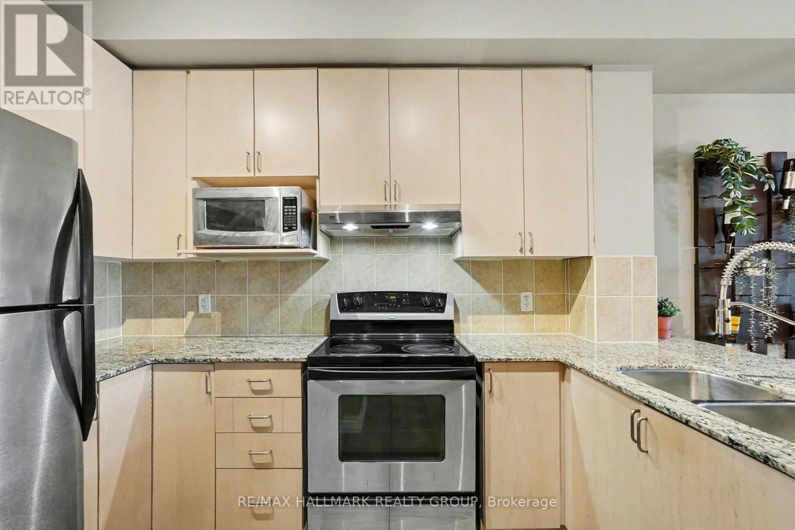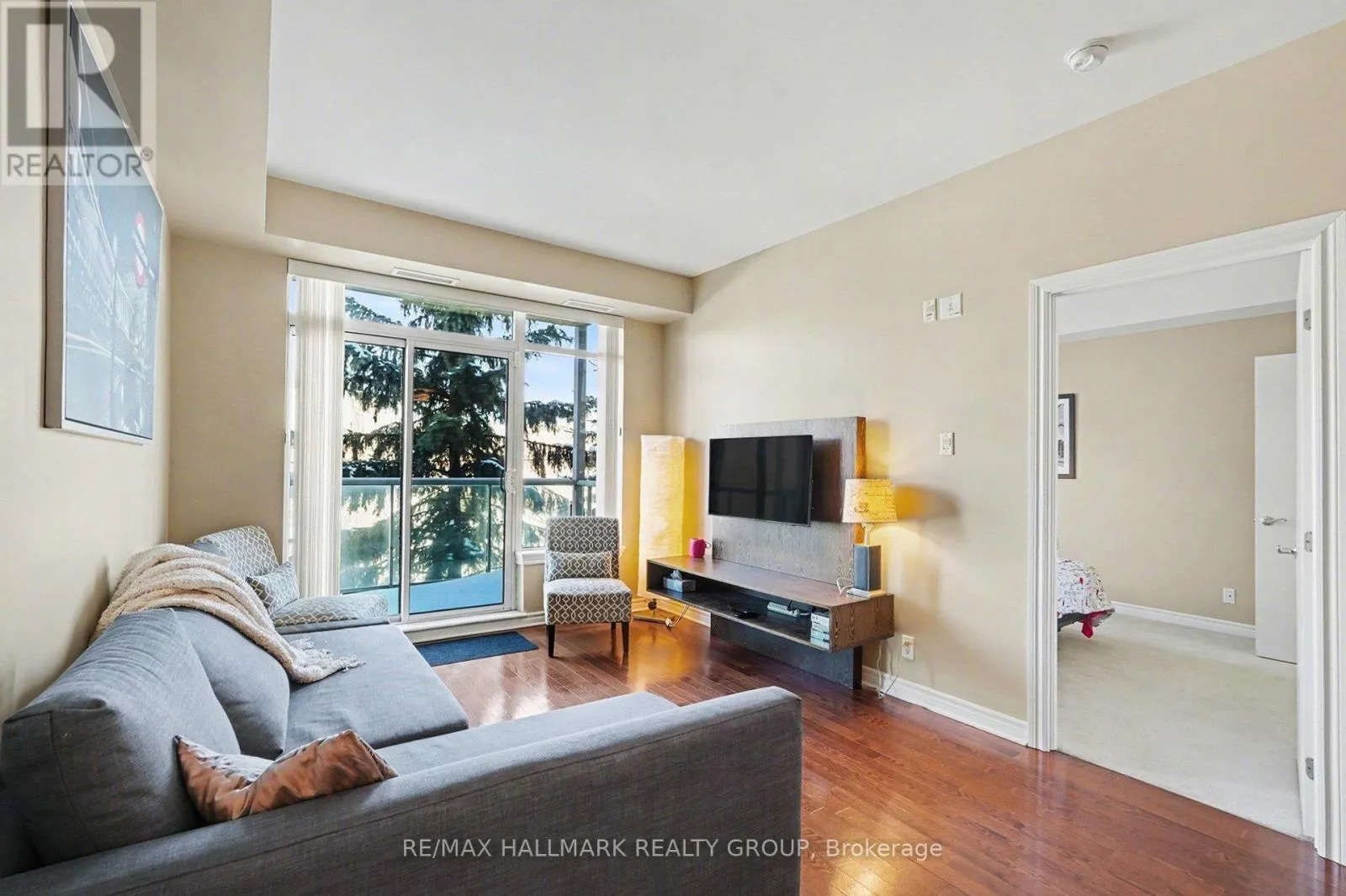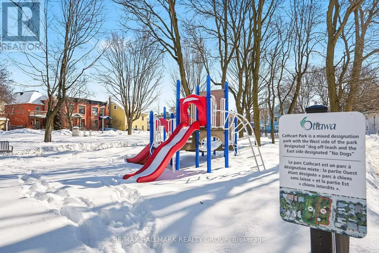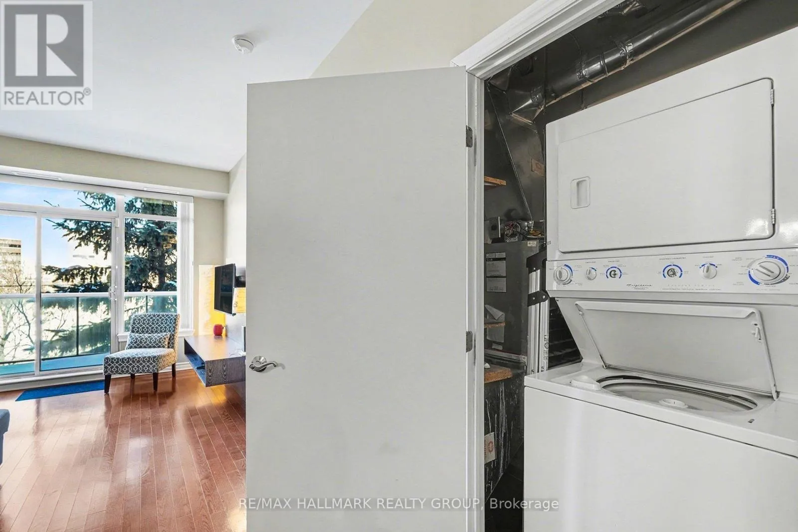 Cross Streets: Dalhousie and Bolton. ** Directions: Rideau St. to north on Dalhousie almost to the end then east on Bolton. 1-bedroom + den, 1 bathroom condo in a prime Lowertown location! This bright and well-maintained unit features 9ft ceilings in an open concept floorplan featuring hardwood floors in the main living area and ceramic tile in the kitchen, entry, and bathroom. The functional U-shaped kitchen offers granite countertops with lunch counter overhang, double sinks, stainless steel appliances, and ample cabinetry. A spacious den provides excellent flexibility for a home office, guest space, or additional living area. Enjoy in-unit laundry and a private balcony for outdoor relaxation. Includes an oversized underground parking space. Ideally located with a park directly across the street and just steps to the ByWard Market, Parliament Hill, restaurants, shops, and major attractions. A fantastic opportunity for professionals, investors, or those seeking convenient urban living. Building amenities include a rooftop patio, party room with it's own kitchen, library, bike lockup and fitness center. (id:27476)