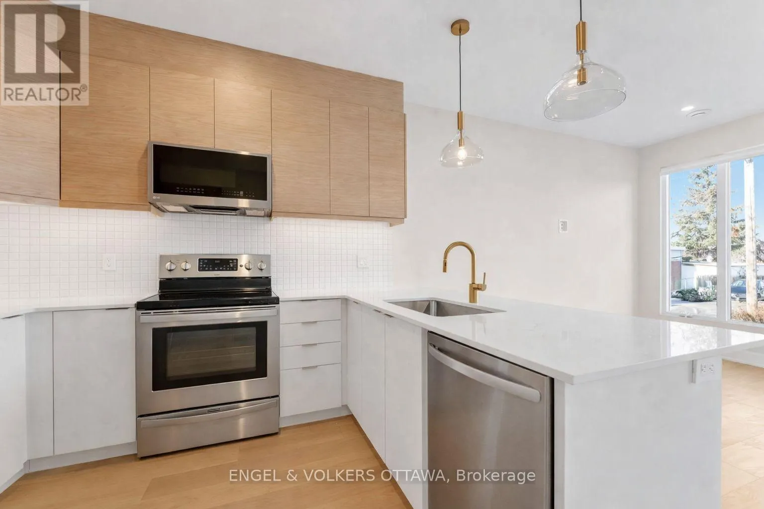 Cross Streets: Vanier Parkway to Deschamps Ave, turn left on Durochers St, turn left on Carillon St. ** Directions: Montreak. **Street Parking - Balcony** Welcome to A-130 Carillon, where luxury meets convenience in the heart of Ottawa! This brand-new, three-floor property offers modern living and comfort. As you step into the unit, you'll be greeted by an abundance of natural daylight. The high-end finishes elevate the aesthetic, creating a "wow" factor. The property is designed to enhance your lifestyle with premium finishes, a spacious living area, and outdoor space. The kitchen is a culinary dream, featuring an enormous kitchen island, 5 SS appliances, and plenty of cabinet space. Storage is never an issue, thanks to the linen closet, and additional storage. Head on to the 2nd floor where you will find 2 large bedrooms and a full bathroom. The primary bedroom is located on the 3rd floor for extra privacy. It features a large walking closet, a breathtaking ensuite bathroom, and a large balcony creating the perfect view for your morning coffee. Street parking, utilities extra. Some pictures have been digitally altered (id:27476)