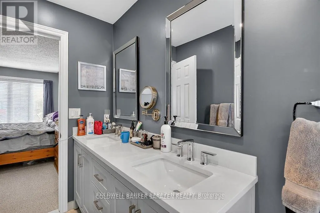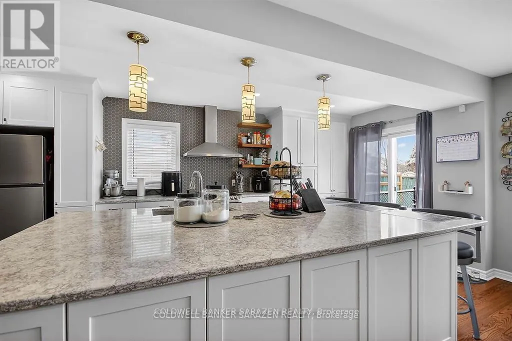 WOODROFFE SOUTH PAST FALLOWFIELD, RIGHT ON EARL MULLIGAN, RIGHT ON MOUNTSHANNON, LEFT ON 2ND DAVENTRY. GORGEOUS END UNIT in a Fantastic Location! Welcome to 43 Daventry - a beautifully updated 3+ bedroom, 3.5 bathroom home offering space, style, and a private rear yard. The exterior is just as impressive as the interior, featuring a 4-car driveway, interlock in the backyard, river rock landscaping in the front, a metal-roof gazebo, and a fully fenced private yard-ideal for relaxing or entertaining. Inside, the completely renovated kitchen is absolutely stunning, showcasing an extra-large quartz island with cabinetry on all sides, an incredible amount of cupboards, pull-outs, and smart storage. This kitchen is both beautiful and highly functional. The main floor offers all new wood flooring and tile, along with a bright living room enhanced by a cozy fireplace. A mid-level family room with a second fireplace provides additional flexible living space-perfect for families or entertaining. Upstairs, you'll find a very large primary bedroom plus two other generous-sized bedrooms. The finished basement adds even more living space, complete with newer Berber carpet and a bathroom featuring heated flooring for extra comfort. Extensive renovations and inclusions are listed in the attachments. All of this-and so much more-makes this home a must-see. Have a look. You'll be glad you did! (id:27476)