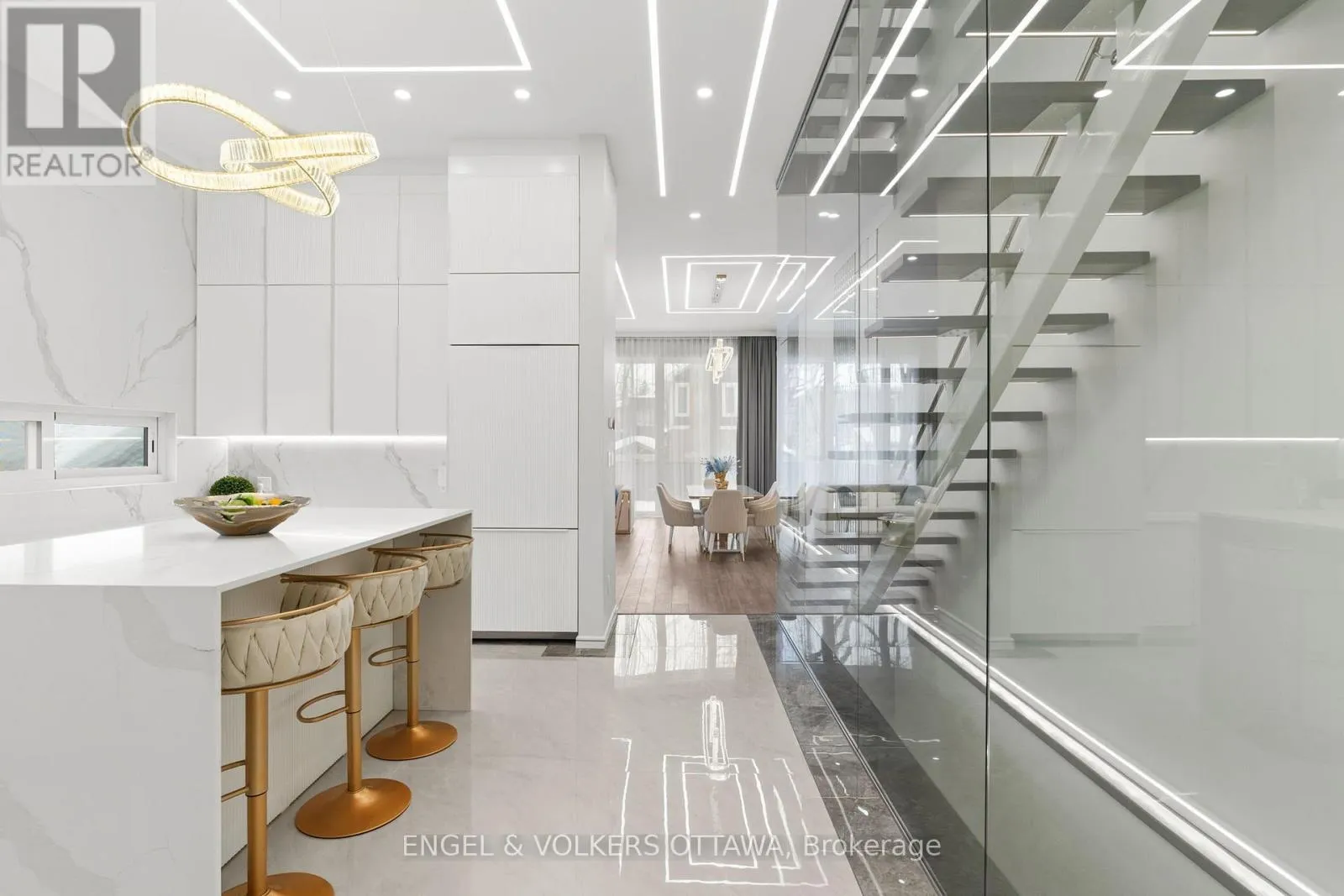 Cross Streets: Scott Street to Northwestern. ** Directions: From Island Park Dr turn right onto Scott St, then left onto Northwestern Ave. An exceptional offering, this 3,600 sq ft semi-detached SMART home showcases over $500,000 in premium upgrades and is built to R-2000 energy-efficient standards for superior performance and comfort. Designed with versatility in mind, the multifunctional layout features three distinct zones: a main-level business space with private foyer, office, and powder room; an expansive family living area; and a separately accessed, legal 2-bedroom lower apartment.Soaring 12-14 ft ceilings and triple-glazed panoramic windows flood the home with natural light, while a dramatic full-height, full-width bi-fold door seamlessly connects indoor and outdoor living. The chef-inspired kitchen is a true showpiece, appointed with Calacatta Ice countertops and matching backsplash, complemented by a generous eat-in area ideal for everyday living and entertaining. The main residence is further elevated by two luxurious primary suites with private balconies and the warmth and ambiance of two fireplaces.The lower-level apartment offers 9-10 ft ceilings, oversized windows, and heated floors throughout, creating a bright and comfortable space perfect for rental income, multigenerational living, or extended family. Fully equipped with all appliances, including washer and dryer, it is entirely turnkey. Outdoor living is equally impressive, featuring a 600 sq ft rooftop terrace, multi-level deck, and a private composite-fenced yard. Distinctive curb appeal comes from the striking blue granite façade, enhanced by exceptional comfort upgrades including a heated driveway, stairs, landing, and heated garage floors. A 16" fully insulated concrete block party wall ensures superior privacy, while integrated Google Smart Home technology brings convenience and control to every aspect of daily living. A rare opportunity to own a high-end, energy-efficient, and remarkably versatile property-perfectly suited for modern family living, home-based business, and income potential. (id:27476)