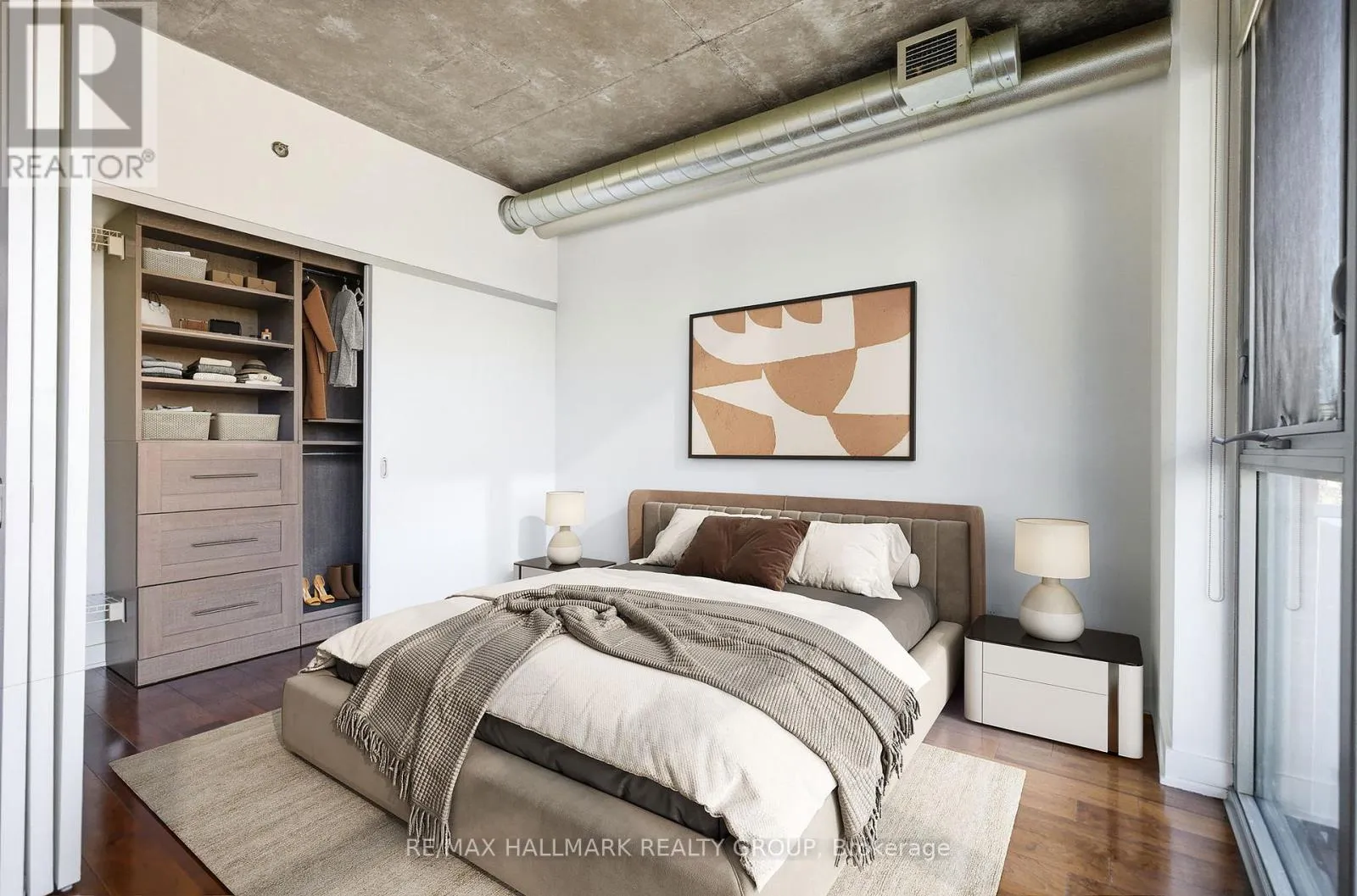 Bank Street & McLeod Street Urban living at its finest! Welcome to The Hideaway at 340 McLeod Street in the heart of vibrant Centretown. This 1-bedroom + den, 1-bathroom condo offers 694 sq. ft. of thoughtfully designed living space complete with a spacious balcony, underground parking spot, and a storage locker. Step inside and feel instantly at home in this modern space with an industrial edge, featuring 9-foot ceilings, exposed concrete and pipes, floor-to-ceiling windows with full roller shades, hardwood floors and fresh paint throughout. The kitchen is both stylish and functional, with quartz countertops, stainless steel appliances, and a large centre island that provides extra prep space and storage. The primary bedroom serves as a flexible retreat with movable privacy doors and a custom-built closet organizer. The generously sized den is perfect for a home office, guest space, or even a second bedroom. A full bathroom and convenient in-unit full-size laundry complete the interior. Off the living area, step out onto your east-facing balcony, the perfect spot to enjoy your morning coffee or unwind in the evening while taking in city views, including the historic Canadian Museum of Nature. Residents enjoy an impressive lineup of amenities, including an outdoor heated saltwater pool with a lounging area, a ground-floor terrace with a fireplace, a fully equipped fitness centre, a theatre room, a party room with a bar and pool table, and secure bike storage. Located steps from shops, restaurants, parks, and cafés, with easy access to Highway 417, Elgin Street, Lansdowne, and a quick bike or transit ride to Parliament and downtown. Enjoy resort-style living in the city! 24-hour irrevocable on all offers (as per Form 244). Schedule B to accompany all offers (deposit handling). Floor plan attached. (id:27476)