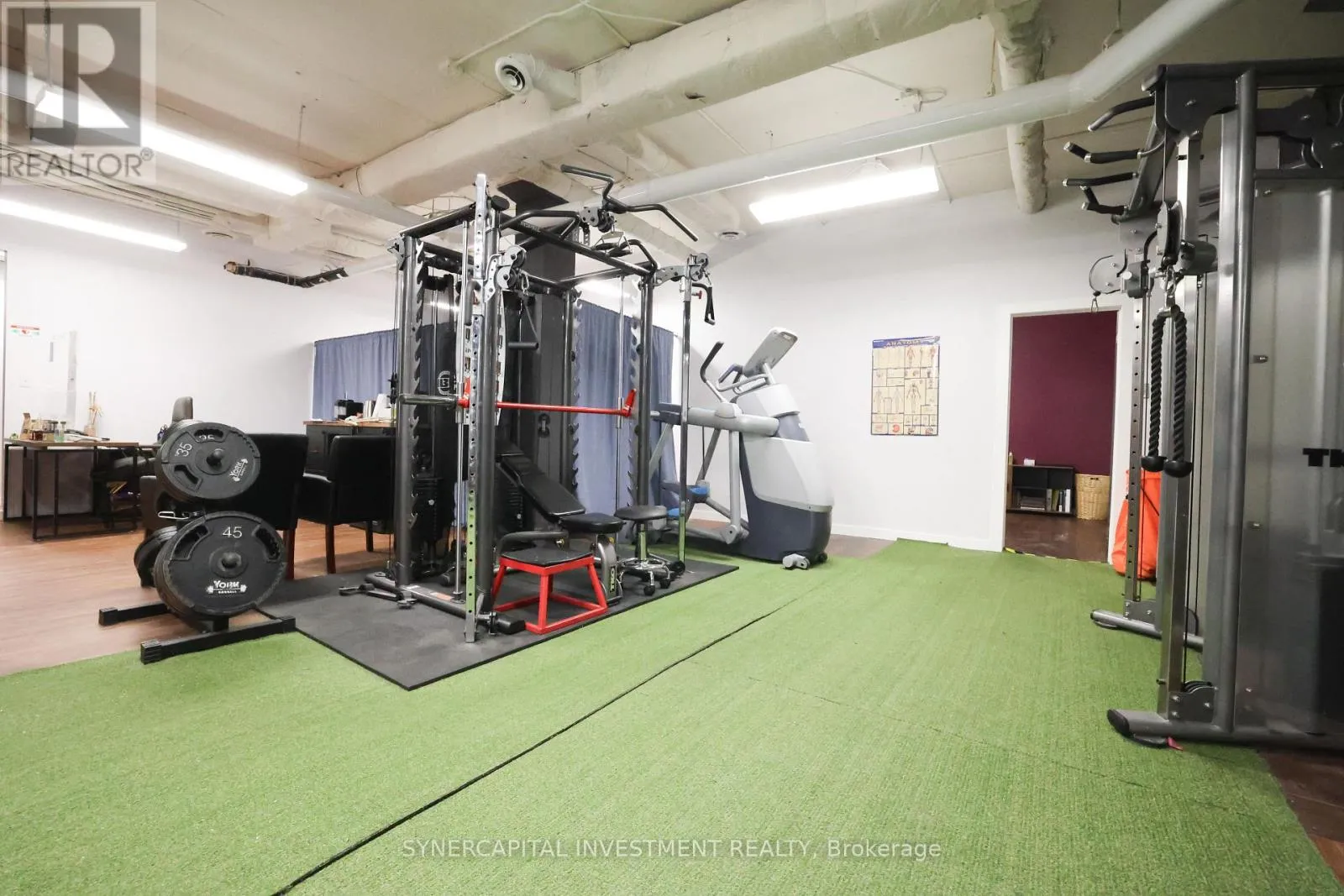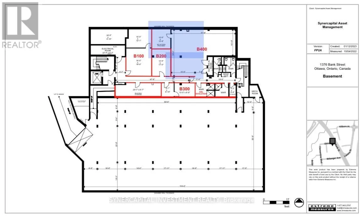 Cross Streets: Bank & Ohio. ** Directions: South on Bank from Billings Bridge to Ohio, right on Ohio. Approx 625 rentable square feet of turn-key office space in basement of well-managed office building! Currently divided into 2 large rooms forming an "L" shape, and can be divided further. Landlord can provide/organize desired fit-up at cost, pro-rated over the lease term! Space is currently used as physiotherapy/osteopathy/RMT wellness practitioners but has wide variety of applications.See marked-up floorplans in tandem with the following description: the proposed new space crops some of the (current) B400 open floor plan and closes it off for owner personal use; walls erected to divide the new space and doors opened between spaces as tenant requires. There is some flexibility re: placement of walls; possible inclusion of all or some gym equipment in the rental. Equipment is not for sale unless tenant is leasing space. All utilities and operating expenses included in the rent - fully Gross Lease! Escalations of $50/mo/year.Excellent location close to 417, Riverside Drive,Bank Street, and Billings Bridge shopping plaza. Building is home to professional tenants such as law offices, mental wellness practitioners, not-for-profit, technology, etc. Video walk through is available upon request. (id:27476)