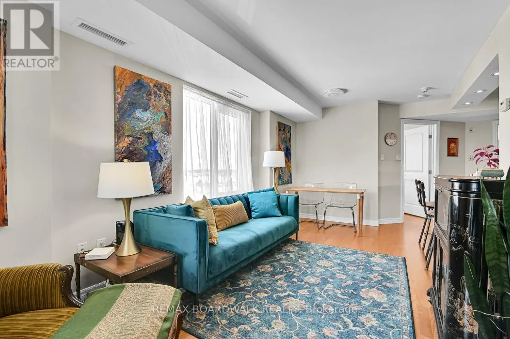 South on Merivale Rd, right onto Central Park Dr. This bright and welcoming condo offers beautiful sunrise views, the Central Experimental Farm and the surrounding city skyline. A corner private balcony surrounded by trees is a true highlight, providing a rare vantage point to enjoy open skies and unobstructed fireworks-perfect for relaxing or entertaining. Step outside to immediate access to the Central Experimental Farm's scenic walking and cycling paths. Nearby Celebration Park features a lush pond, a splash pad, soccer pitch, tennis courts, skating rink, and playgrounds, all supporting an active outdoor lifestyle. Daily and walking conveniences are close at hand with Loblaws, Walmart, Food Basics, Starbucks, Tim Hortons, and a variety of restaurants nearby. Two OC Transpo routes are located right outside the building, with Merivale Road just minutes away. Inside, the oversized windows flood the space with natural light throughout the day. The open-concept living area is finished with hardwood floors, creating a warm and inviting atmosphere. The kitchen features granite countertops, a breakfast bar, and ample cabinetry-ideal for everyday living. The spacious primary bedroom includes a walk-in closet and large ensuite. A second generously sized bedroom comes with space for a study area and has the added convenience of a bathroom with shower. A versatile den provides flexible space for a formal dining area or a home office. In-suite laundry adds everyday convenience. Residents enjoy excellent building amenities, including a fitness room, large party room with full kitchen, free car wash bay, and EV charging station (small fee). Pet friendly building. Indoor parking, water, heating and cooling are all included in the condo fee of $573. A bike rack is included with this unit under OCSCC 662 for $2.90 per month.24 hour irrevocable on offers please. (id:27476)