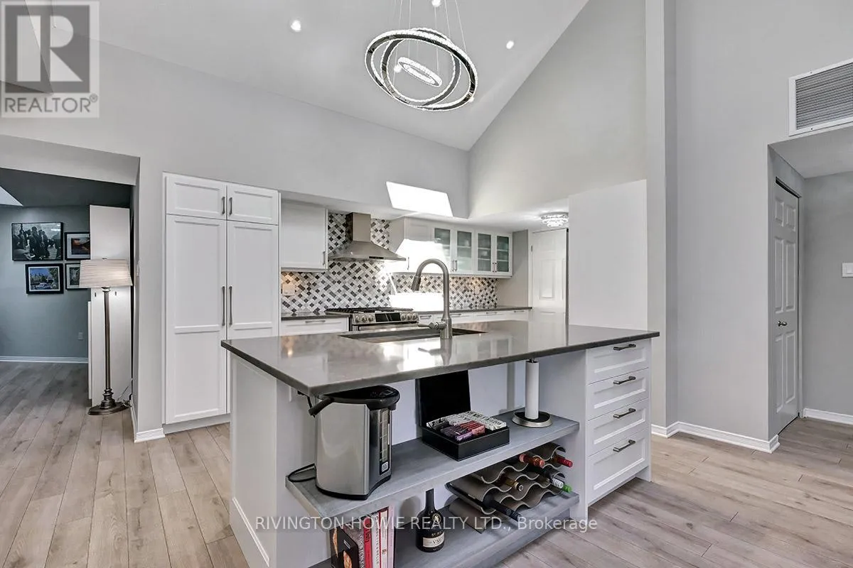 Cross Streets: Campeau. ** Directions: Campeau to Robson Court. Welcome to 36 Robson Court located in the heart of Kanata Lakes. This 2 bed, 2 bath condo has been extensively renovated with quality and elegance. Grand foyer greets you with a dazzling crystal chandelier, walk-in closet space and access to indoor parking. Custom chefs kitchen is well designed with chic white cabinetry, luxurious quartz counters, trendy backsplash, stainless steel appliances and large island. Relax in the cozy Livingroom with stone facade gas fireplace and soaring cathedral ceilings. Generous primary bedroom offers dual closets with California style closets and lavish 4-piece ensuite bathroom with glass shower and oversized soaker tub. Additionally you will find a well-sized 2nd bedroom, large dining room/den/office, 4-piece main bath and in-suite laundry. Spacious and private south facing deck with impressive views offering a secluded slice of outdoor serenity. This condo is smart home-ready offering modern sophistication. A perfect place to call HOME! (id:27476)