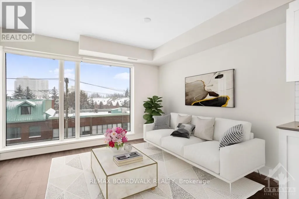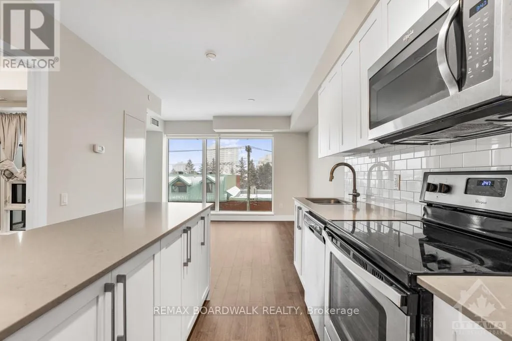 Cross Streets: Beechwood and Mackay St. ** Directions: Beechwood to Mackay. Location, Location! Unbeatable value in the heart of New Edinburgh. This bright, move-in ready 2-bedroom, 2-bath Condo offers an exceptional lifestyle just steps to neighbourhood pubs, cafés, boutique shopping, the scenic Ottawa River pathways, and an easy commute to downtown. Inside, you'll find a modern kitchen featuring a large island with seating, quartz countertops, stainless steel appliances, subway tile backsplash, and generous cabinetry. The open-concept layout flows seamlessly into the sun-filled living area, perfect for entertaining or relaxing at home. Convenient in-unit laundry makes everyday living effortless.The spacious primary bedroom includes a large closet and a stylish 3-piece ensuite with a large shower. The second bedroom offers excellent versatility, ideal as a home office or guest room, and is located near the full main bathroom. Enjoy your morning coffee or unwind in the evening on your private balcony. Residents have access to fantastic building amenities including a fitness centre, party room, games room, rentable guest suite, and a rooftop terrace perfect for summer gatherings. Parking is available to rent and ample visitor parking is available. Don't miss this opportunity to own in one of Ottawa's most sought-after communities. (id:27476)