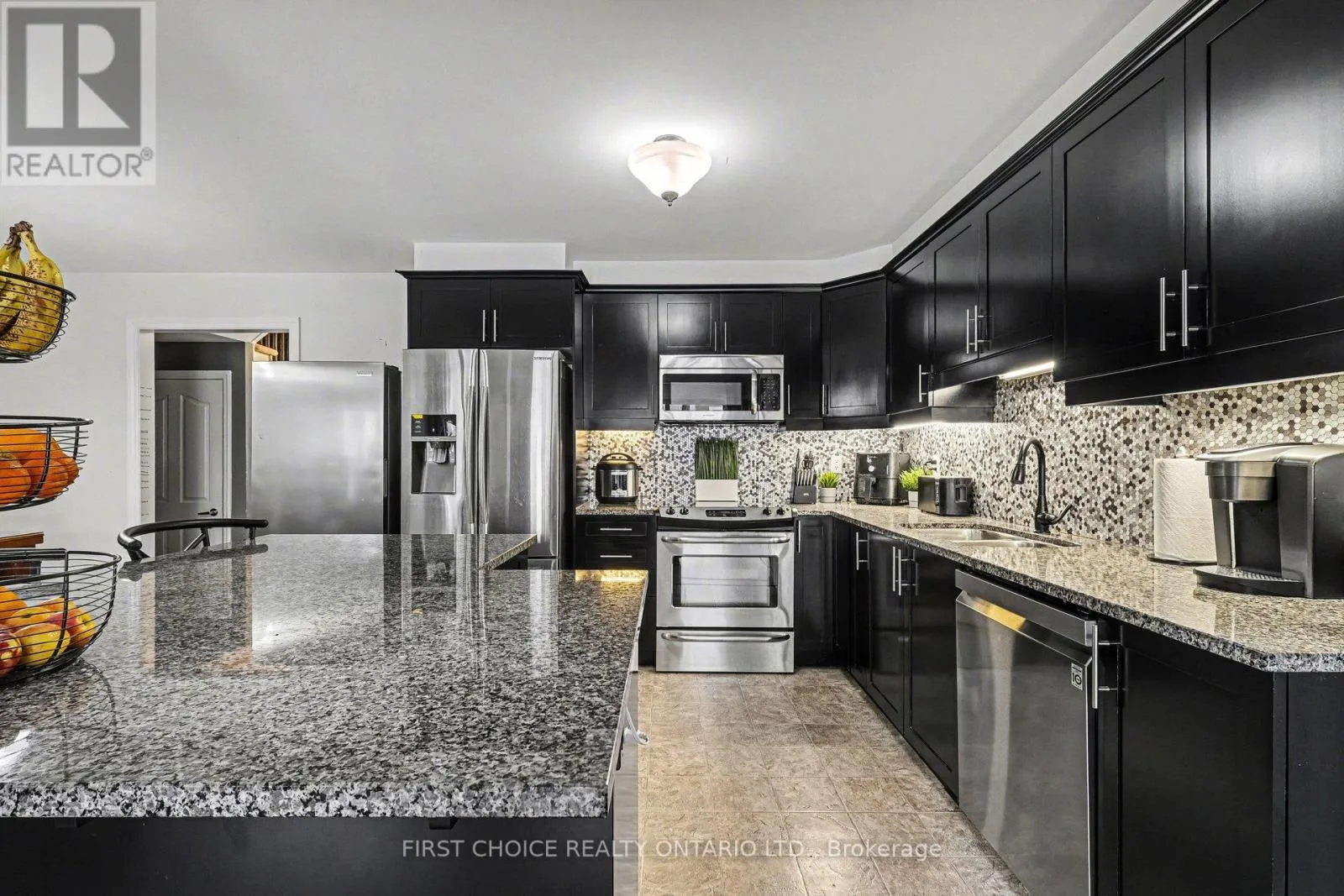 Cross Streets: Grand Canal. ** Directions: Grand Canal to Bluegill. Beautiful Mattamy Homes townhome in the highly sought-after Half Moon Bay community! The open-concept main floor showcases granite countertops, stainless steel appliances, and a spacious kitchen featuring a large chef's island with breakfast bar-perfect for everyday living and entertaining. Upstairs offers three generously sized bedrooms, a full main bathroom, and a luxurious primary ensuite. The partially finished basement provides excellent additional living space and endless potential for your personal touch. Enjoy a fully landscaped, fenced backyard complete with an interlock patio and natural gas BBQ hookup-ideal for hosting family and friends. Major upgrades include a new heat pump system and tankless hot water heater (2023)$15K. Conveniently located close to schools, parks, transit, and amenities. (id:27476)