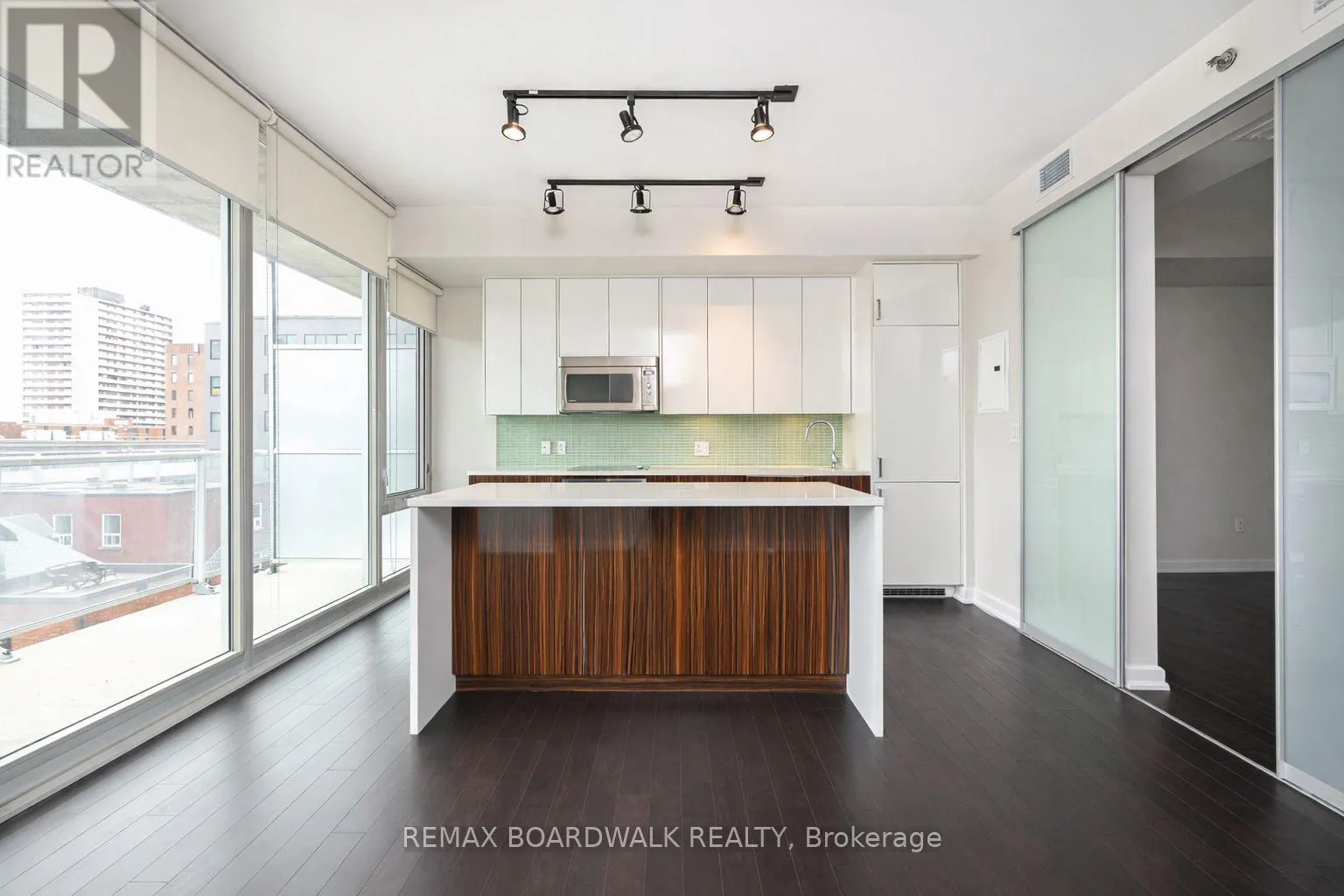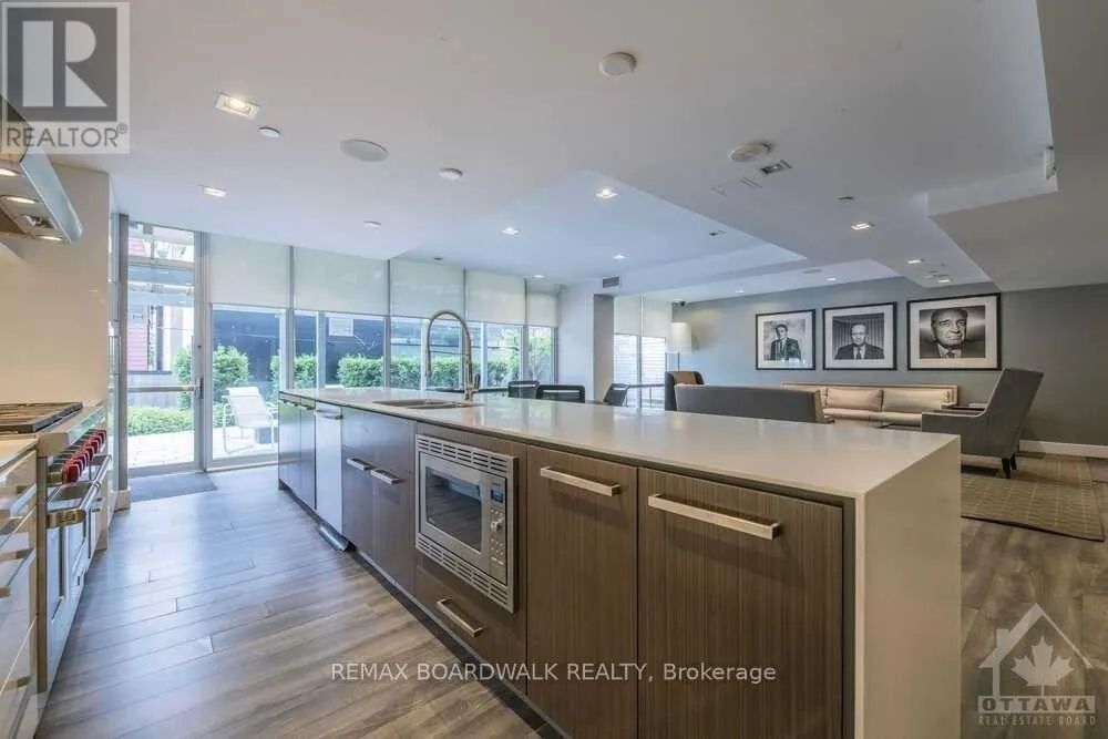 Cross Streets: Ottawa Center. ** Directions: Bank to Lisger. South-facing modern residence in the iconic SOHO Lisgar, offering refined downtown living with floor-to-ceiling windows and a 16-foot private balcony drenched in natural light.This thoughtfully designed one-bedroom suite features 9-foot ceilings, rich hardwood flooring, and an open-concept layout that maximizes space and function. The sleek kitchen showcases quartz countertops, a centre island, glass tile backsplash, under-cabinet lighting, and integrated appliances for a seamless, contemporary aesthetic.The primary bedroom includes custom blinds and convenient cheater access to a beautifully appointed four-piece bathroom. In-unit laundry adds everyday practicality.Condo fees include heat and water - delivering exceptional value and simplified living.Residents of SOHO Lisgar enjoy resort-style amenities including full security, fitness centre, sauna, private theatre, elegant lounge with gourmet kitchen, outdoor terrace with BBQs, pool, and hot tub.Unbeatable location steps to Bank Street, Elgin Street, grocery, restaurants, Parliament, the Rideau Canal, Lansdowne, university campuses, transit, and the LRT (approximately 10-minute walk). An exceptional opportunity for sophisticated urban living in the heart of Ottawa. (Photos taken before tenant moved in). (id:27476)