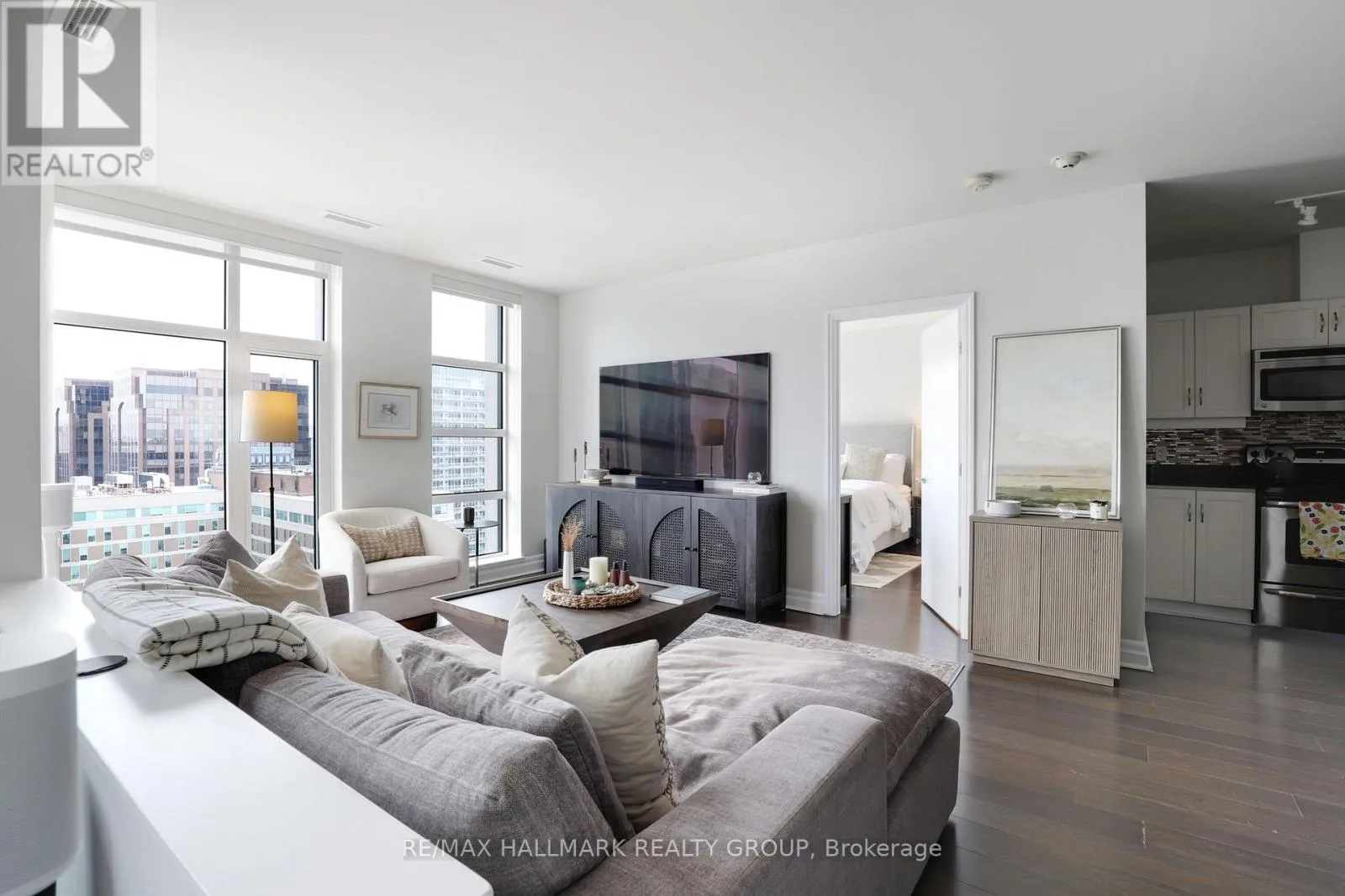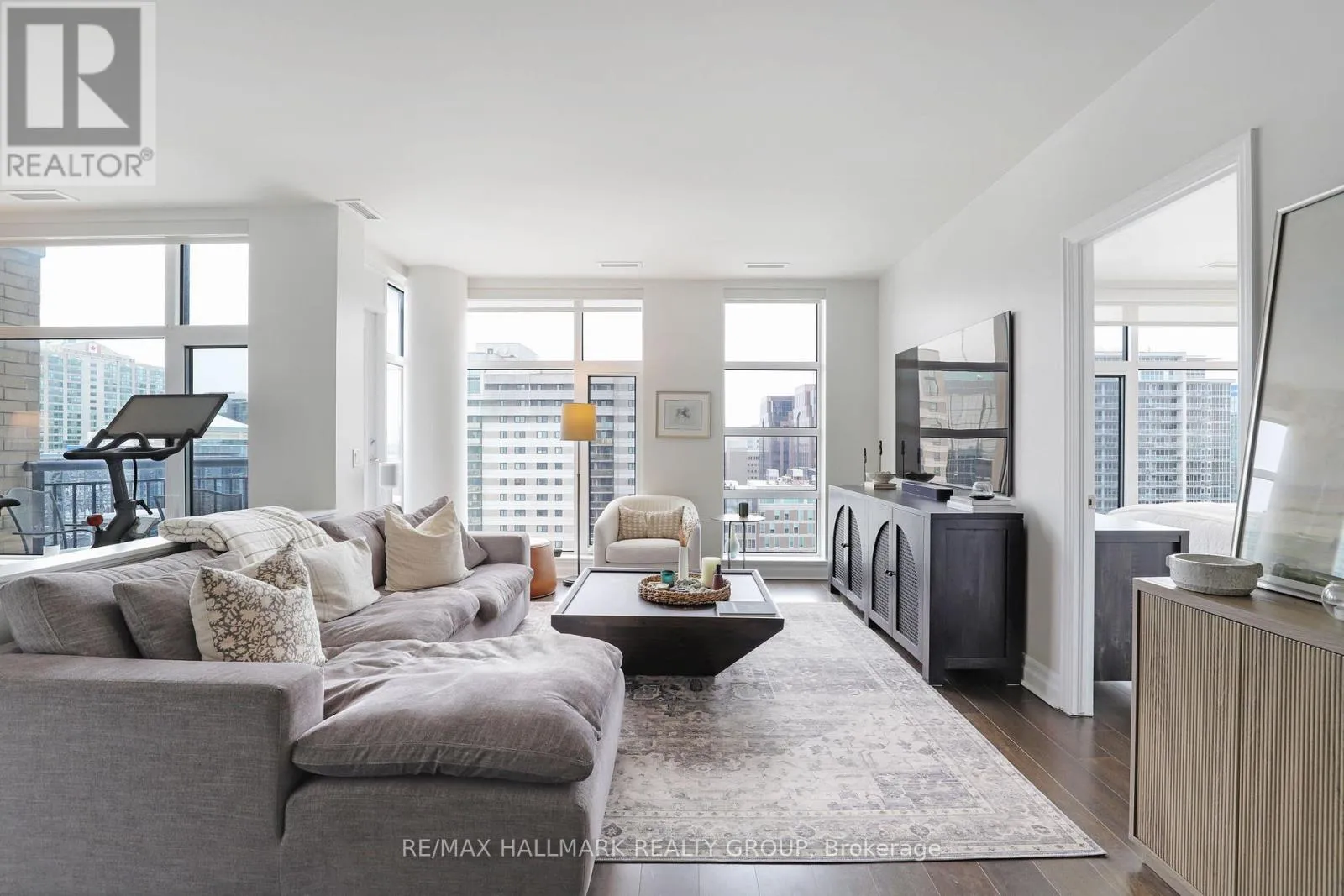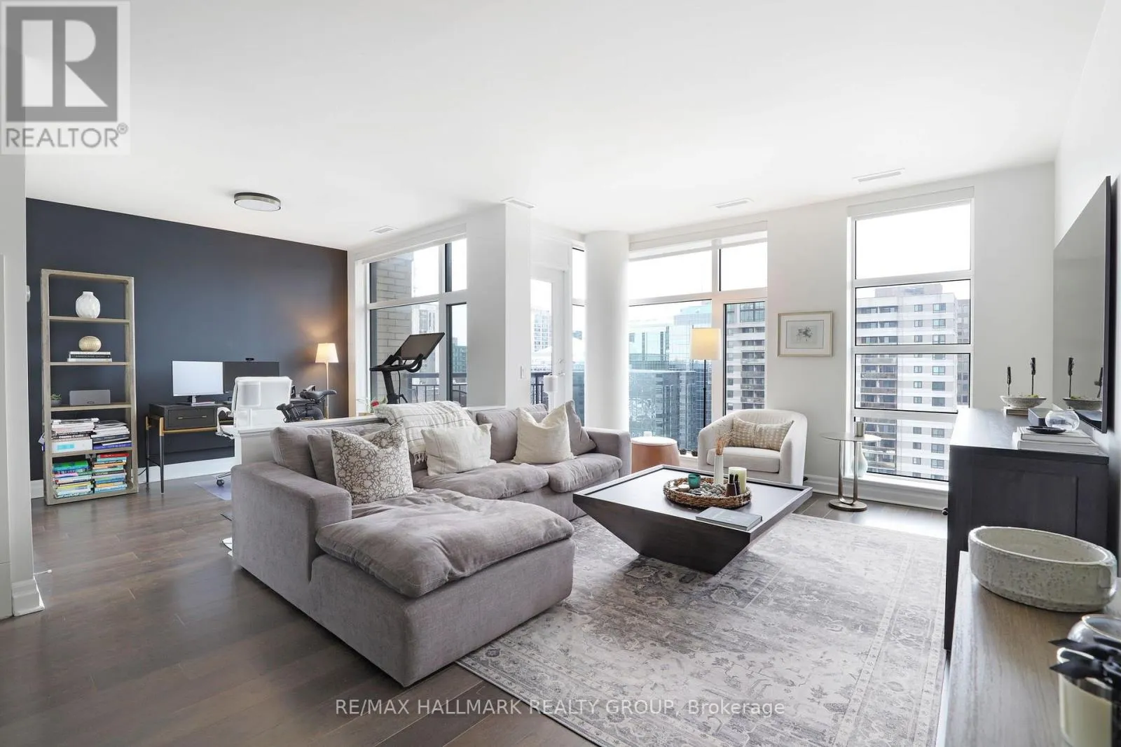 Cross Streets: Nepean. ** Directions: Kent between Nepean and Lisgar. Absolutely stunning Penthouse at the Charlesfort built Hudson Park. This 2 bedroom plus den model has had the 2nd bedroom wall removed, leaving a breathtaking wall of windows. Enjoy the views of Downtown Ottawa and magical sunsets. Huge primary bedroom with full ensuite. Large second bedroom, currently used as a home office. Open concept kitchen with SS appliances and granite countertops. Underground Parking included. Storage Locker Included. Laundry in unit. Rooftop BBQs. Flexible availability. 1yr+ lease. (id:27476)