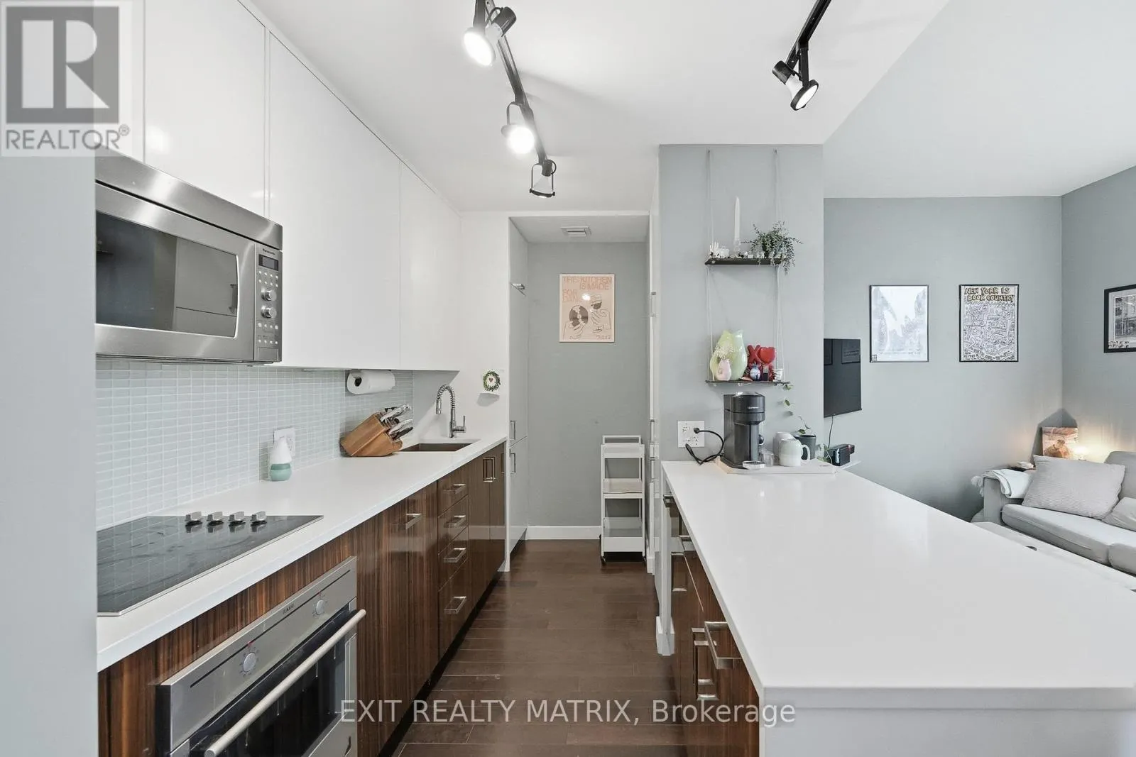 Cross Streets: Parkdale & Lyndale. ** Directions: Hwy 417 to Parkdale, travel north on Parkdale, past Scott Street. Property is on the right. Steps from the Ottawa River, this modern 1-bedroom, 1-bathroom condo offers a perfect balance of the city's convenience and natural beauty! Enjoy access to scenic biking and walking paths, public transit, and a variety of local shops, cafes, and restaurants. Parks, farmers' markets, and art galleries are all within walking distance. Located in the vibrant community of Mechanicsville and Hintonburg, this area is known for its mix of young professionals and families who value an active lifestyle and a strong sense of community. The unit features quartz countertops in the kitchen and bathroom, hardwood floors, floor-to-ceiling windows with 9th-floor views, in-unit laundry, modern appliances, one underground parking space, and a storage locker. Residents enjoy premium building amenities including a fully equipped gym, boardroom, theatre, and an impressive rooftop terrace with BBQs, a hot tub, and a sundeck with views of the River. Enjoy the convenience of condo fees that cover heat, water, and air conditioning. Book your showing today! (id:27476)